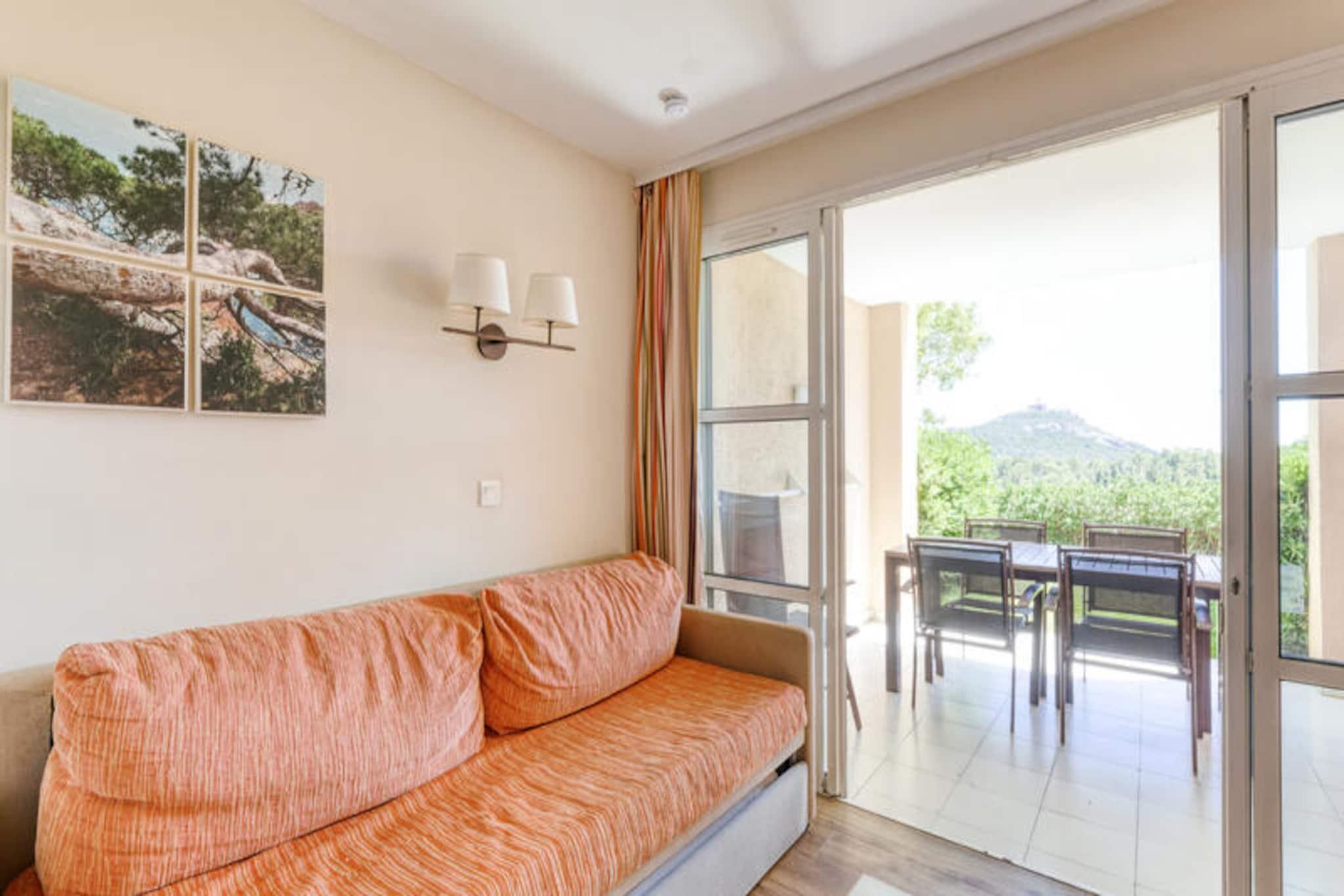 Denne 28m² store ferielejlighed, beliggende i stueetagen, tilbyder et hyggeligt tilflugtssted med et komfortabelt opholdsområde. Den har en sovesofa, der kan sove op til tre gæster, en dobbeltseng i soveværelset og et privat vandkloset. Kæledyr er tilladt efter forudgående forespørgsel, hvilket gør det til et ideelt valg for kæledyrsejere. Lejligheden omfatter også et parkeringsområde og adgang til forskellige tjenester i landsbyen, herunder et spabad og ladestation til elbiler. Lejligheden er bekvemt placeret kun 100 til 500 meter fra lokale butikker, restauranter og caféer, så gæsterne nemt kan udforske områdets tilbud. Den nærmeste strand ligger over 500 meter væk, men Little Train-tjenesten giver hurtig adgang til Agay Bay og Dramont-stranden fra april til september. Friluftsentusiaster kan også nyde nærliggende aktiviteter inden for gåafstand, herunder vandreture, sport og fritidsområder. Indvendigt har lejligheden et fuldt udstyret køkken med amerikansk stil, perfekt til at tilberede måltider under dit ophold. Badeværelset er i god stand og har alle nødvendige faciliteter. Nyd udendørslivet fra din private, sydvendte overdækkede terrasse, som byder på en fredfyldt udsigt over den omkringliggende skov. Yderligere tjenester såsom skift af sengetøj og rengøring er tilgængelige for et mere behageligt ophold. Antal tegn: 1.342
