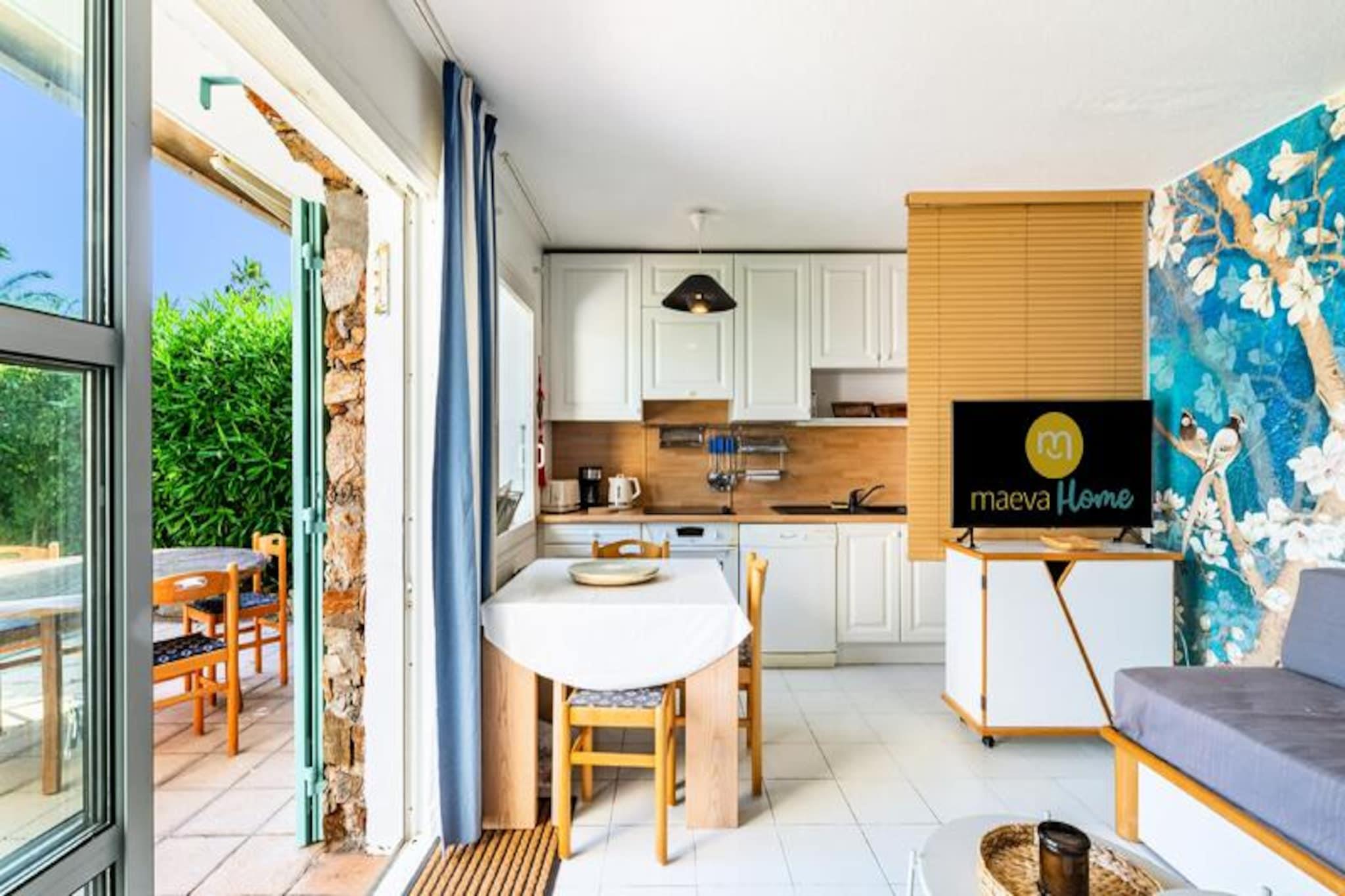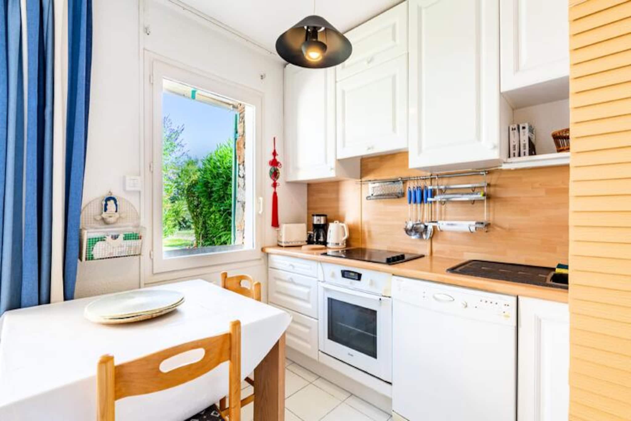Dette feriehus på 35 m² kan rumme op til 6 personer og tilbyder en stue med en sovesofa og et kabineområde med to køjesenge. Soveværelset har en dobbeltseng, hvilket giver et behageligt ophold for alle. Ejendommen er kæledyrsvenlig (med forbehold for forespørgsel), og der er en privat parkeringsplads til rådighed. Til lejligheden hører desuden en overdækket terrasse med sydvendt have og udsigt til den omkringliggende skov, hvilket sikrer en fredelig atmosfære. Feriehuset ligger i landsbyens centrum, kun 100-500 meter fra de nærmeste strande. Gæsterne kan udforske de nærliggende caféer, butikker og restauranter, alle inden for gåafstand. Ejendommen giver også nem adgang til forskellige aktiviteter, med en børneklub og temakurser for børn. En lille tog-service tager dig til Agay Bay og Dramont Beach, der ligger 1 km væk, og tilbyder en perfekt strandoplevelse. Indvendigt har lejligheden et køkken i amerikansk stil med spisebord og seks stole. Der er to badeværelser, det ene med badekar og det andet med bruser, begge udstyret med praktiske stikkontakter og opbevaringsplads. Gæsterne kan også nyde haven, som har udsigt over den rolige skov, som tilbyder et fredfyldt tilflugtssted efter en dag med udforskning.