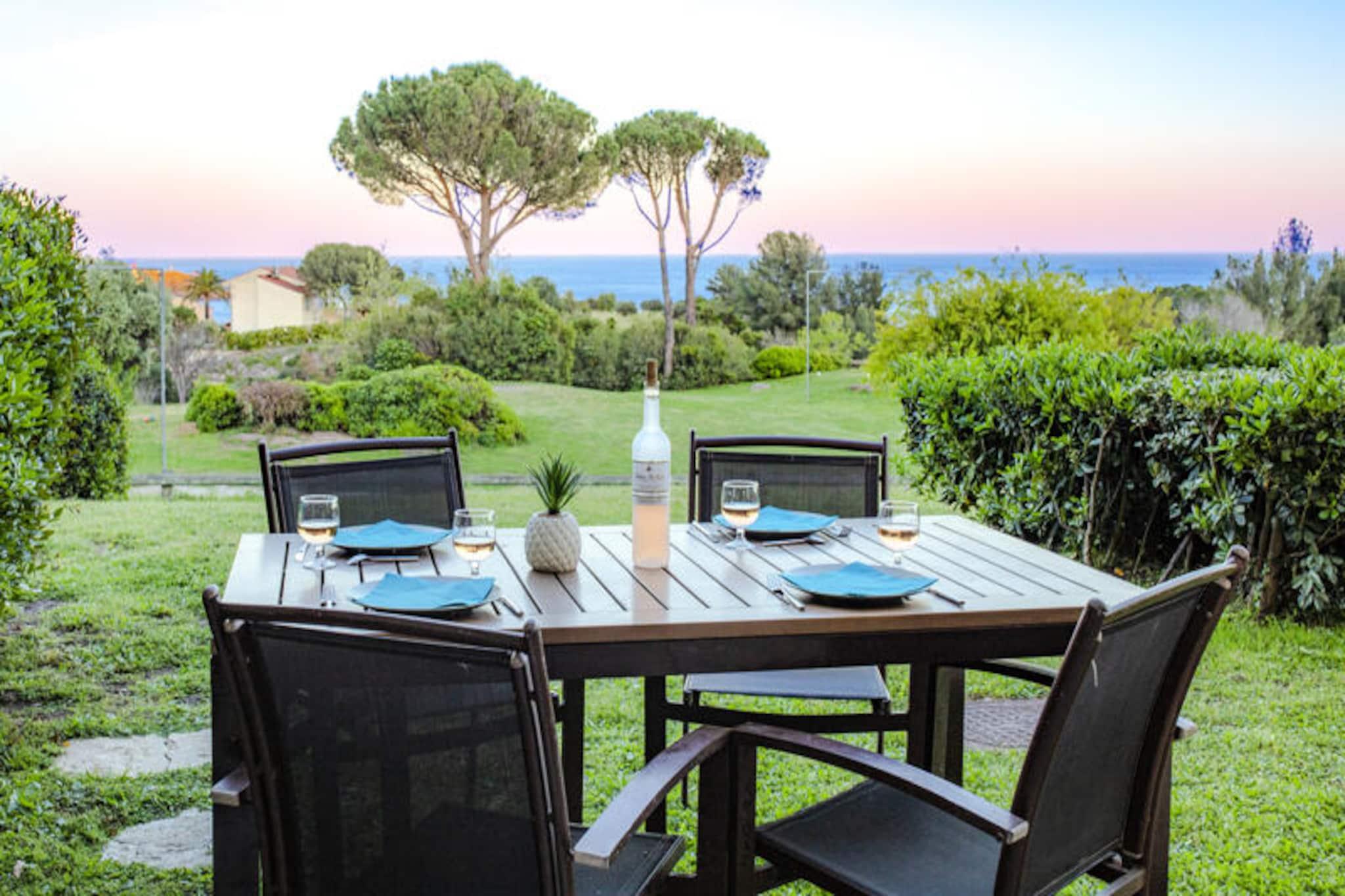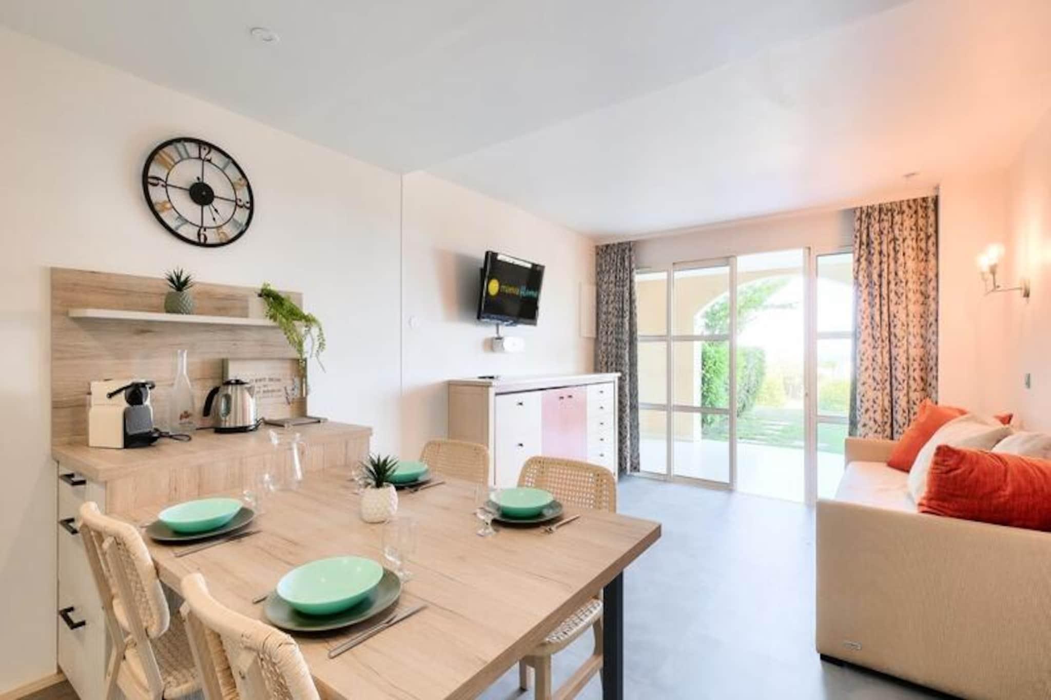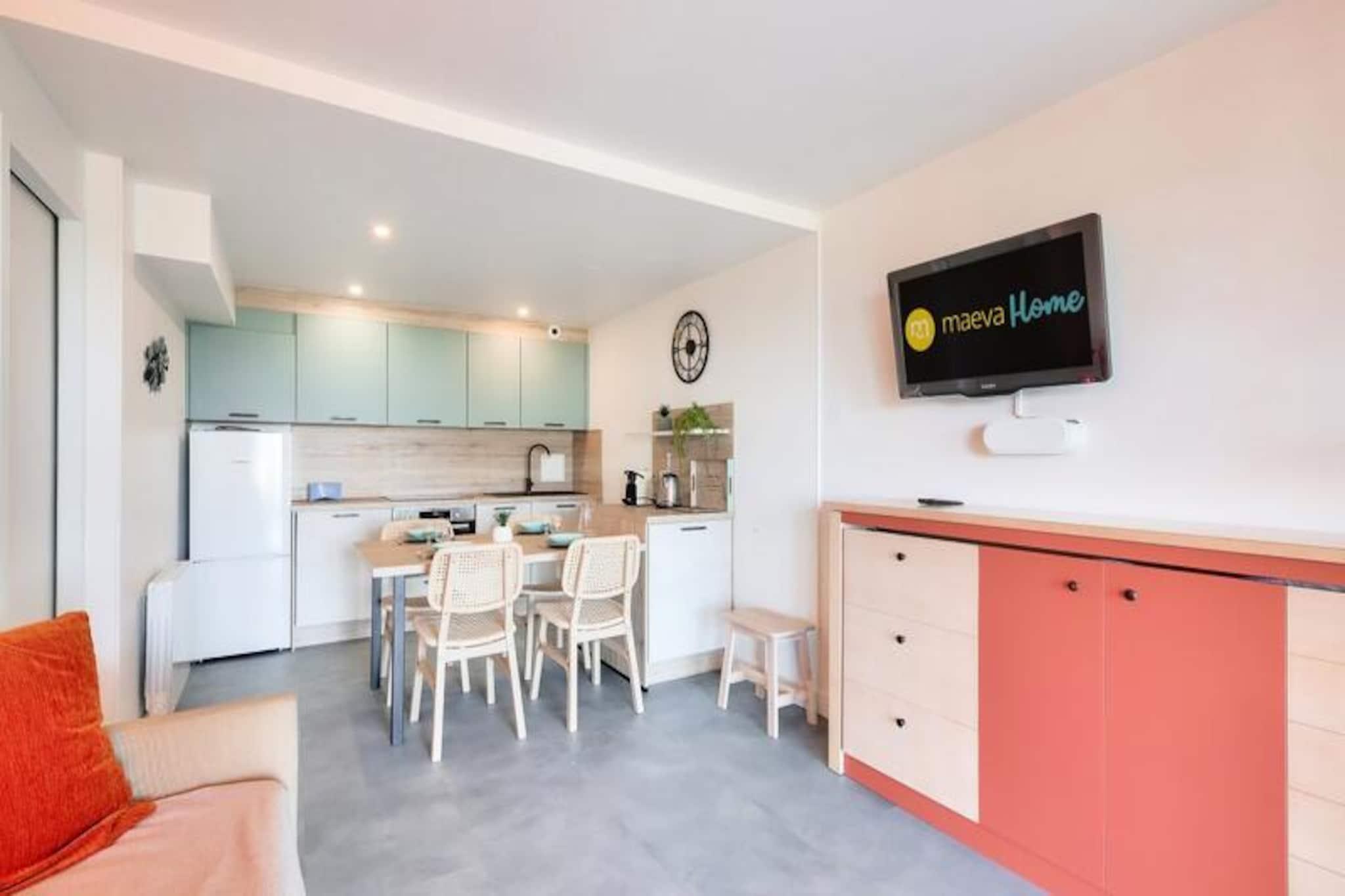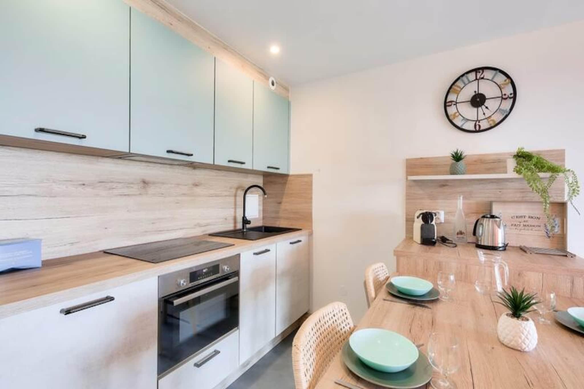 Denne lejlighed på 37 m² kan rumme op til 5 personer komfortabelt og byder på en stue med en sovesofa, et kabineområde med to køjesenge og et soveværelse med dobbeltseng. Ejendommen er kæledyrsvenlig (med forbehold for forespørgsel) og inkluderer en overdækket parkeringsplads. En privat terrasse byder på smuk havudsigt mod øst, og en have med havvendt orientering giver et afslappende udendørsrum. Lejlighedens lyse og moderne design sikrer et behageligt ophold for alle gæster. Beliggende i hjertet af landsbyens centrum, er denne lejlighed kun 100-500 meter fra de nærmeste strande og tilbyder nem adgang til Agay Bay og Dramont Beach. Gæsterne kan også udforske nærliggende caféer, butikker og restauranter. The Little Train-tjenesten forbinder landsbyen med stranden og er tilgængelig fra april til september, hvilket gør det til et bekvemt valg for dem, der ønsker at nyde de kystnære attraktioner. Indvendigt har lejligheden et køkken i amerikansk stil med et 8-personers spisebord, perfekt til familiemåltider. Badeværelset har et badekar med en søjle, en elektrisk håndklædetørrer og et separat toilet. En velholdt have med havudsigt og en overdækket terrasse forstærker helhedsoplevelsen, hvilket gør den ideel til et fredeligt tilflugtssted.