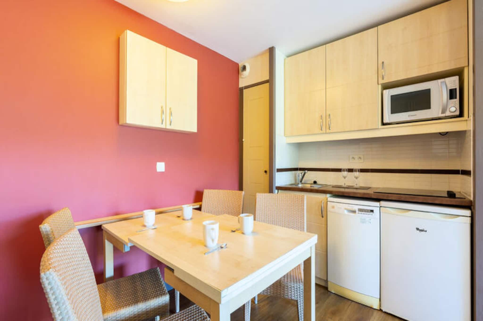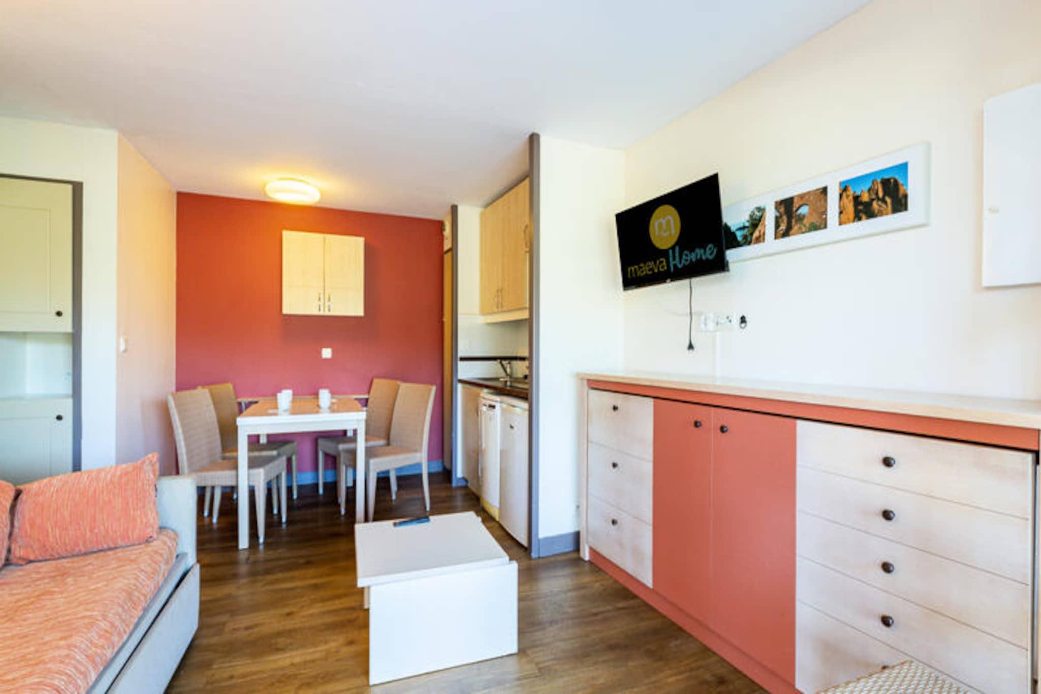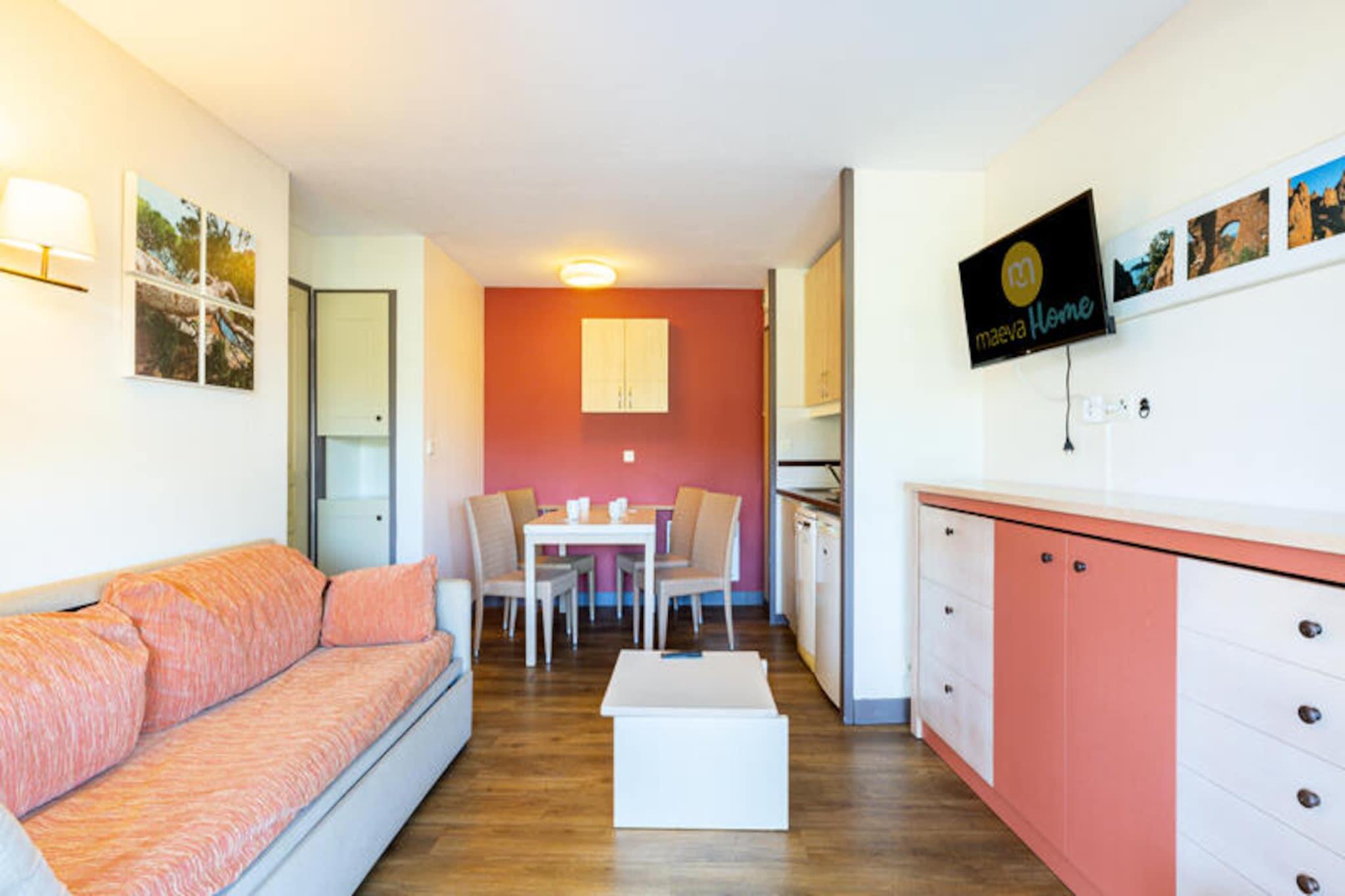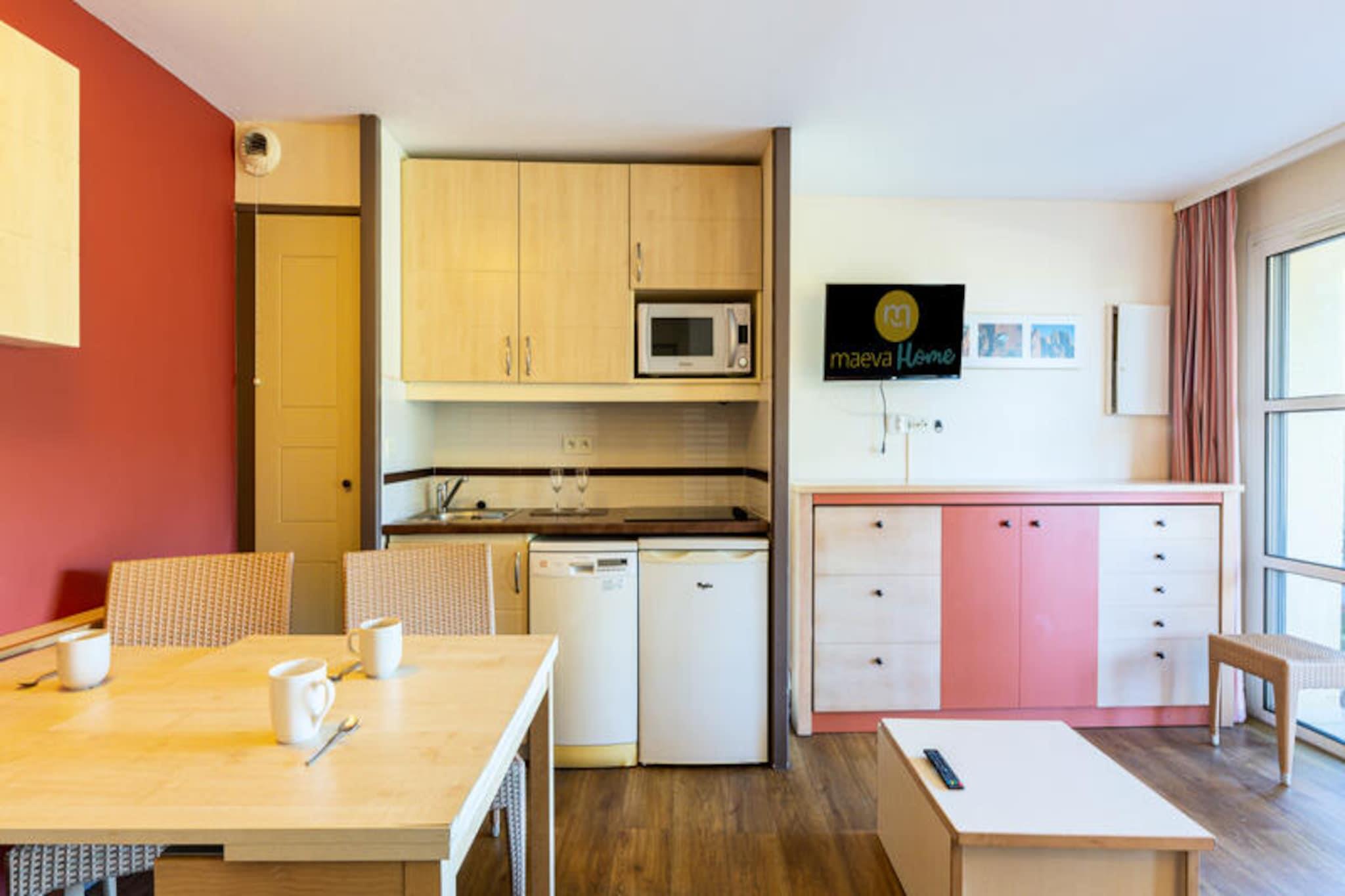 Denne charmerende lejlighed kan rumme op til fire gæster, med en dobbeltseng i soveværelset og en sovesofa med en trille i stuen. Lejligheden har en overdækket terrasse med østvendt udsigt over bjergene, hvilket giver et fredfyldt uderum. Gæster er velkomne til at medbringe kæledyr mod et gebyr, hvilket sikrer, at alle medlemmer af familien kan deltage i ferien. Dedikeret udendørs parkering og valgfri Wi-Fi-adgang bidrager til dit opholds bekvemmelighed. Ejendommen ligger i det pulserende landsbycentrum mindre end 100 meter fra butikker, caféer og spændende lokale aktiviteter. De smukke strande i Agay Bay og Dramont ligger kun 1 km væk, og de er let tilgængelige med Little Train-tjenesten, der er tilgængelig i højsæsonen. Udforsk Middelhavets kystlinje eller nyd de frodige grønne områder og rekreative faciliteter, der omgiver området. Indvendigt byder lejligheden på et veludstyret køkken i amerikansk stil med et spisebord og fire stole, ideelt til at tilberede og nyde måltider. Det moderne badeværelse omfatter et badekar med brusesøjle, en elektrisk håndklædetørrer og et separat toilet for ekstra privatliv. Med kvalitetsmøbler og gennemtænkte faciliteter er dette feriehus perfekt til en afslappende ferie.