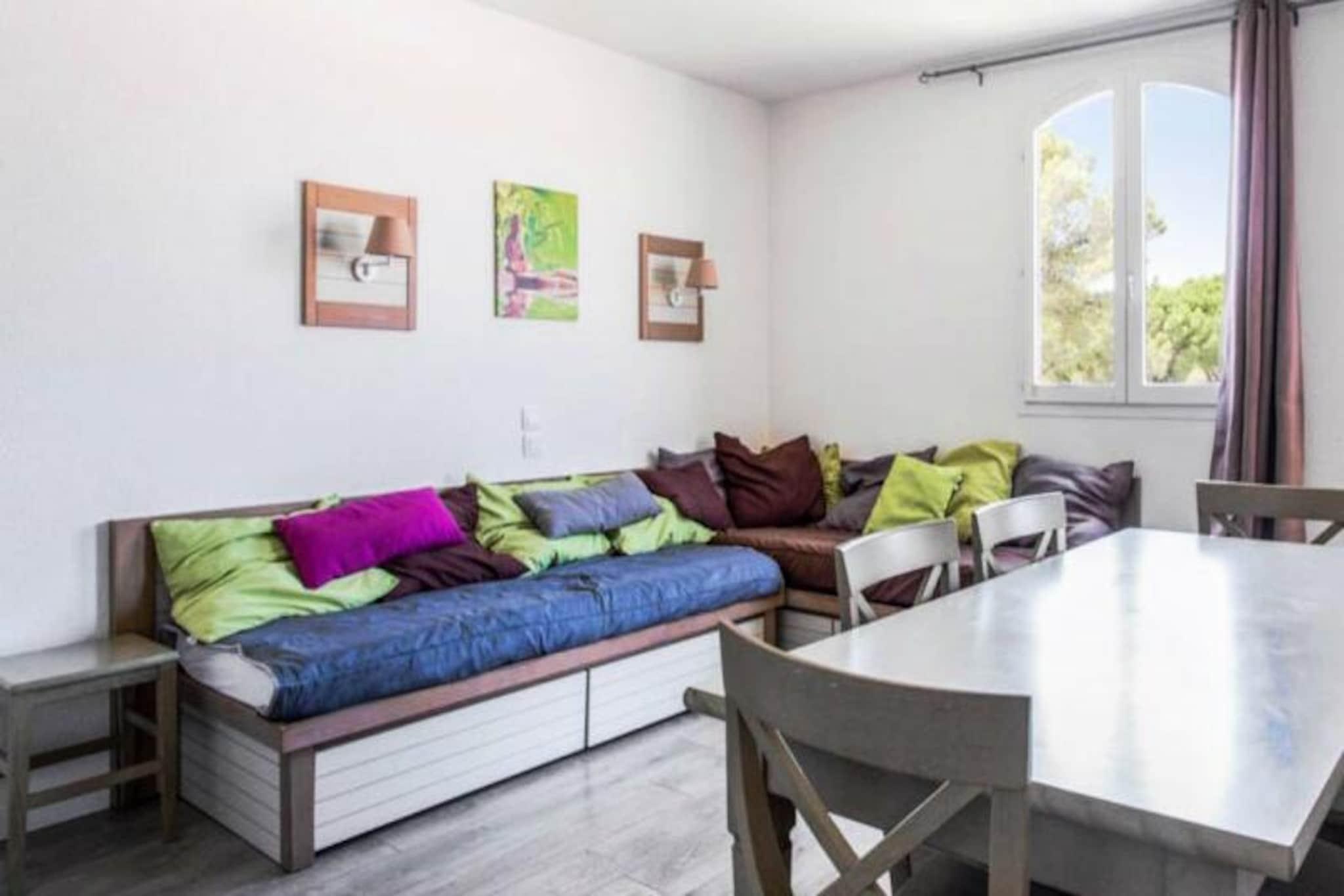 Denne charmerende lejlighed i Saint-Raphaël er designet til at rumme op til seks personer, hvilket gør den ideel til familier eller grupper. Lejligheden byder på et hyggeligt soveværelse, en stue og et kabineområde med fleksible sengearrangementer. Kæledyr er tilladt mod et ekstra gebyr, hvilket sikrer, at lodne ledsagere kan tage med dig på din ferie. Vigtige tjenester såsom sengelinned og et rengøringssæt er inkluderet i opholdet. Yderligere tjenester såsom Wi-Fi, håndklæder og daglig skift af sengetøj er tilgængelige mod et ekstra gebyr. Lejligheden ligger i et førsteklasses område, kun en kort køretur fra det pulserende Saint-Raphaël centrum, hvor du kan udforske de livlige markeder, restauranter og caféer. Nyd den fantastiske udsigt over Middelhavet, eller besøg de nærliggende strande for at slappe af og nyde solen. Regionen byder på smukke naturskønne steder med fyrreskove og kystudsigt. Besøgende kan også nyde attraktioner som byens charmerende fiskerihavn, det livlige kasino og historiske vartegn i nærliggende byer som Cannes og Nice. Lejligheden har et fuldt udstyret køkken, hvor du kan tilberede dine måltider, sammen med et komfortabelt badeværelse og toilet for ekstra bekvemmelighed. Det omfatter også en udendørs fælles swimmingpool, åben fra april til oktober, perfekt til at slappe af efter en dag med udforskning. Gæster kan vælge rengøringsservice og kan reservere parkeringsplads under deres ophold. Denne veludstyrede bolig sikrer en behagelig og problemfri ferieoplevelse.