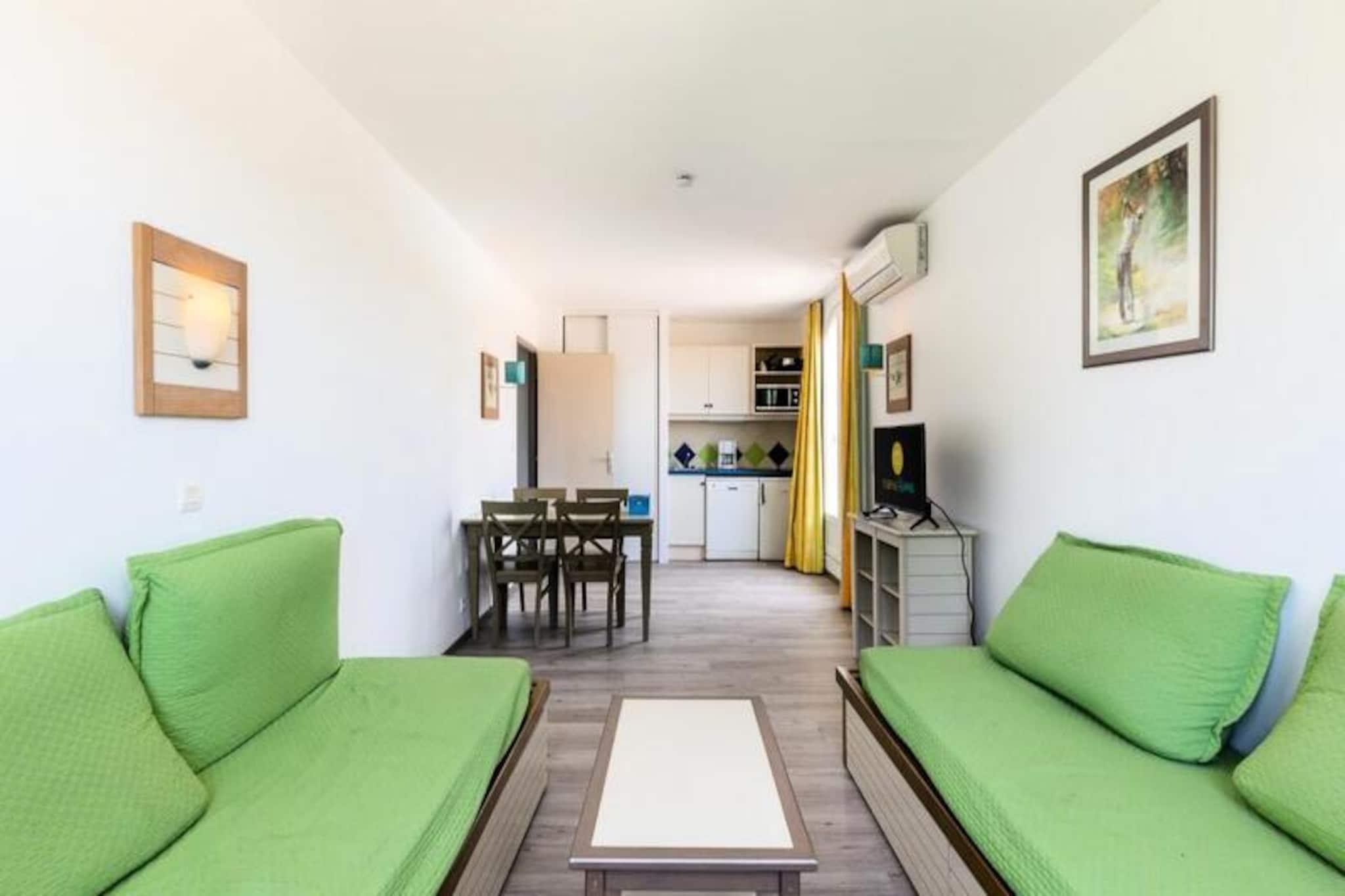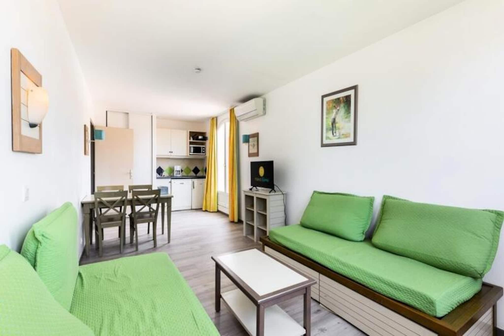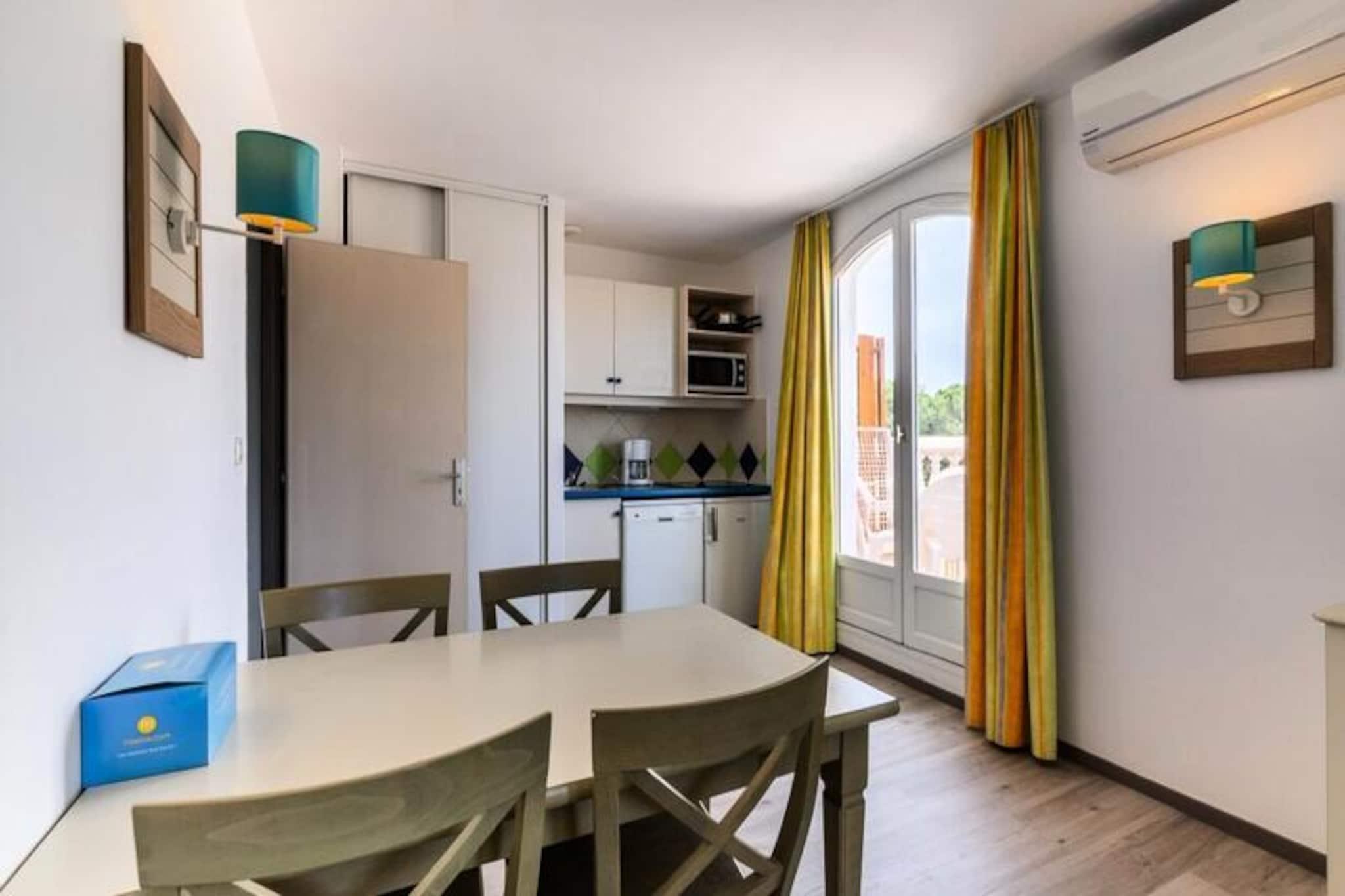 Denne charmerende lejlighed er perfekt til dem, der ønsker at slappe af og udforske det pulserende område. Lejligheden kan rumme op til seks personer og har en hyggelig stue og et kabineområde, ideelt til afslapning. Et soveværelse giver et afslappende rum, og badeværelset har væsentlige faciliteter, herunder bruser og toilet. Kæledyr er tilladt (med forbehold for ekstra gebyrer), hvilket gør det til en fantastisk mulighed for dem, der rejser med lodne ledsagere. Gæsterne kan også nyde gratis udækket parkering (baseret på tilgængelighed) og adgang til den store udendørs swimmingpool. Væsentlige tjenester såsom sengelinned er tilgængelige mod et ekstra gebyr, hvilket sikrer et behageligt ophold. Beliggende nær den livlige by Saint-Raphaël, tilbyder lejligheden nem adgang til en række lokale attraktioner, fra de maleriske strande til den travle bymidte. Oplev nærliggende caféer og lokale markeder, hvor du kan nyde friske råvarer og prøve lokale specialiteter. Den charmerende havn og det pulserende natteliv tilføjer et unikt touch, og det nærliggende kasino ved havet tilbyder underholdning for alle aldre. Placeringen er perfekt til at udforske den bredere Côte d'Azur, med berømte destinationer som Cannes og Nice kun en kort køretur væk. Indvendigt byder lejligheden på et fuldt udstyret køkkenområde, hvilket gør den ideel til at lave dine egne måltider. Det moderne toilet er udstyret med bruser og toilet, hvilket sikrer komfort under dit ophold. Rummet er designet til maksimal bekvemmelighed, med yderligere tjenester tilgængelige, såsom WiFi-adgang (mod et mindre gebyr). Slap af og nyd dit ophold, uanset om du forbereder et familiemåltid eller blot slapper af efter en dag med eventyr i de fantastiske omgivelser.