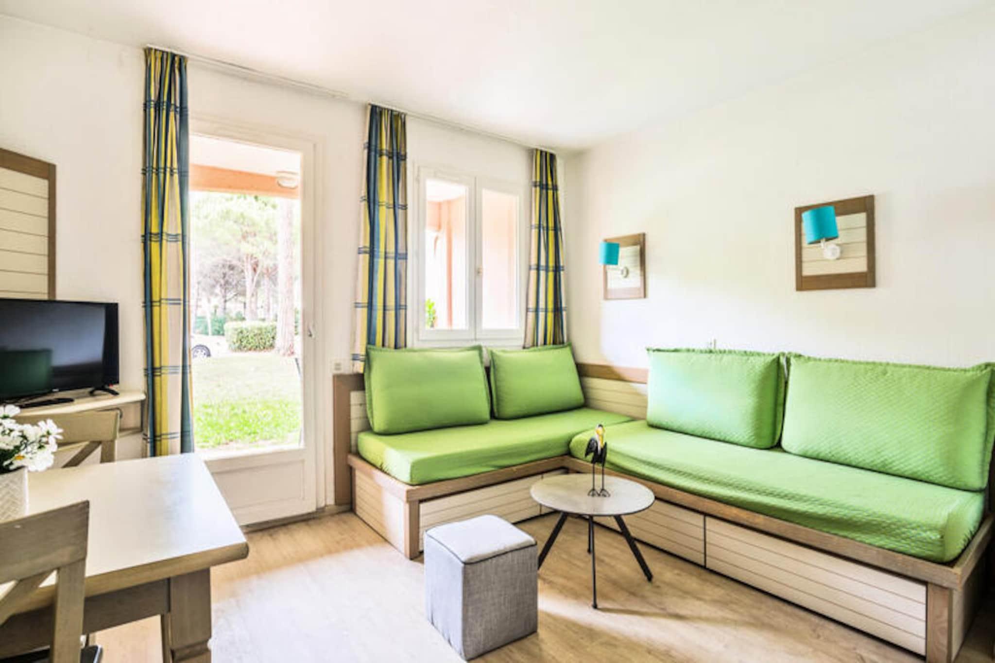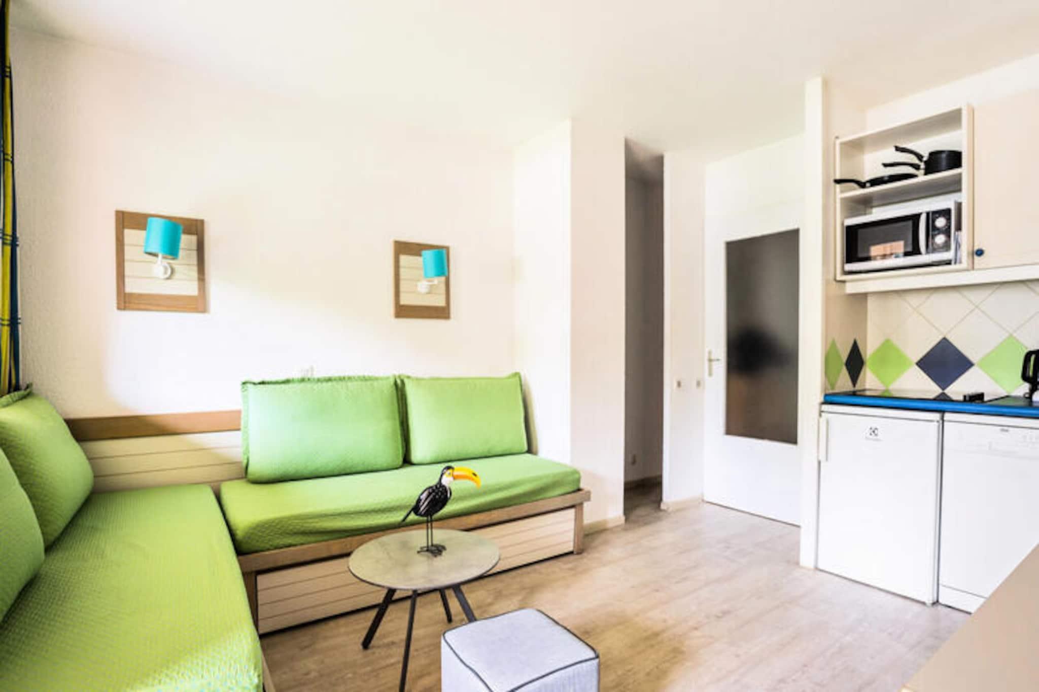 Denne hyggelige studiolejlighed tilbyder et behageligt ophold for op til to gæster. Enheden omfatter en stue med en dobbeltseng, et køkkenområde, et badeværelse og et separat toilet. Kæledyr er tilladt (mod ekstra gebyrer), og parkering er tilgængelig med én plads pr. enhed, afhængigt af tilgængelighed. Ejendommen tilbyder også en stor udendørs swimmingpool, som er åben fra april til oktober, og en snackbar, der er åben i spidsbelastningsmånederne. Mens rengøring er tilgængelig som en ekstra service, tilbydes sengelinned og håndklæder mod et ekstra gebyr, hvilket sikrer et velholdt ophold. Lejligheden er ideelt placeret for gæster, der ønsker at udforske det bedste af Saint-Raphaël og dens omgivelser. Nærliggende attraktioner omfatter det livlige bycentrum med dets livlige caféer og forskellige markeder, hvor du kan nyde lokale smagsoplevelser. Kun en kort gåtur eller køretur væk venter Middelhavskysten med en solrig fiskerihavn og det travle kasino, der tilbyder underholdningsmuligheder. Derudover er kendte kystbyer som Cannes og Nice inden for rækkevidde, hvilket gør dette til en perfekt base for en ferie på Côte d'Azur. Denne charmerende studiolejlighed er udstyret med alt det grundlæggende for et behageligt ophold, og byder på et fuldt funktionelt køkken til selvforplejning, ideelt til at tilberede enkle måltider. Badeværelset, inklusive et toilet, sikrer gæsterne privatliv og bekvemmelighed under hele opholdet. Med Wi-Fi tilgængeligt mod et ekstra gebyr, kan du nemt holde forbindelsen eller bare slappe af og slappe af i dit hyggelige feriehus, mens du nyder din ferie på denne naturskønne beliggenhed.