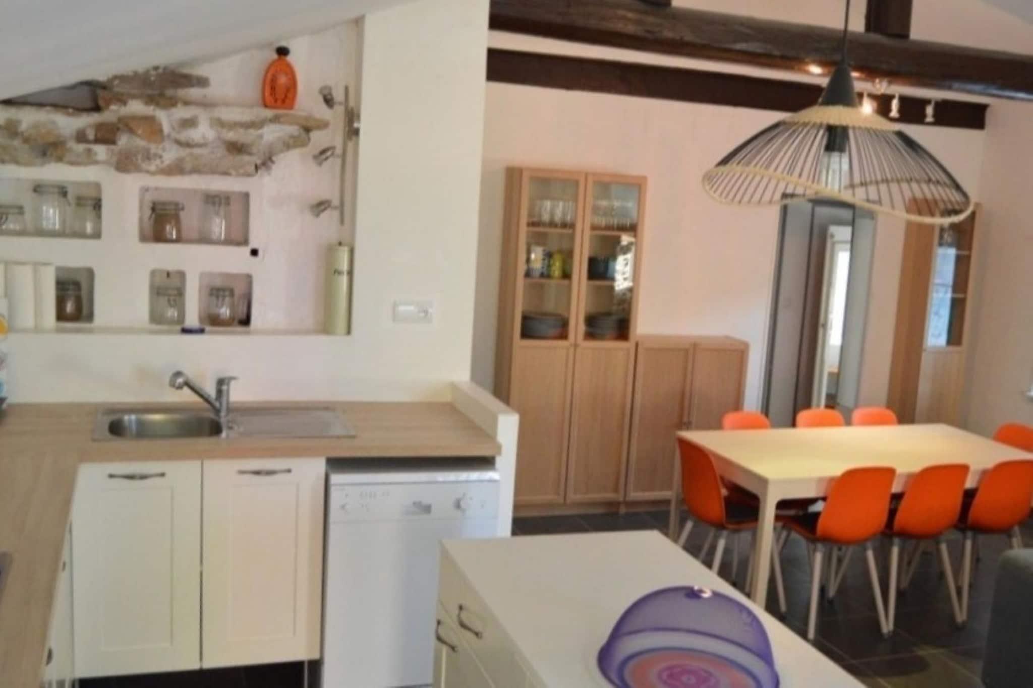 Gemt i det fredelige landskab i Saint-Sébastien-d"Aigrefeuille tilbyder dette charmerende feriehus plads, komfort og naturens beroligende rytme. Det er designet til op til 6 gæster og har en privat pool, grønne udendørsområder og et varmt og indbydende interiør - de perfekte rammer for rolige morgener, udendørs måltider og stille aftener under Cévennes himmel. Indenfor er det åbne køkken fuldt udstyret til hjemmelavede festmåltider, mens den hyggelige opholds- og spisestue inviterer dig til at slappe af med et smart-tv og bløde siddepladser. Stueetagen indeholder to komfortable soveværelser med dobbeltsenge og et moderne badeværelse med vaskemaskine. Ovenpå tilbyder et tredje soveværelse med to enkeltsenge og et ekstra badeværelse privatliv og fleksibilitet for familier eller venner. Aircondition, en overdækket terrasse, en indhegnet have, liggestole og en privat 8×4 m pool fuldender billedet af et ubesværet ferieliv. Et bordtennisbord lover muntre eftermiddagskampe. Beliggende i et landligt område ved floden er denne beliggenhed en drøm for naturelskere. Den storslåede Cévennes Nationalpark og den historiske Chemin de Régordane inviterer til lange... vandreture, naturskønne udforskninger og endeløse udendørs eventyr. For kulturelskere tilbyder Musée du Désert og Pierre André Benoit Museum et fascinerende indblik i lokalhistorien. Familier vil elske den berømte bambushave og Cévennes-damptoget fra Anduze. Nærliggende vandveje er perfekte til rafting, fiskeri eller rolige øjeblikke ved kysten, mens de omkringliggende bakker tilbyder muligheder for grottevandring, jagt og opdagelse af den rå skønhed i Sydfrankrig i dit eget tempo.