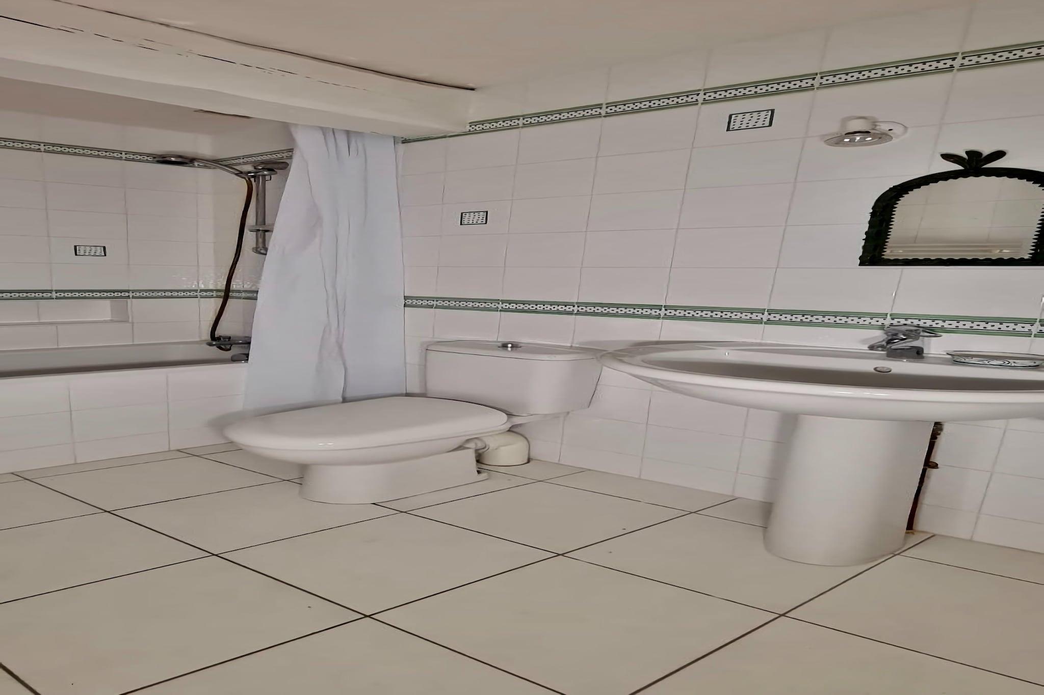 Stueetage: (Indgang , toilet, legeværelse) På 1. etage: (Køkken(kogeplade, brødrister, emhætte, kaffemaskine, espressomaskine, ovn, mikrobølgeovn, opvaskemaskine , køle-fryseskab), stue / spisestue(95 m2)(spisebord(12 personer), pejs, sofahjørne), Soveværelse med badeværelse(enkeltseng(90 x 200 cm), enkeltseng(90 x 200 cm), badekar med bruser, toilet), Soveværelse med badeværelse(enkeltseng(90 x 200 cm), enkeltseng(90 x 200 cm), enkeltseng(90 x 200 cm), enkeltseng(90 x 200 cm), badekar med bruser, toilet), vaskerum (køle-fryseskab, tørretumbler, vaskemaskine), toilet) På 2. etage: (Soveværelse med badeværelse(enkeltseng(90 x 200 cm), enkeltseng(90 x 200 cm), bruser), Soveværelse med badeværelse(dobbeltseng, badekar med bruser), åbent rum(Fjernsyn(parabol, Internationale TV-kanaler), sofahjørne, DVD-afspiller), toilet) opholdsrum, balkon eller terrasse, varme, terrasse, have, havemøbler, solstole, grill, parkering, swimmingpool(privat, opvarmet, 12 x 6 m., opened from Apr upto and including Oct), bordtennisbord, bordfodbold, airhockey, loungemøbler