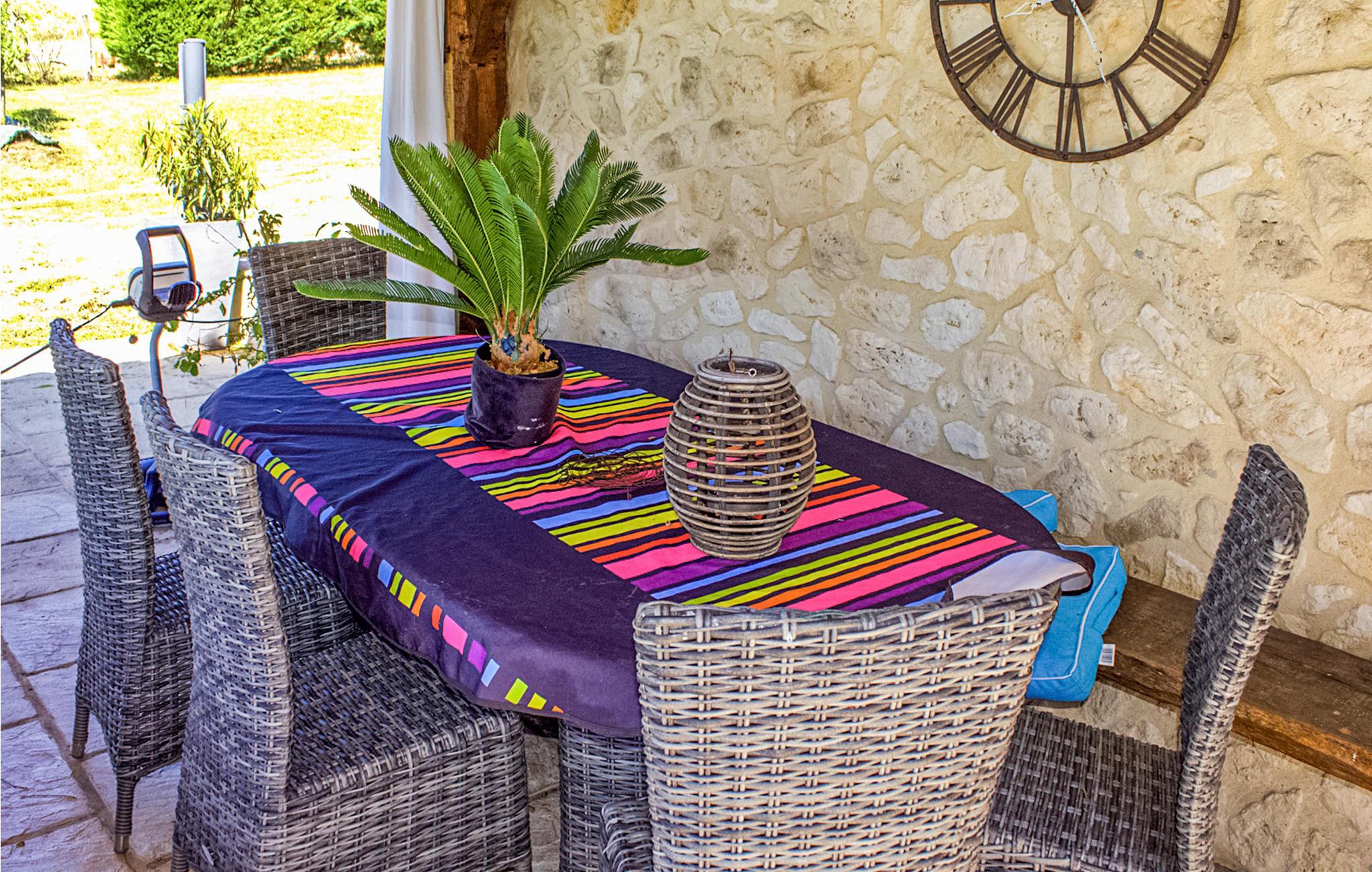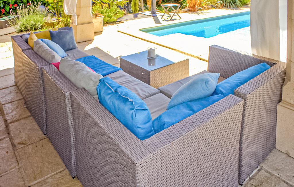Den overdækkede terrasse er et skønt sted til at slappe af og tilbringe mange timer udendørs. Her kan I nyde jeres morgenkaffe, mens I planlægger dagens program og lade dagen ende smukt, mens I ser på landskaberne. Snup et spil petanque og slap bagefter af med en kold forfriskning i skyggen. En fællespool med liggestole står også til rådighed, hvis I skulle få behov for en kølig dukkert.
