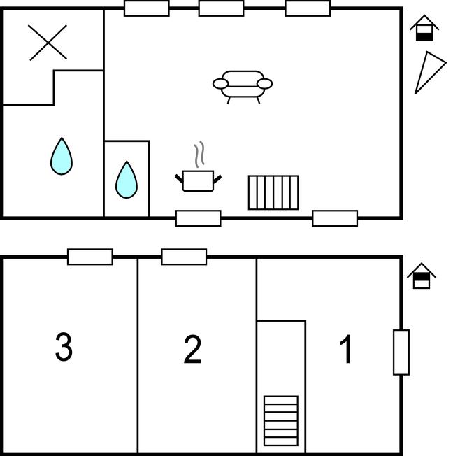 Soveværelse 13m2 (nr. 3) - 1 Soveplads. (Enkeltseng(e)). 2 Sovepladser. (Dobbeltseng(e)).