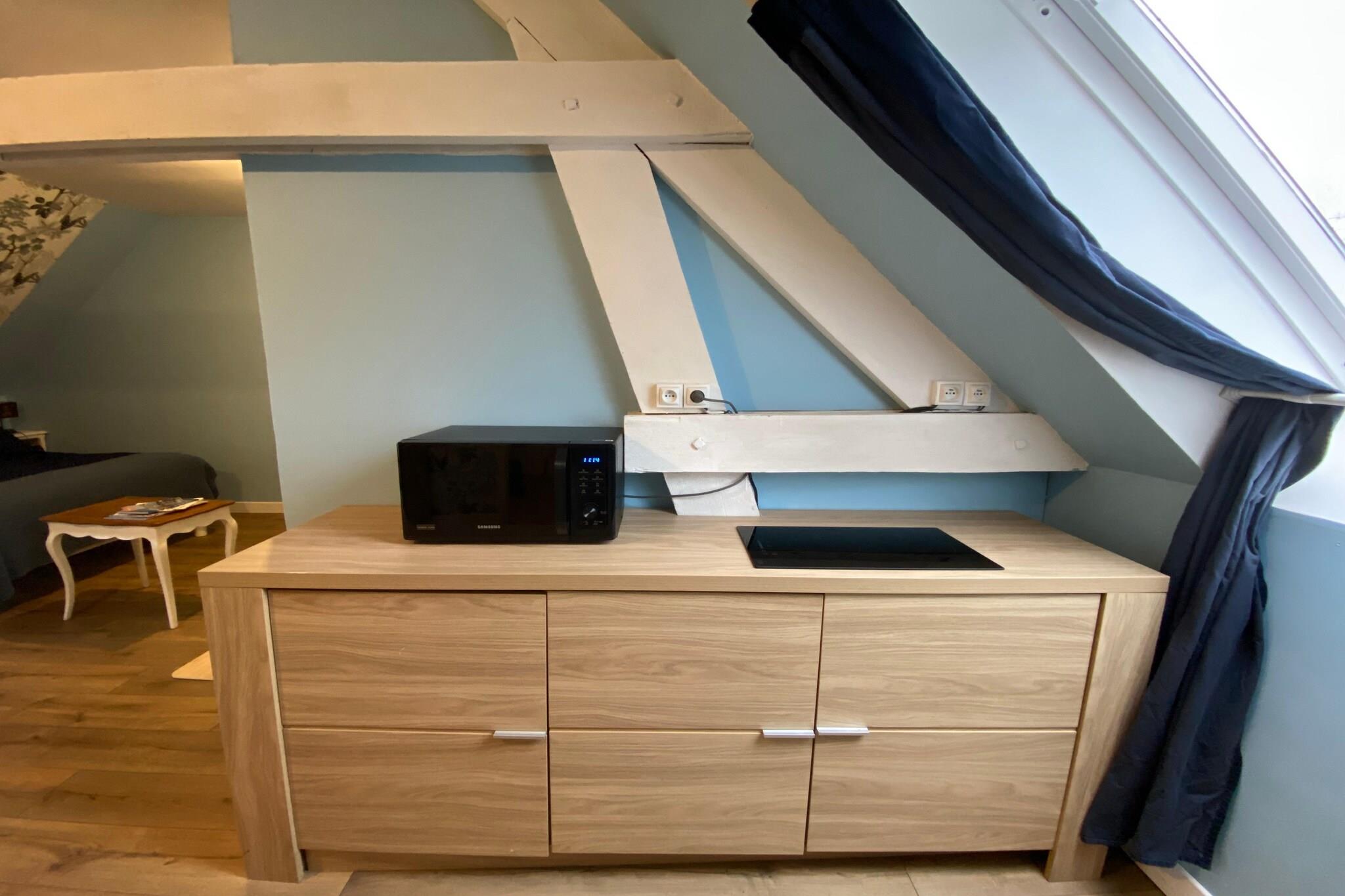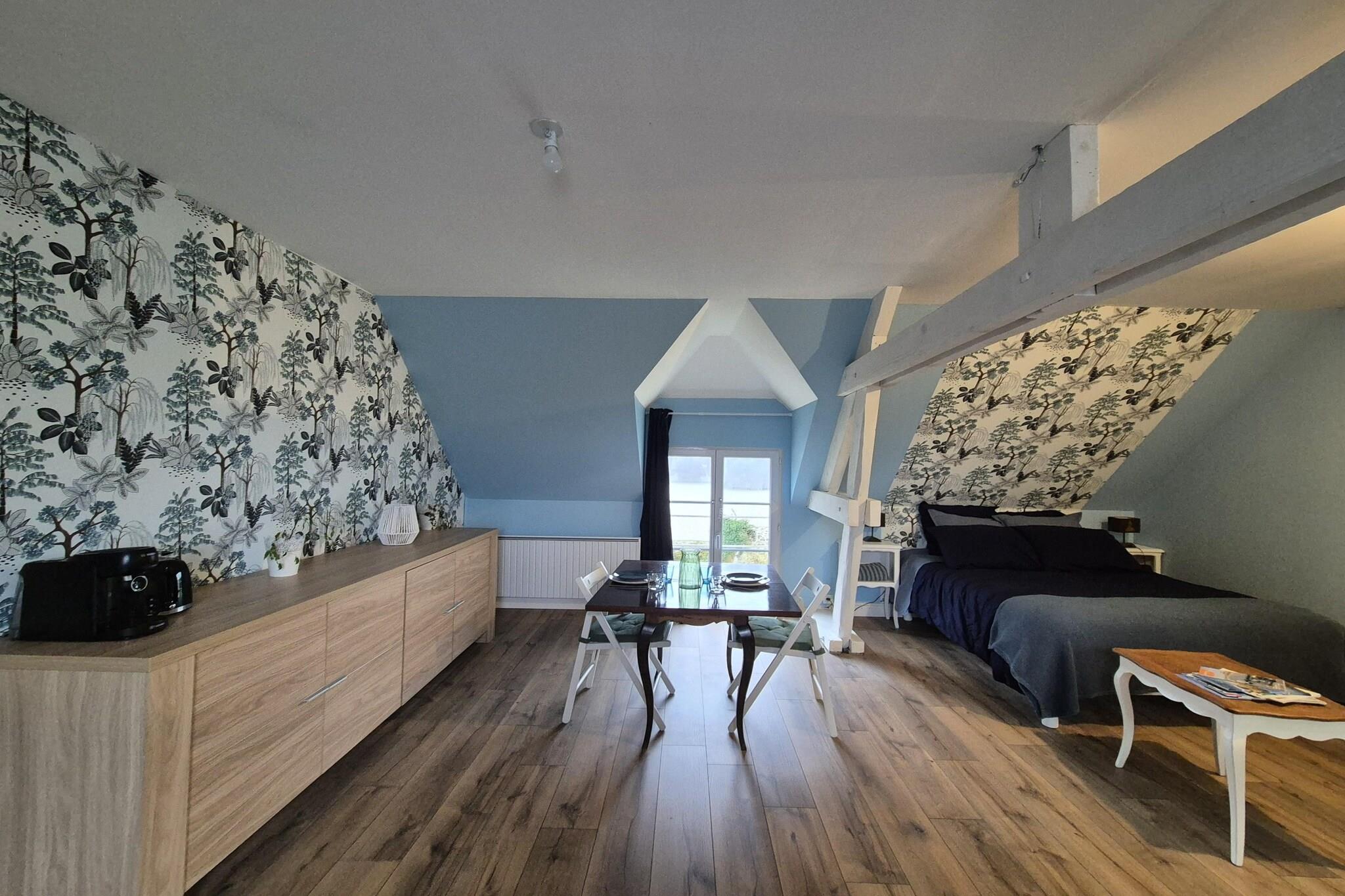 Dette rolige landsted tilbyder en hyggelig, praktisk og imødekommende base for par eller solorejsende, der søger en fredelig ferie. Beliggende på første sal i en fælles ejendom i et roligt kvarter, kombinerer studiolejligheden enkel, funktionel livsstil med udendørs nydelse og nem adgang til lokale attraktioner. Indenfor har studiolejligheden et kompakt tekøkken udstyret med kaffemaskine, mikrobølgeovn og køleskab, så du nemt kan tilberede morgenmad og lette måltider. Den åbne stue/soveværelse har en komfortabel dobbeltseng og skaber en afslappet atmosfære til både hvile og hverdag. Et privat badeværelse med bruser og toilet gør opholdet mere behageligt. Praktiske faciliteter inkluderer adgang til en vaskemaskine, der deles med andre gæster, hvilket gør længere ophold mere bekvemme, og en barneseng til rådighed for par, der rejser med et spædbarn. Der er parkering på stedet for problemfri ankomst og afrejse. Udenfor er du inviteret til at nyde den fælles terrasse og have - rolige rum indrettet til komfort, hvor du kan nippe til morgenkaffe, slappe af med en bog eller nyde et måltid under åben himmel med en smuk udsigt over omgivelserne. Disse udendørsområder deles med værten og et lille antal andre gæster, hvilket skaber et venligt og afslappet miljø. Lejlighedens beliggenhed placerer dig i nem køre- eller gåafstand fra lokale butikker, caféer og naturskønne steder, hvilket gør den til en bekvem base for at udforske nærliggende strande, naturstier, historiske byer og kulturelle højdepunkter. Uanset om dine planer inkluderer aktive dage eller afslappede øjeblikke i haven, kombinerer denne charmerende studiolejlighed komfort, enkelhed og et strejf af udendørsliv for et mindeværdigt ophold.