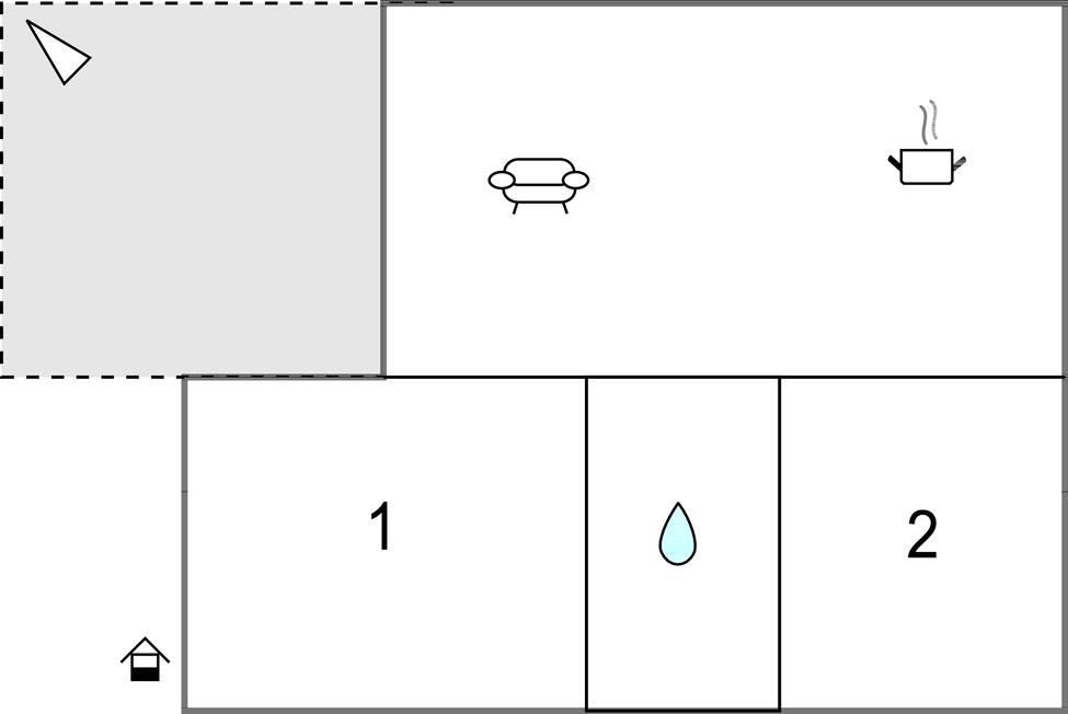Opholdsstue 14m2 - 2 Sovepladser. (Sofa, madras eller lignende).