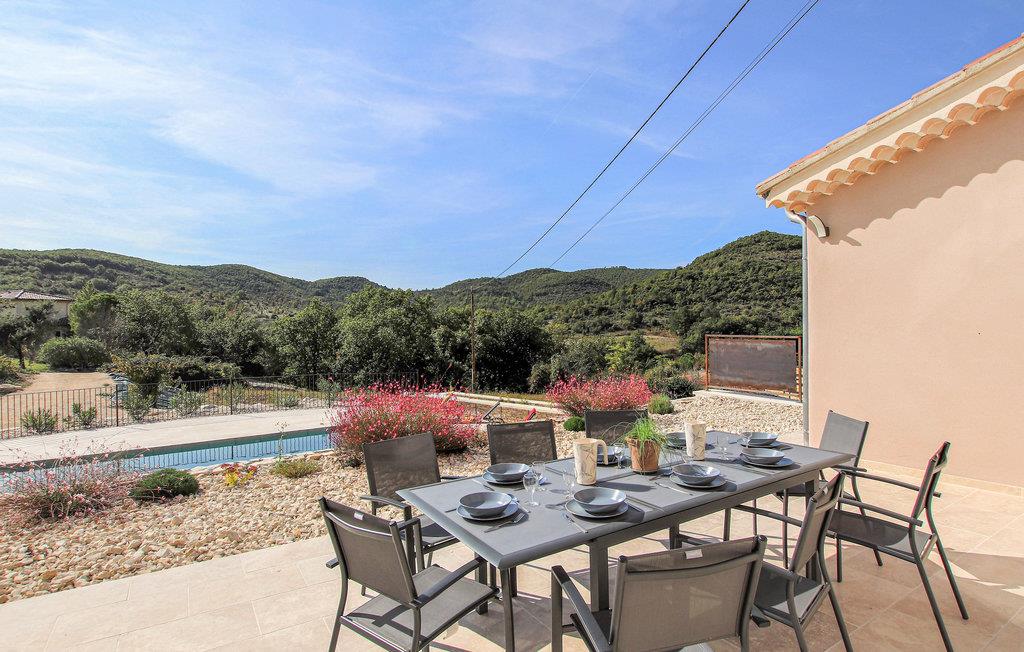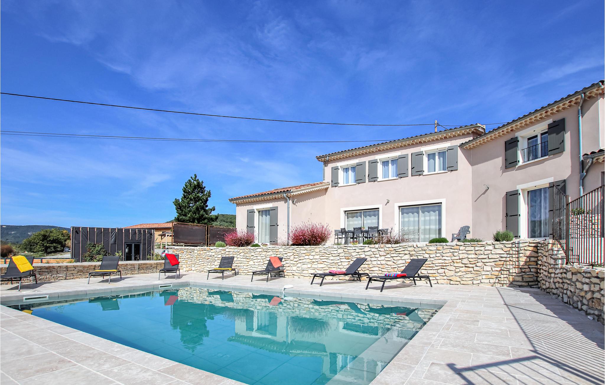 Nyt og moderne feriehus med plads til 14 personer og en smuk swimmingpool.