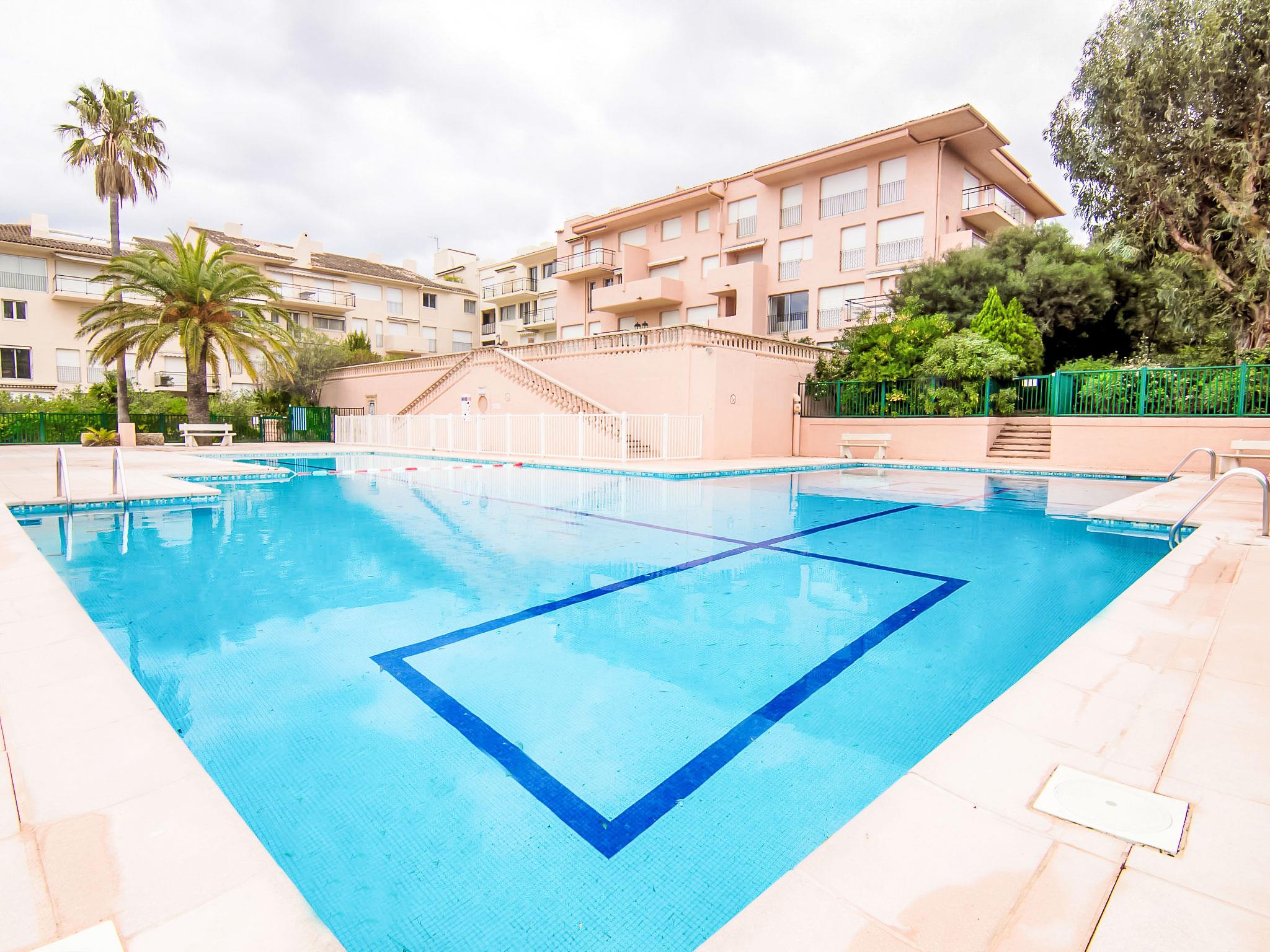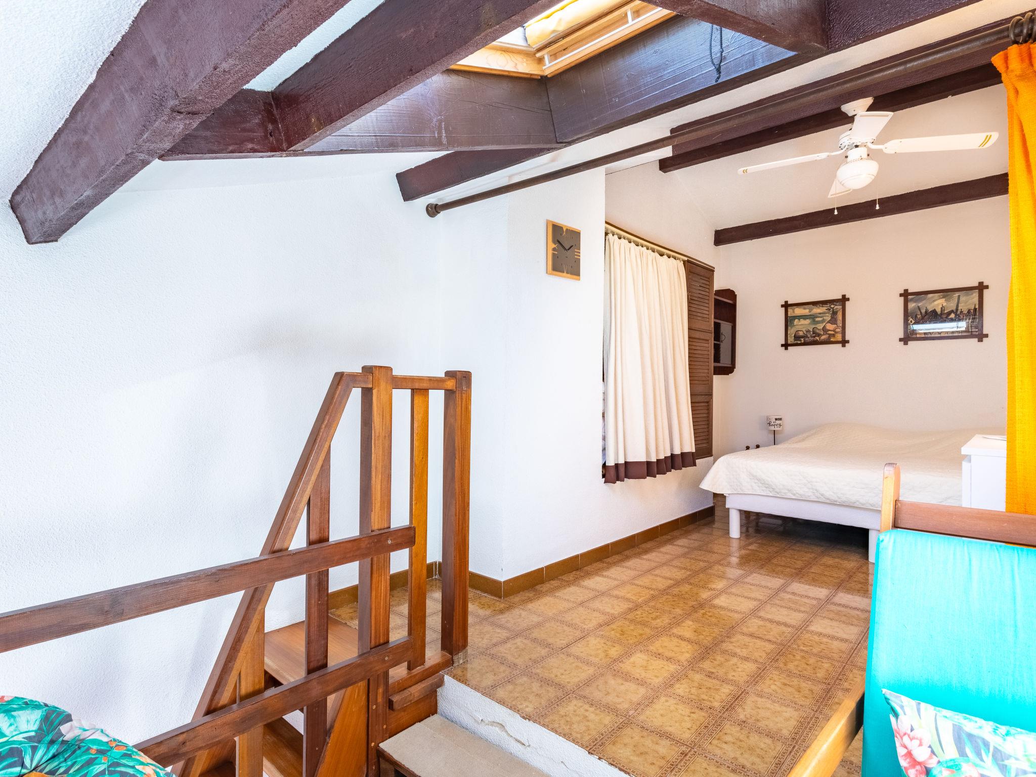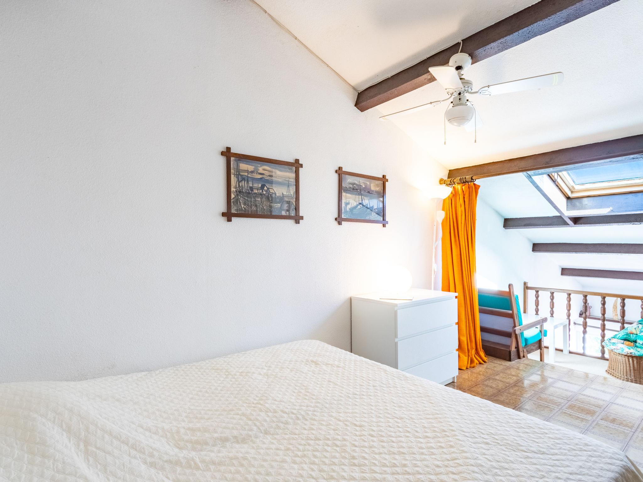 "Résidence Héraclée 1", 1-room studio 35 m2 on 4th floor. Practical furnishings: living room with 1 bed (80 cm, length 190 cm), TV (flat screen), DVD. Exit to the balcony. Kitchenette (4 ceramic glass hob hotplates, microwave, electric coffee machine). Shower/WC. Electric heating. Upper floor: (steep stair) gallery with 2 beds (90 cm). Balcony 5 m2. Balcony furniture. View of the sea and the swimming pool. Facilities: Internet (WiFi, extra). Garage space n 3309. Please note: not suitable for small children. Smoke alarm. 83119000205WF