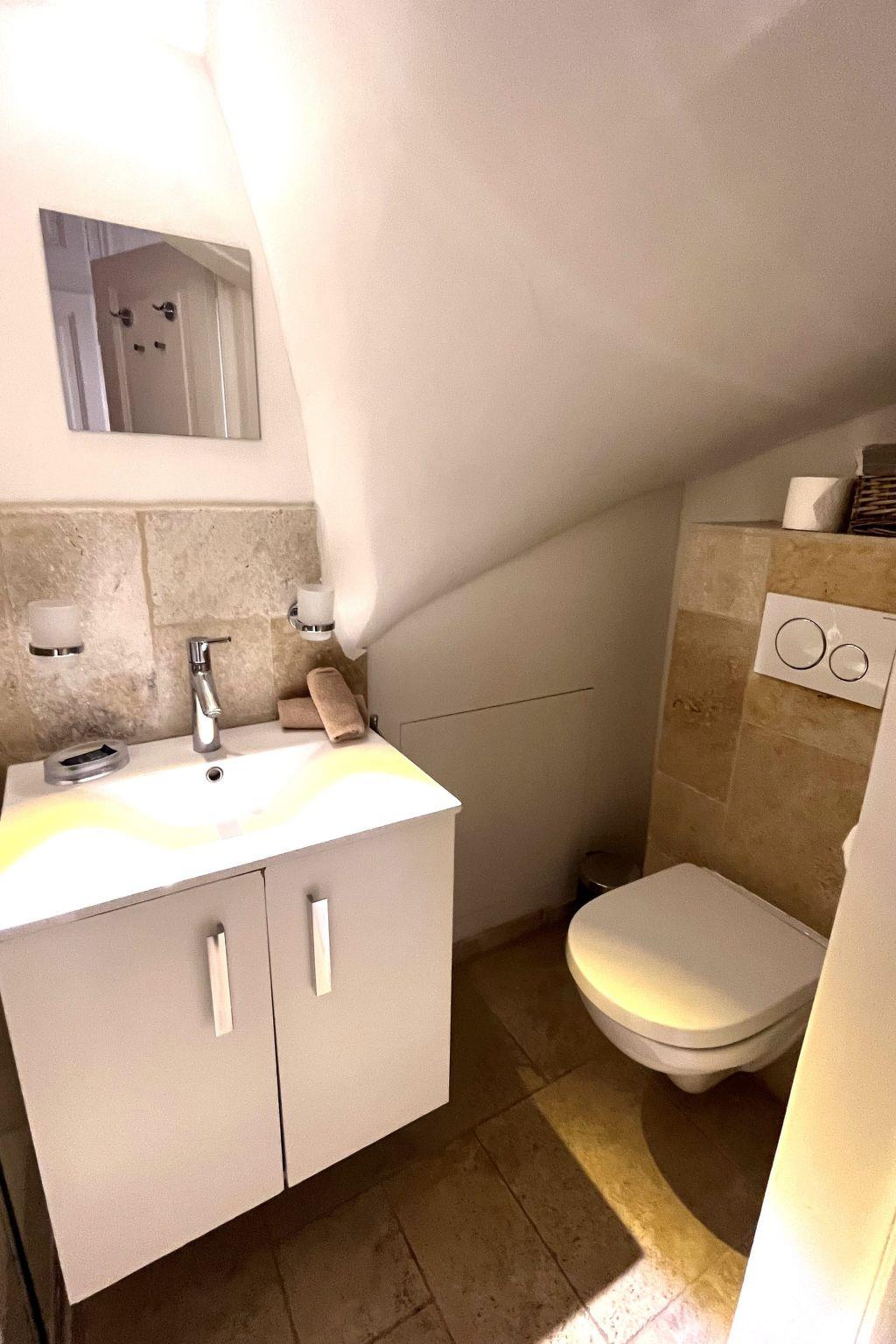 In the heart of the old town of Saint-Tropez, this charming 56 m² flat welcomes you in a lovely, completely renovated, typically Provencal village house. Nestling in a character-filled alleyway just a stone's throw from the church with its emblematic dome, this flat combines authenticity, comfort and a Tropezian atmosphere. Arranged over two levels, the flat can accommodate up to 4 people. Downstairs, a cosy vaulted living room with sofa bed, a fully equipped open-plan kitchen and a dining area for 4. Upstairs, a bedroom with double bed and en suite shower room with WC. The tasteful decor and optimised layout make this the ideal place to stay for couples, friends or family. All the restaurants, shops and entertainment in the centre are within walking distance, and the port is just 2 minutes away. Pay car parks (such as the Parking du Nouveau Port and the Parc des Lices) are just a 7-minute walk away.