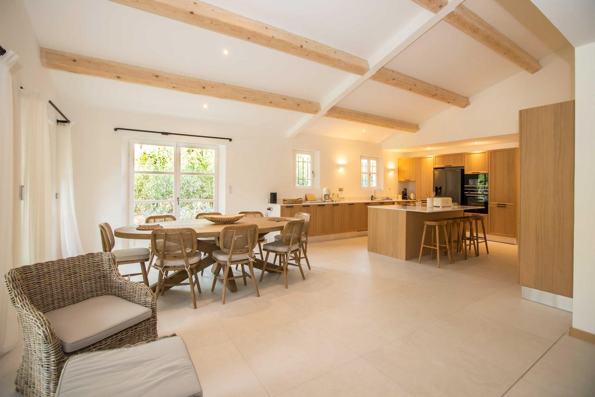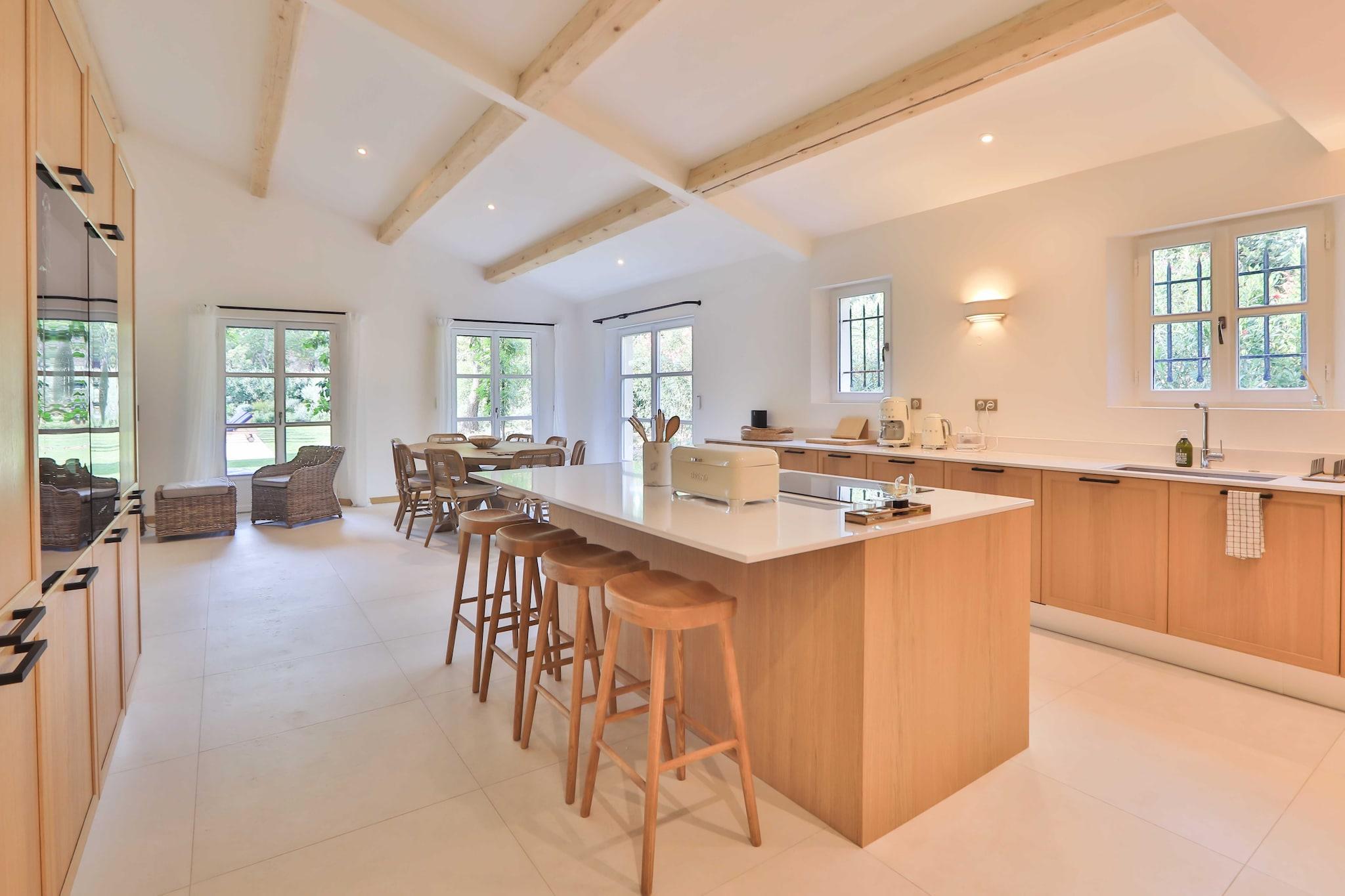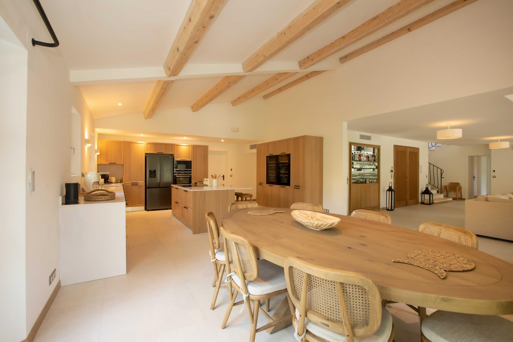 Ground floor: (Living room(TV, seating area), Kitchen(stove, hob, electric kettle, toaster, coffee machine, oven, combination microwave, dishwasher, fridge, washing machine, dishes and cutlery), bedroom(double bed, heating), bedroom(double bed, heating), bedroom(double bed, heating), bedroom(double bed, heating), bathroom(shower, washbasin, toilet, hairdryer), bathroom(shower, washbasin, toilet, hairdryer), bathroom(shower, washbasin, toilet, hairdryer), bathroom(shower, washbasin, toilet, hairdryer)) Bed Linen, Desk, Hot Water, Internet Access DSL, Wardrobe, First Aid, Play area, tumble dryer, air conditioning, swimming pool, private outdoor pool, high chair, iron, crib(free), Towels/Sheets (Incl.), shampoo, Essentials, Carbon monoxide detector, Cleaning Disinfection, Cleaning before checkout, Downtown, Enhanced cleaning practices, High touch surfaces disinfected, Long term stays allowed, Near Ocean, Town, Village