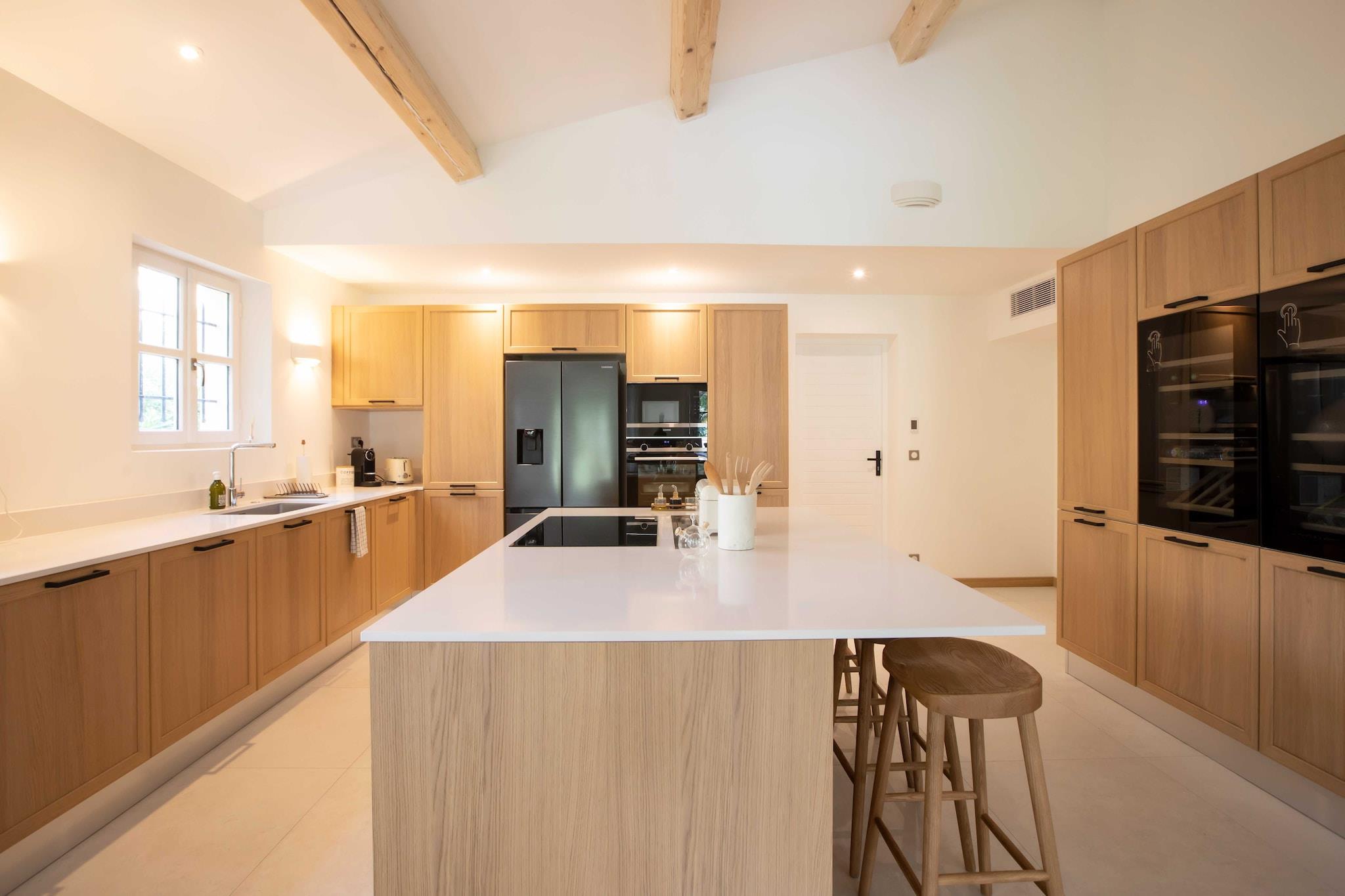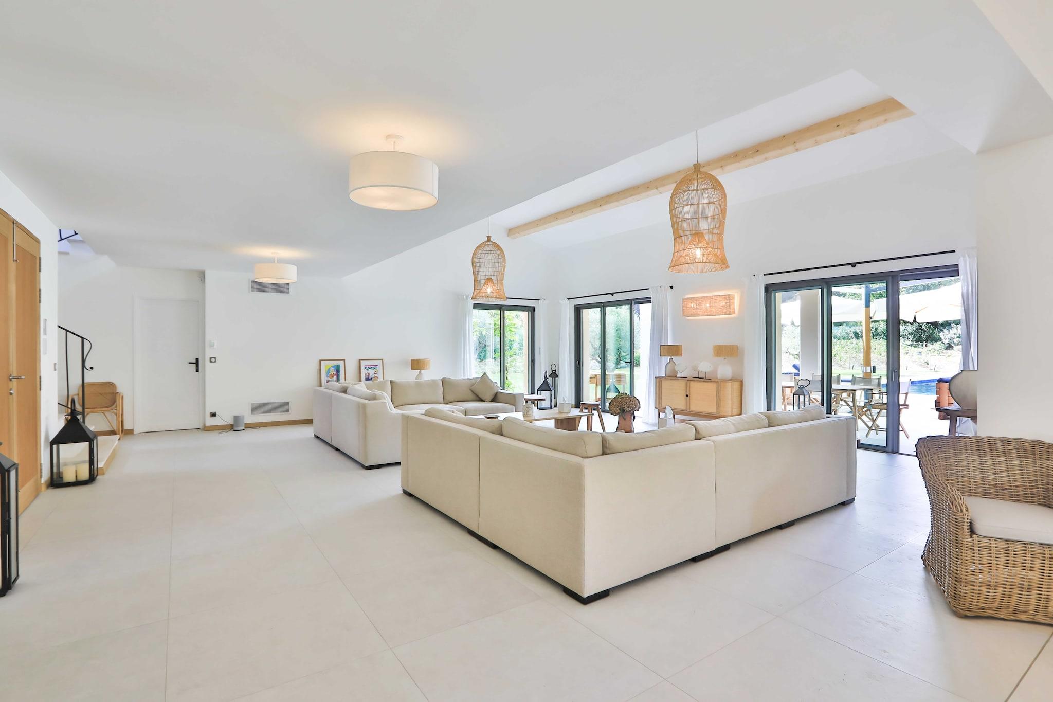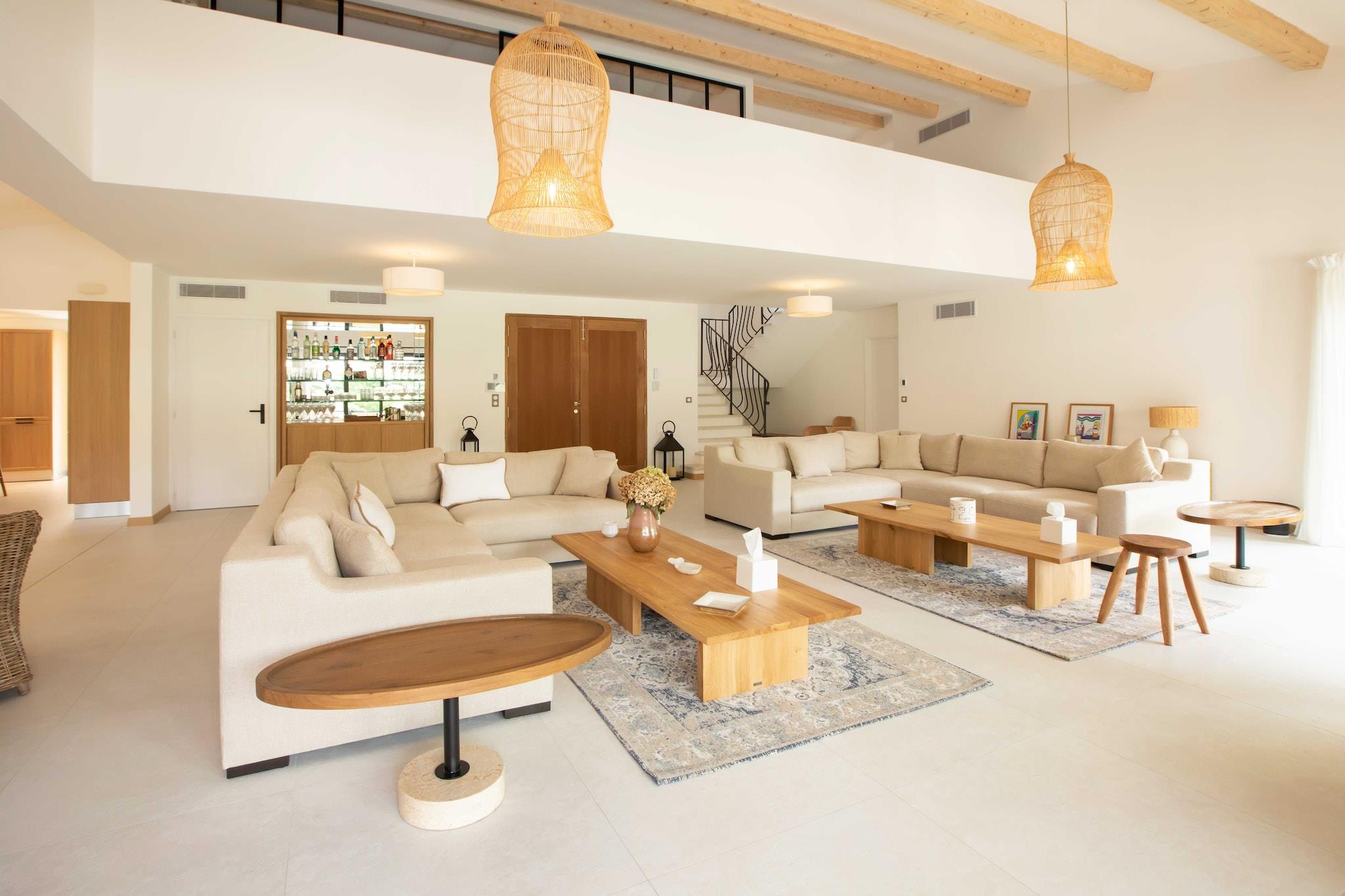 Ground floor: (Living room(TV, seating area), Kitchen(stove, hob, electric kettle, toaster, coffee machine, oven, combination microwave, dishwasher, fridge, washing machine, dishes and cutlery), bedroom(double bed, heating), bedroom(double bed, heating), bedroom(double bed, heating), bedroom(double bed, heating), bathroom(shower, washbasin, toilet, hairdryer), bathroom(shower, washbasin, toilet, hairdryer), bathroom(shower, washbasin, toilet, hairdryer), bathroom(shower, washbasin, toilet, hairdryer)) Bed Linen, Desk, Hot Water, Internet Access DSL, Wardrobe, First Aid, Play area, tumble dryer, air conditioning, swimming pool, private outdoor pool, high chair, iron, crib(free), Towels/Sheets (Incl.), shampoo, Essentials, Carbon monoxide detector, Cleaning Disinfection, Cleaning before checkout, Downtown, Enhanced cleaning practices, High touch surfaces disinfected, Long term stays allowed, Near Ocean, Town, Village