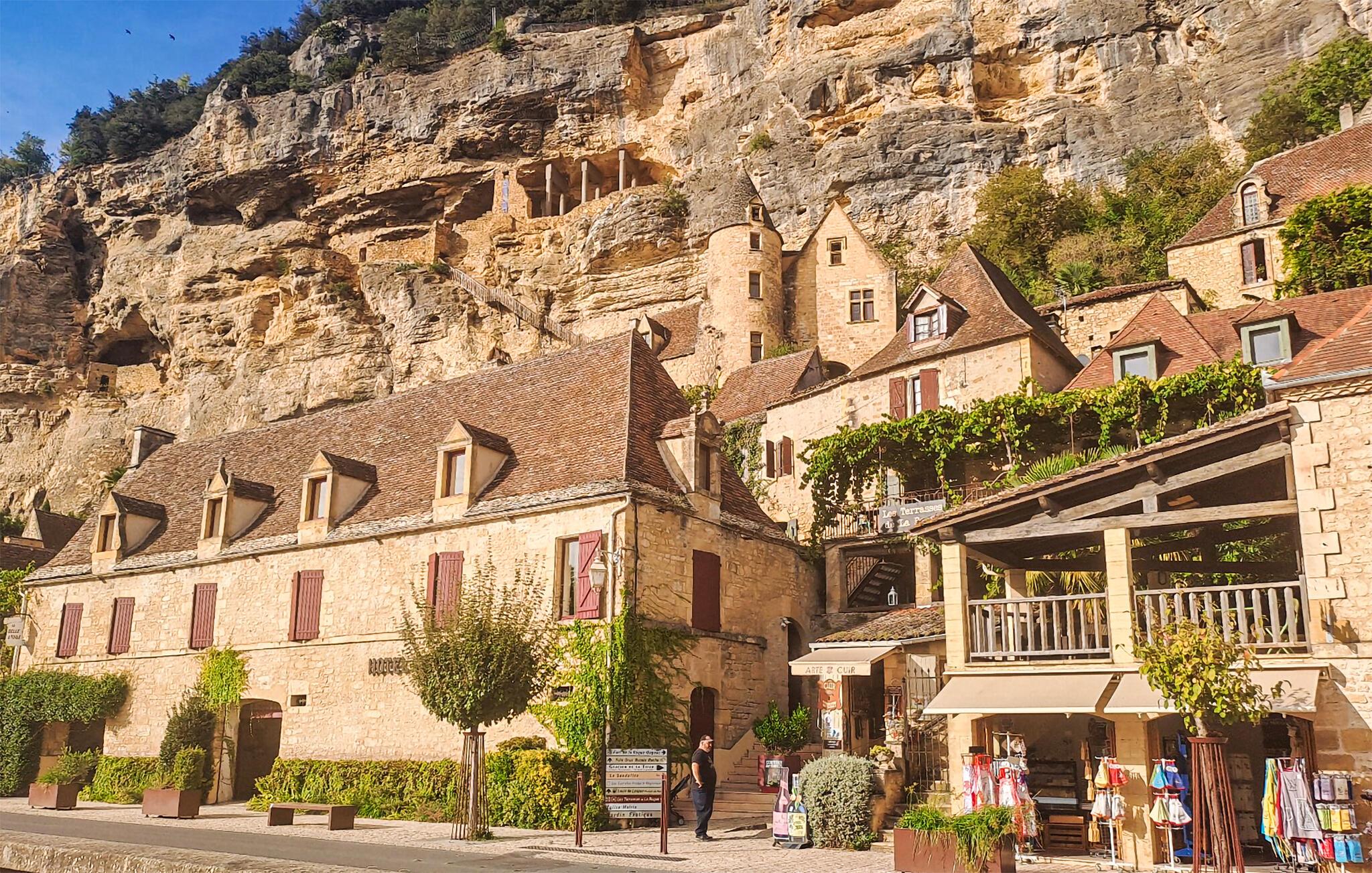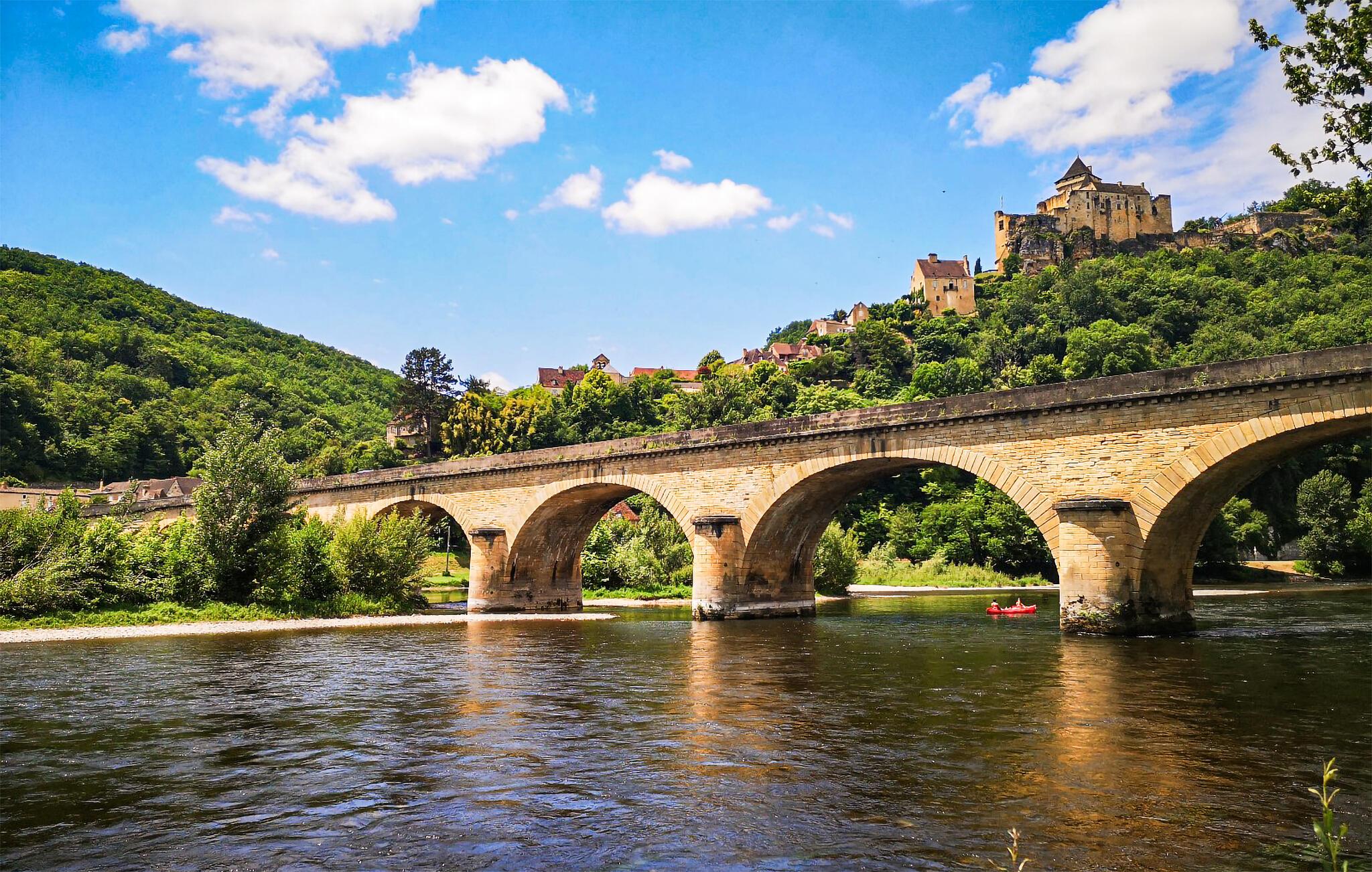 Gå en tur langs Dordogne og se den betagende udsigt over flodens slyngninger i Trémolat. Lad jer fortrylle af de hængende haver i Limeuil, oplev spændende huler og gamle klostre og udforsk seværdighederne i Sarlat, Périgueux og Bergerac. Prøv regionale produkter som foie gras, trøfler eller porcini-svampe på farverige markeder.