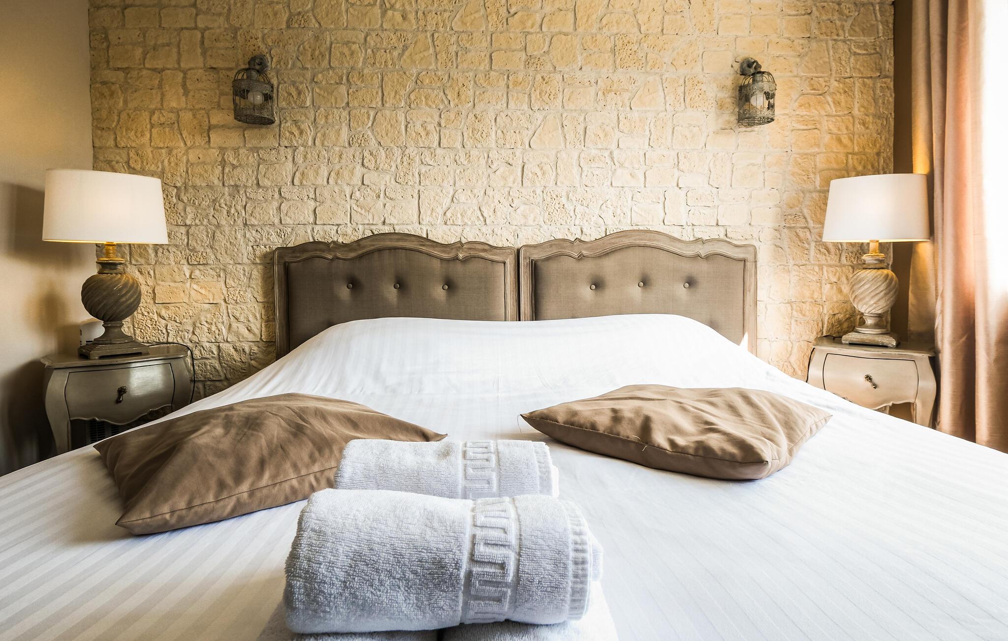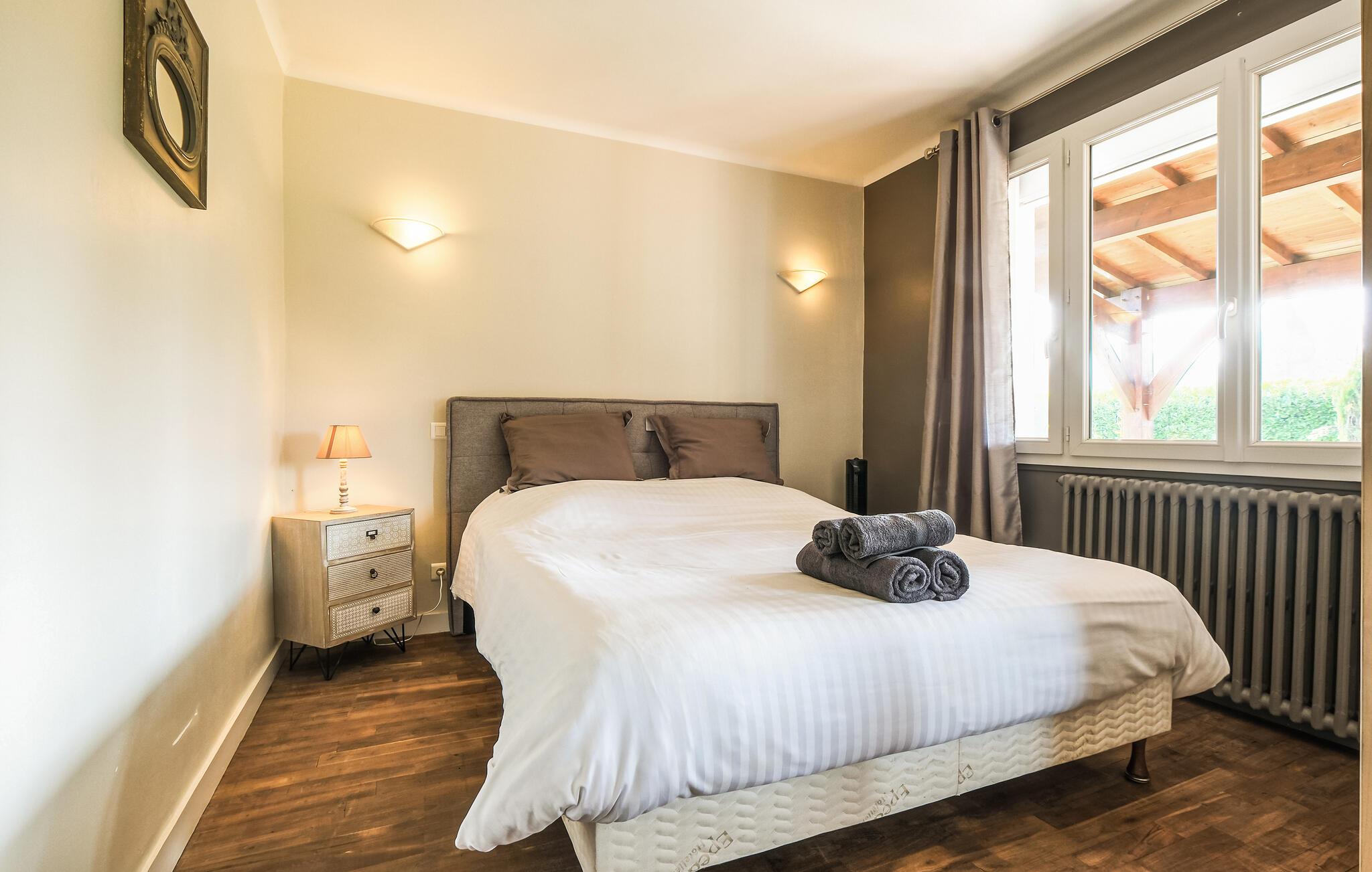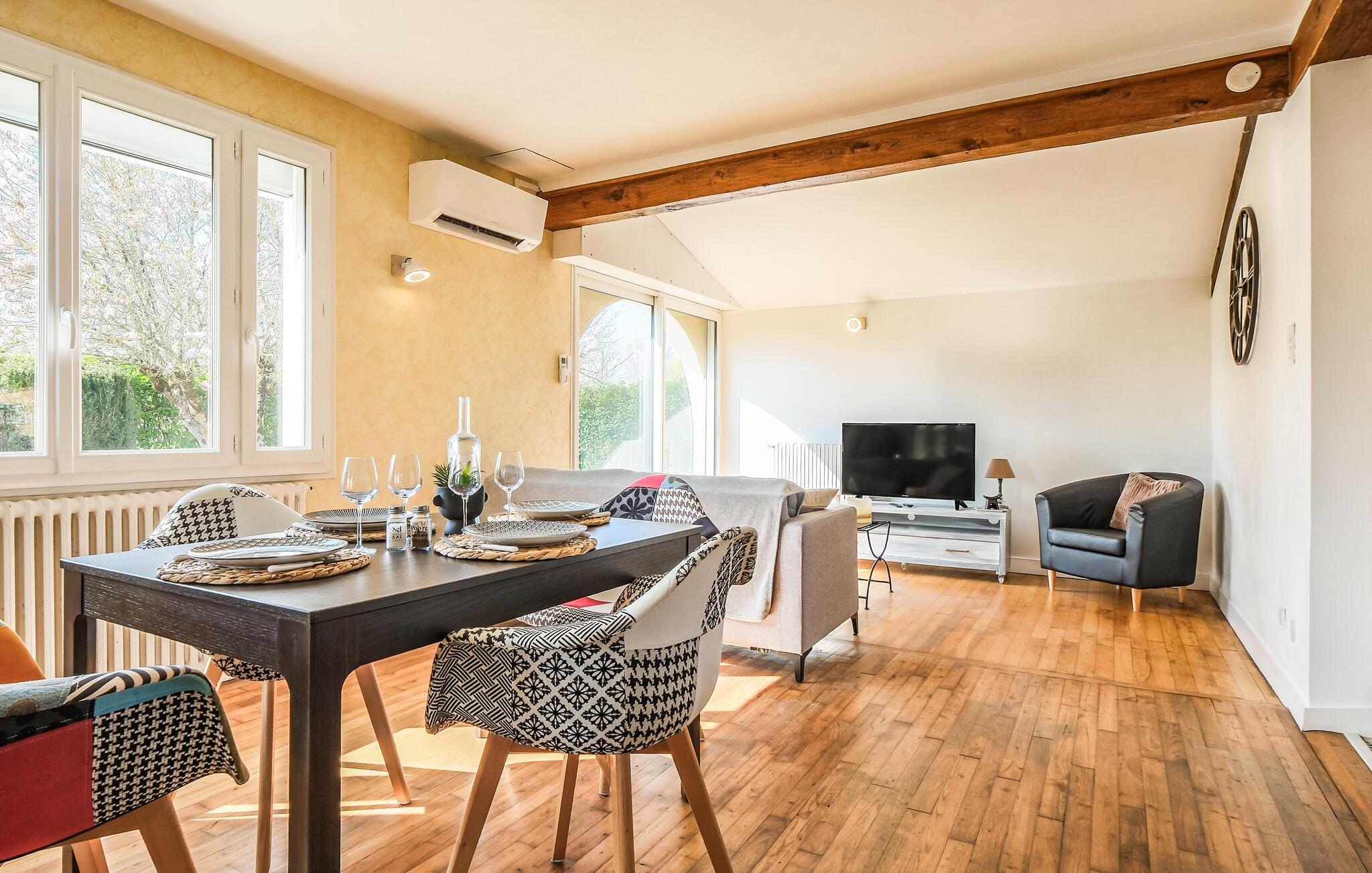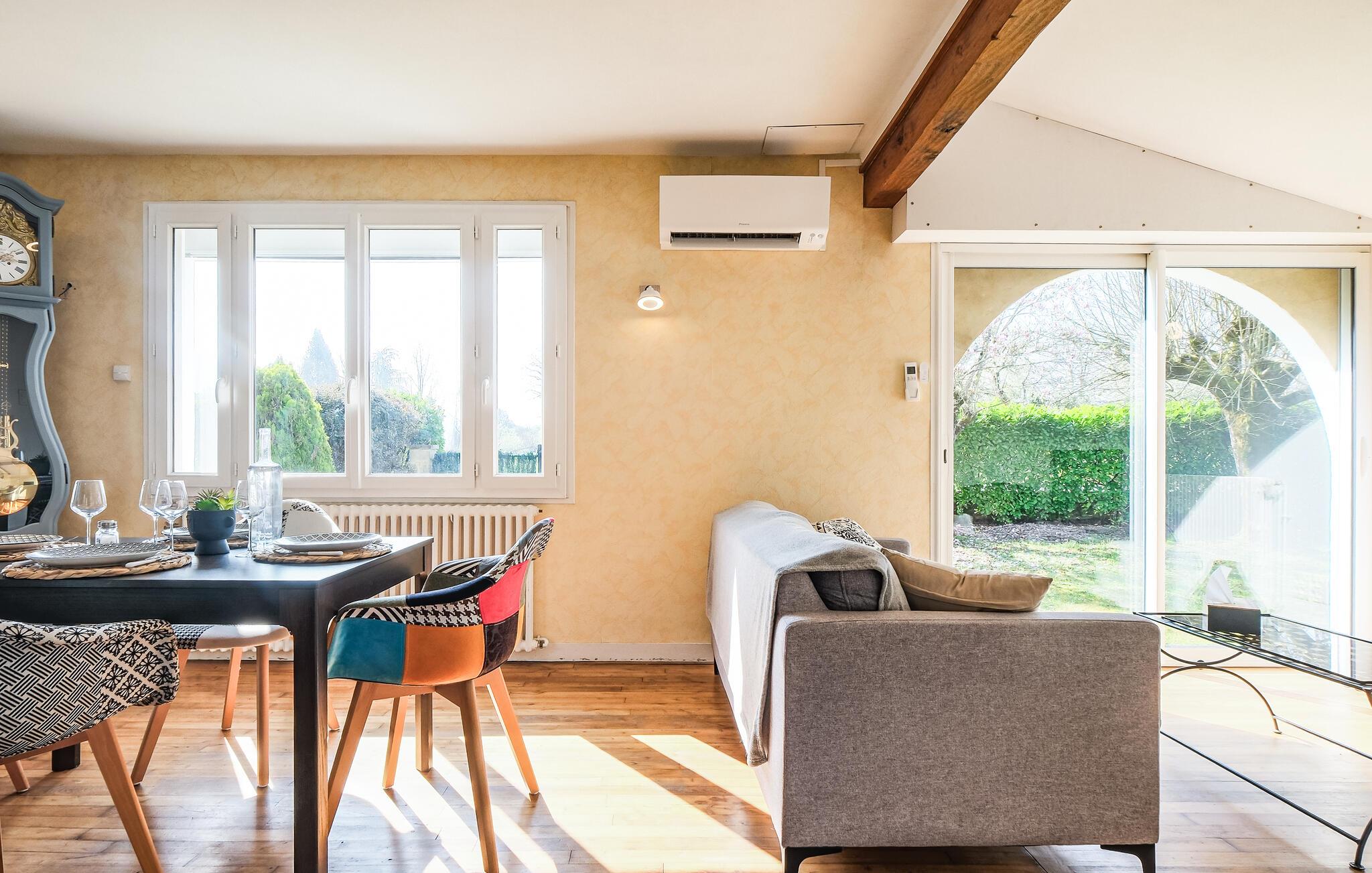 Dette indbydende feriehus byder jer velkommen med en lys atmosfære, autentiske møbler og smukke trælofter, hvilket giver jer en komfortabel base for at udforske regionens mange skatte. Genoplev jeres oplevelser i en hyggelig atmosfære, sæt jer godt til rette ved spisebordet, snup et spil sammen eller snak til langt ud på aftenen.