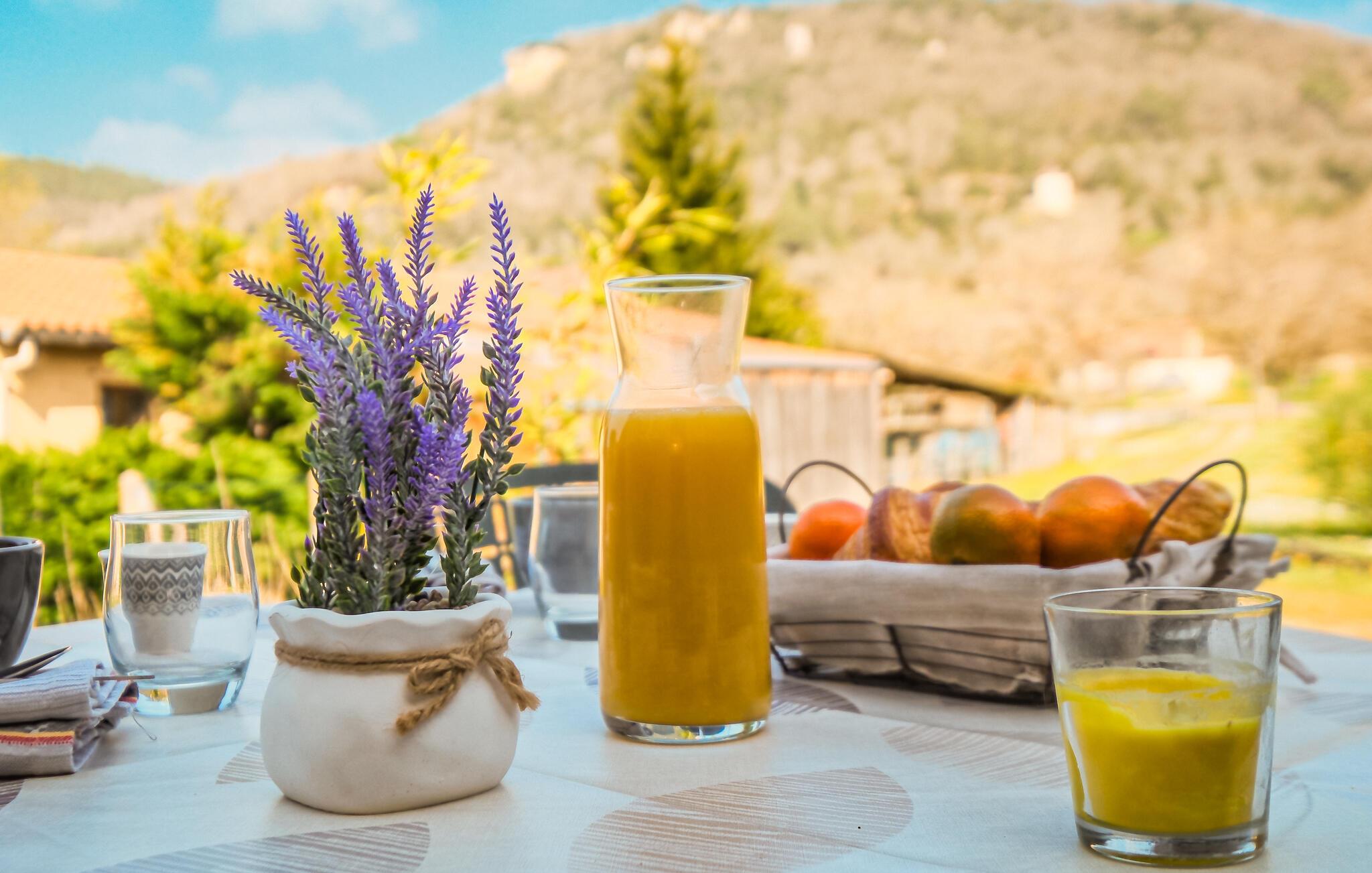 Begynd dagene med en solrig morgenmad på den åbne terrasse. Lad børnene lege i den indhegnede have – måske med familiens hund – og tænd op i grillen for at nyde den fredfyldte atmosfære med vin og stearinlys.