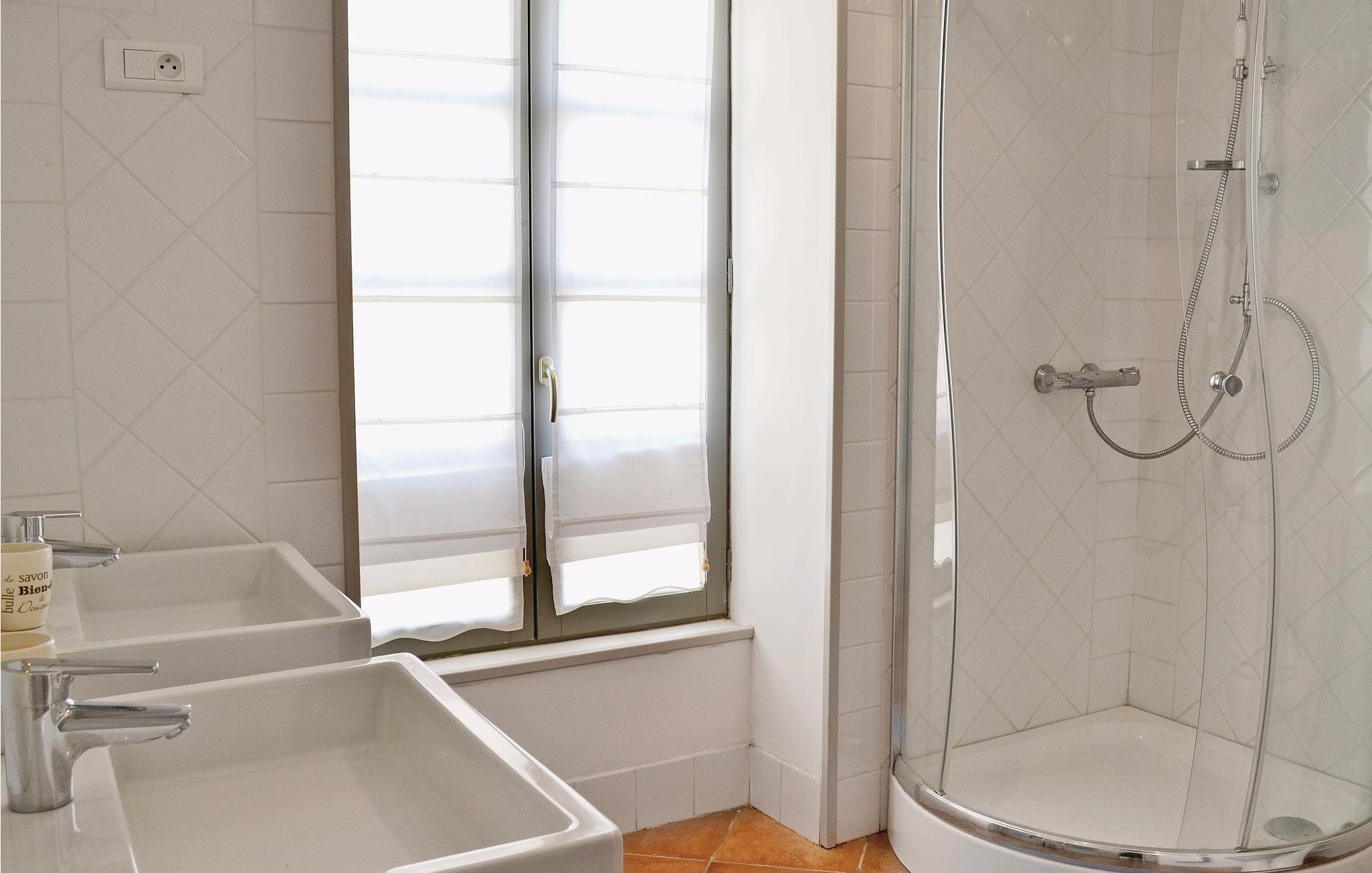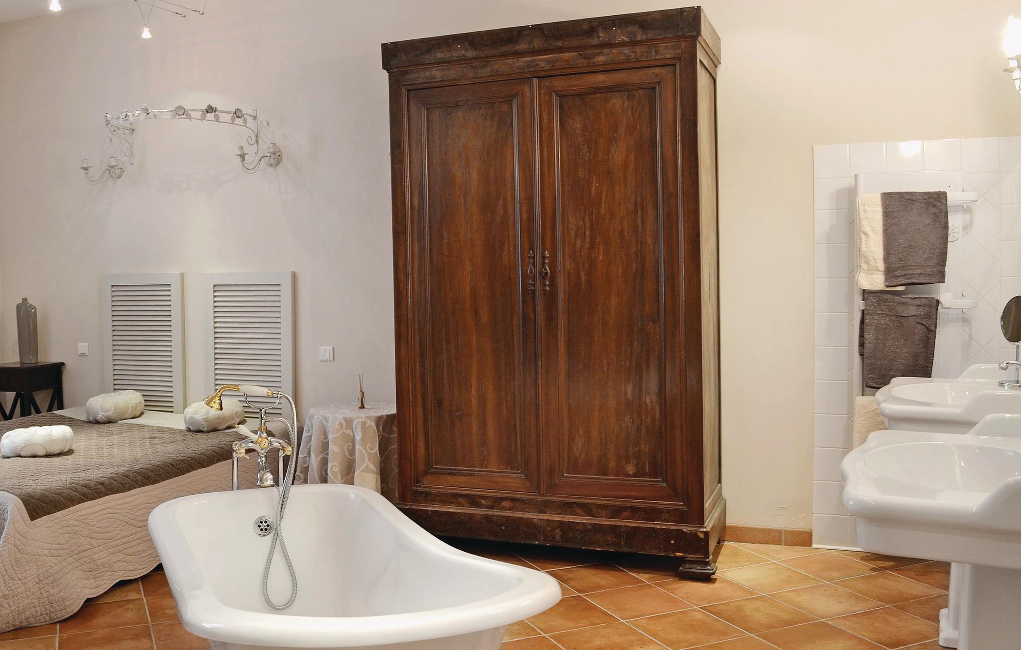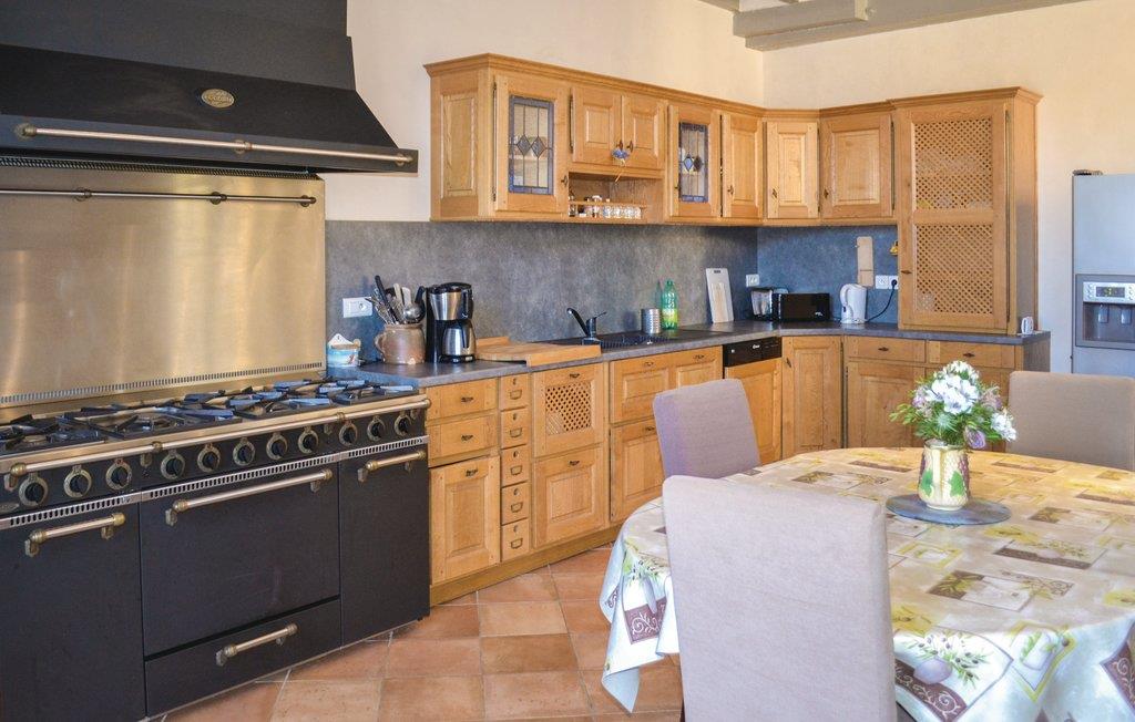 En lille vandresti løber forbi den lukkede gård, som blandt andet tæller en pool samt en terrasse med hundrede år gamle lindetræer, hvis skygge er skøn at sidde i på varme dage. I huset er der brændeovn og en sauna, og til hvert soveværelse hører eget badeværelse med wc.