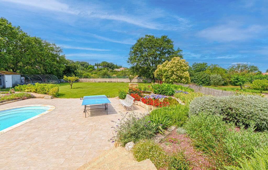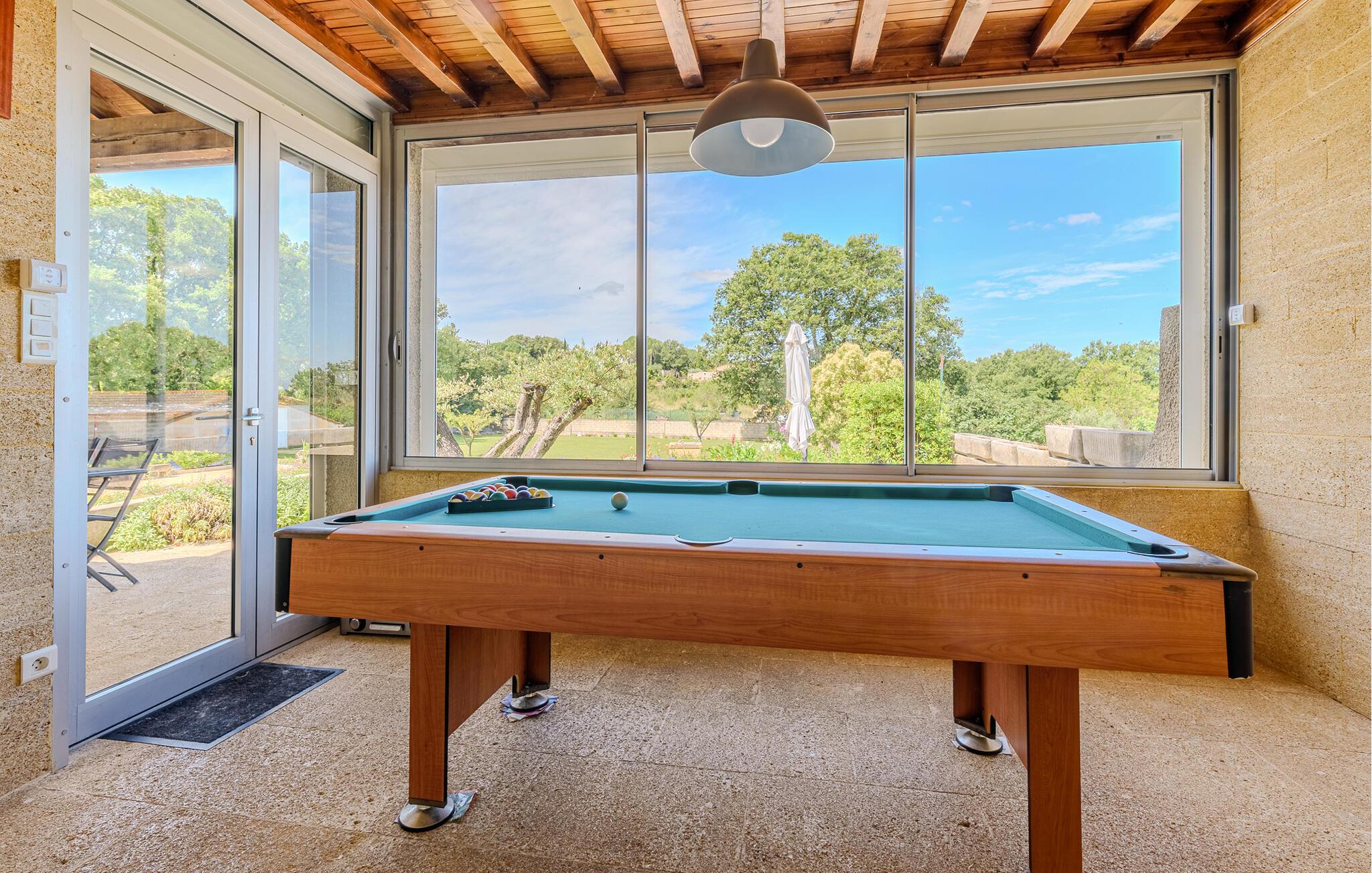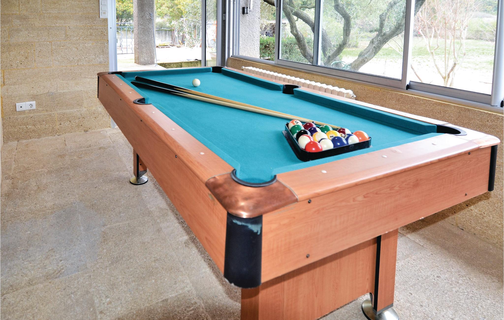 Der er 19 km til Nîmes og 10 km Uzès samt 10 km til en dejlig flod med bademuligheder. Terrassen vender ud mod naturen, og på den lille veranda sørger billardbordet for underholdning i løbet af ferien. Køkkenet og badeværelset er moderne og praktisk indrettede.
