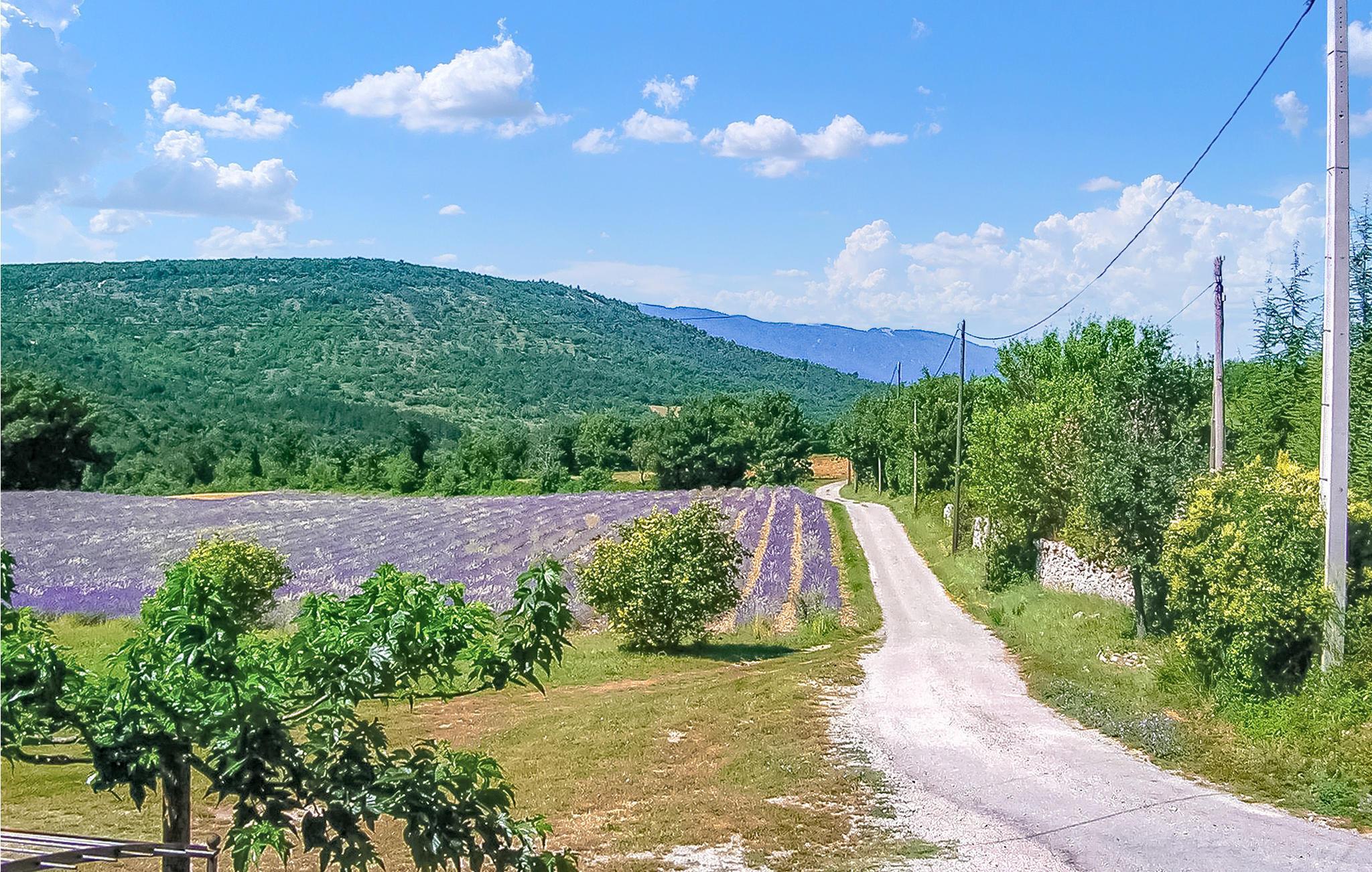 Sainte Croix-à-Lauze er en lillebitte landsby, 20 km sydvest for Forcalquier, på kanten af Parc Règional du Luberon. Denne bolig, der er bygget sammen med et andet hus, ligger 1,5 km uden for landsbyen, midt blandt marker. Her har I total frihed, da I ikke har andre naboer end den flinke, ældre ejer og hendes søn. Ejerens private grund er 20 ha stor! I råder over en oval, privat swimmingpool i nærheden af lejligheden, med overdækket terrasse. Fra terrassen kan I nyde den vide udsigt over bakkerne og lavendelmarkerne. Det høje loft sørger for at lejligheden føles ekstra rummelig. Nyd godt af den nære fjernvandringsrute GR4.