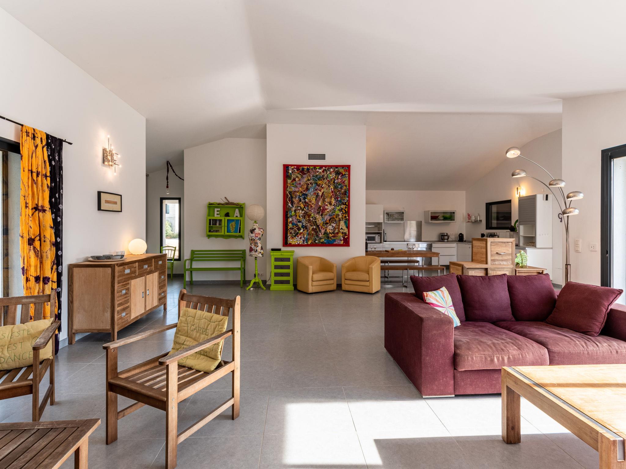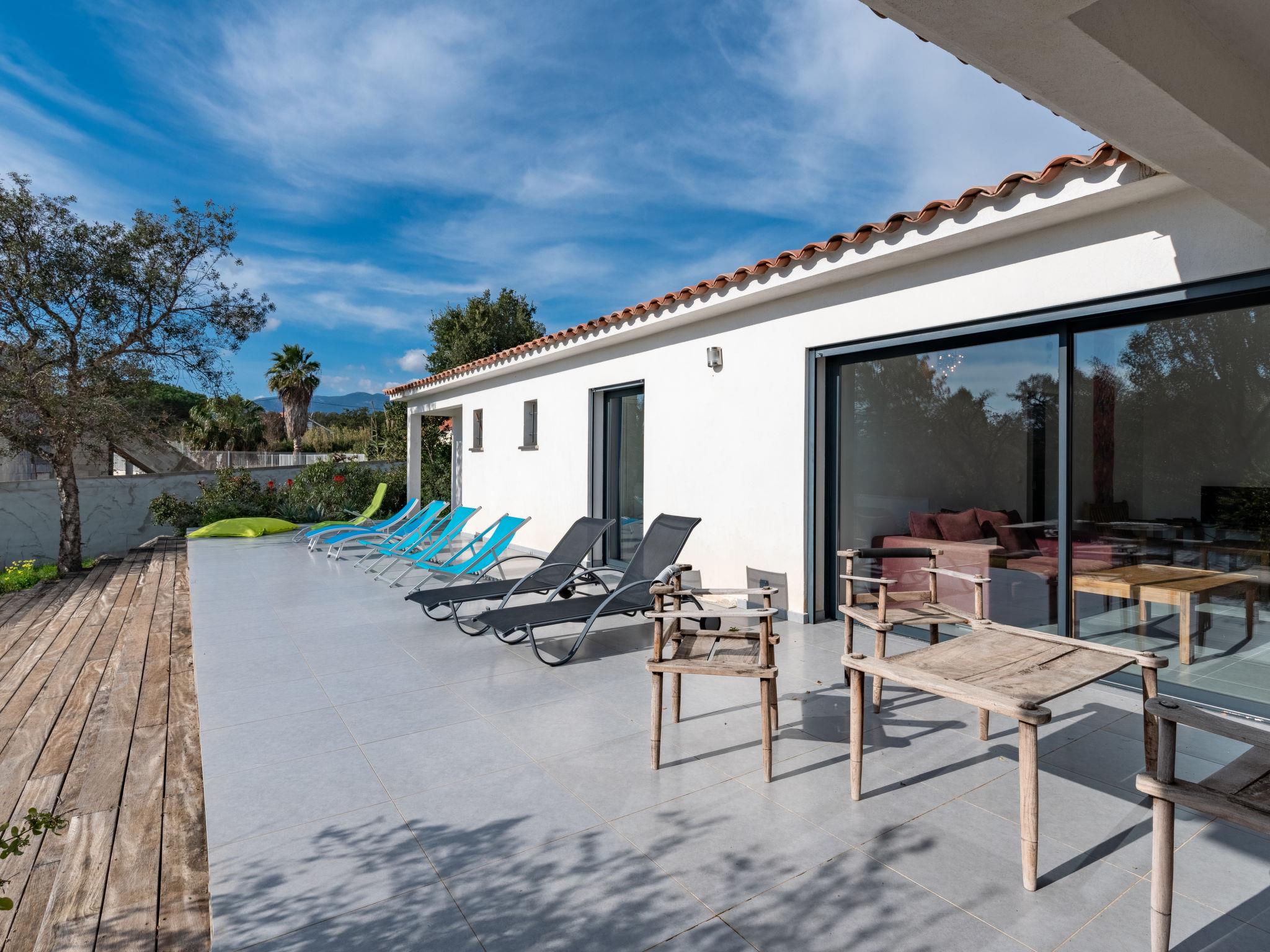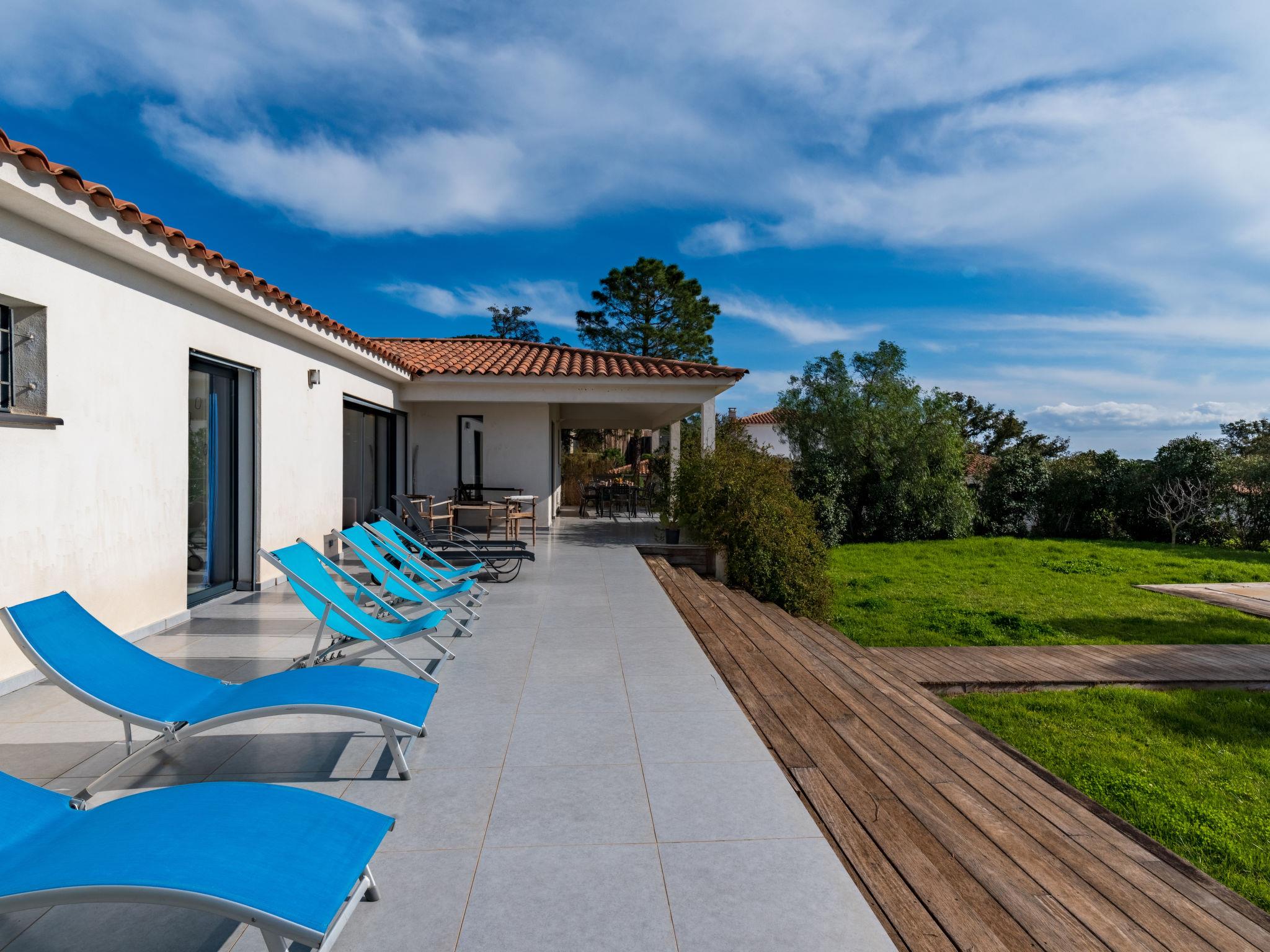"Villa Fautea", 5-room villa 150 m2. Spacious, comfortable furnishings: living room with separate WC and TV (flat screen). Exit to the terrace. 3 rooms with panoramic window, each room with 1 double bed (160 cm, length 190 cm), bath/shower. Exit to the terrace. 1 room with 1 double bed and bath/WC. Exit to the terrace. Open kitchen (oven, dishwasher, 4 induction hot plates, kettle, microwave, electric coffee machine) with dining table. Exit to the terrace. Electric heating, air-conditioning. Large terrace 120 m2, east facing position. Terrace furniture, barbecue, deck chairs (6). Facilities: washing machine, dryer. Internet (WiFi, free). Please note: non-smoking house. Smoke alarm. Offer by a private individual according to Art. 155, IV of CGI.