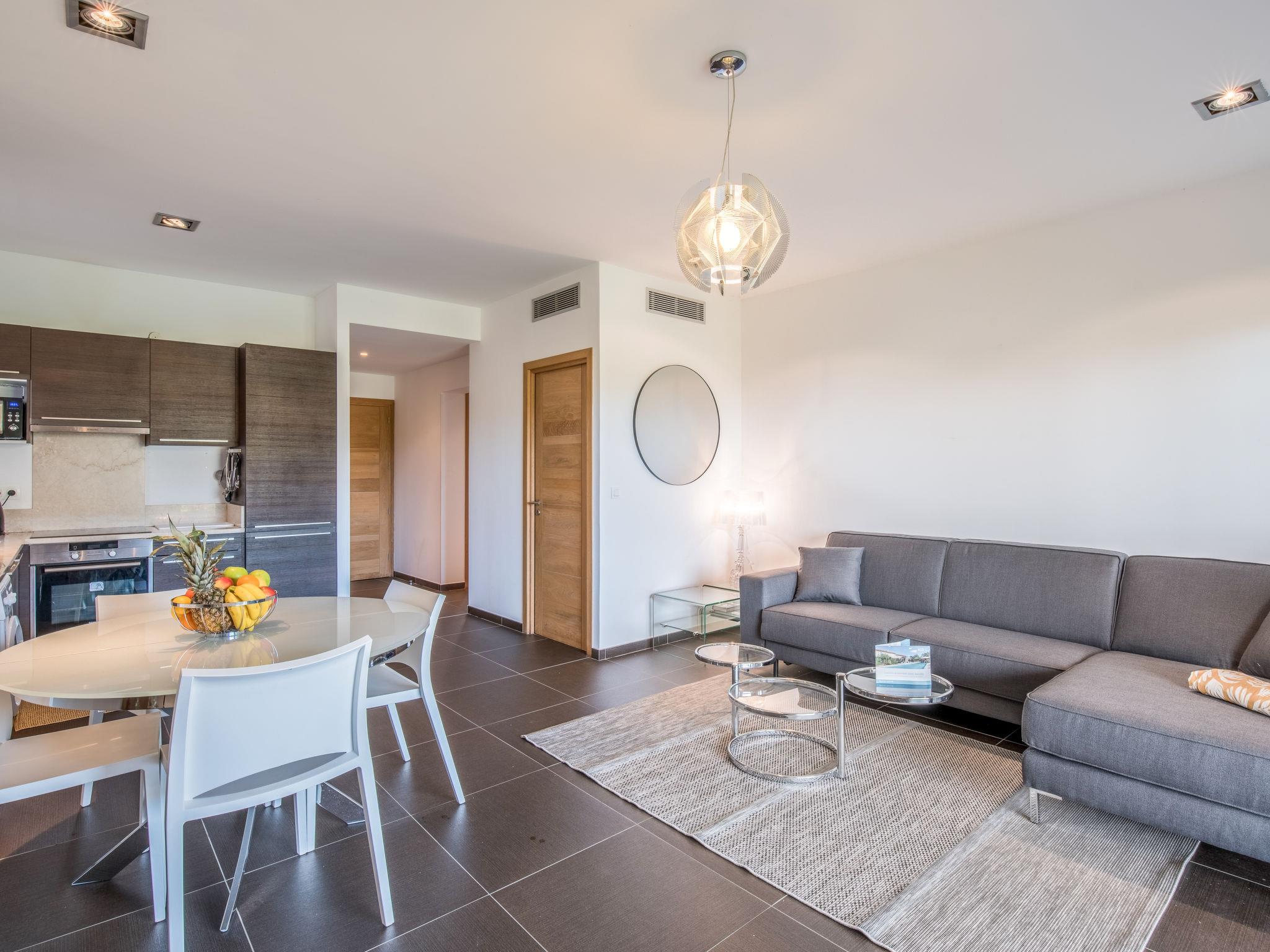 3-room apartment 77 m2 on 1st floor. Comfortable and cosy furnishings: living/dining room with 1 double sofabed (140 cm, length 200 cm), TV (flat screen). Exit to the terrace. 1 room with 1 french bed (160 cm, length 200 cm), shower/WC. Exit to the terrace. 1 room with 2 beds (90 cm, length 190 cm). Exit to the balcony. Open kitchen (oven, dishwasher, 3 induction hot plates, toaster, kettle, microwave, freezer, electric coffee machine, Capsules for coffee machine (Nespresso et filtre) extra). Shower, sep. WC. Electric heating, air-conditioning. Large terrace 50 m2. Terrace furniture, deck chairs (2). Partial view of the sea. Facilities: washing machine. Internet (WiFi, free). Parking. Please note: suitable for families. Non-smokers only. Maximum 1 pet/ dog allowed. Smoke alarm, no lift.