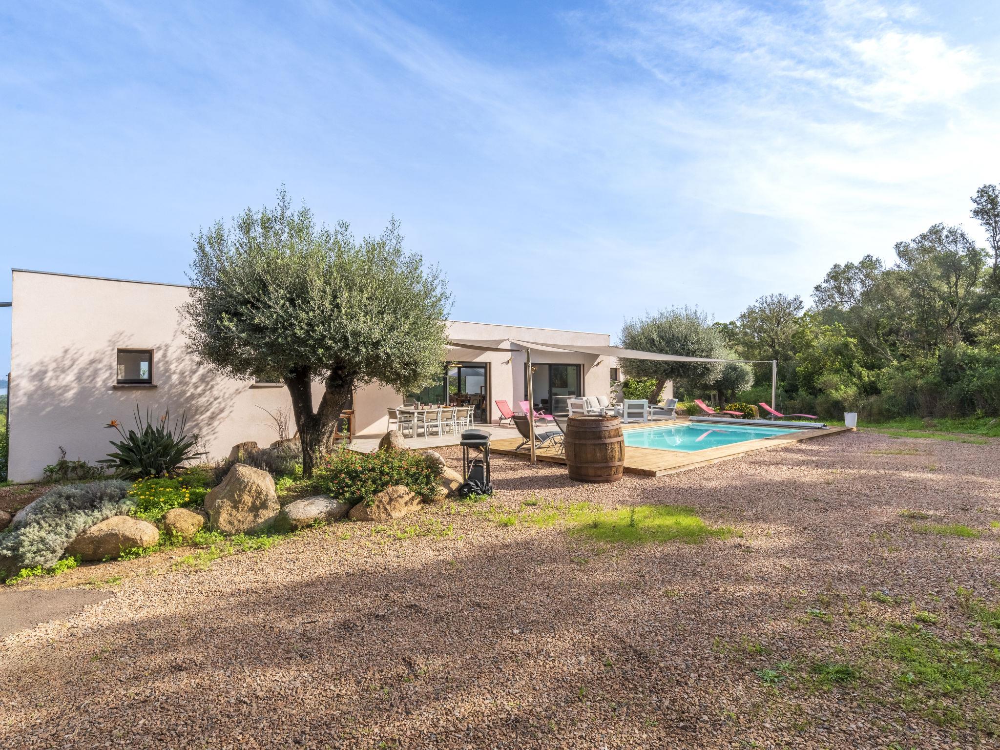 Cirindinu: Modern, beautiful villa "Villa Lamas", built in 2022. 3.5 km from the beach. Private: well-kept terraced garden (fenced), swimming pool angular (8 x 4 m, depth 150 - 150 cm, seasonal availability: 01.Jun. - 01.Sep.). Outdoor shower, terrace, garden furniture, barbecue house, parking (for 3 cars). Supermarket 8 km, restaurant 2 km, bus stop 4.4 km, sandy beach "Pinarellu" 3.5 km. Marina 3 km. Nearby attractions: Plage de Saint Cyprien 4 km, Plage de Pinarellu 3.5 km, Plage de Palombaggia 24 km, Plage de Santa Giulia 21 km, Golf de Lezza 21 km, Port de Porto-Vecchio 14 km. Well-known lakes can easily be reached: Lac de l'Ospedale 34 km. Hiking paths: Les aiguilles de Bavella 58 km. Please note: car recommended. Object suitable for 8 adults.