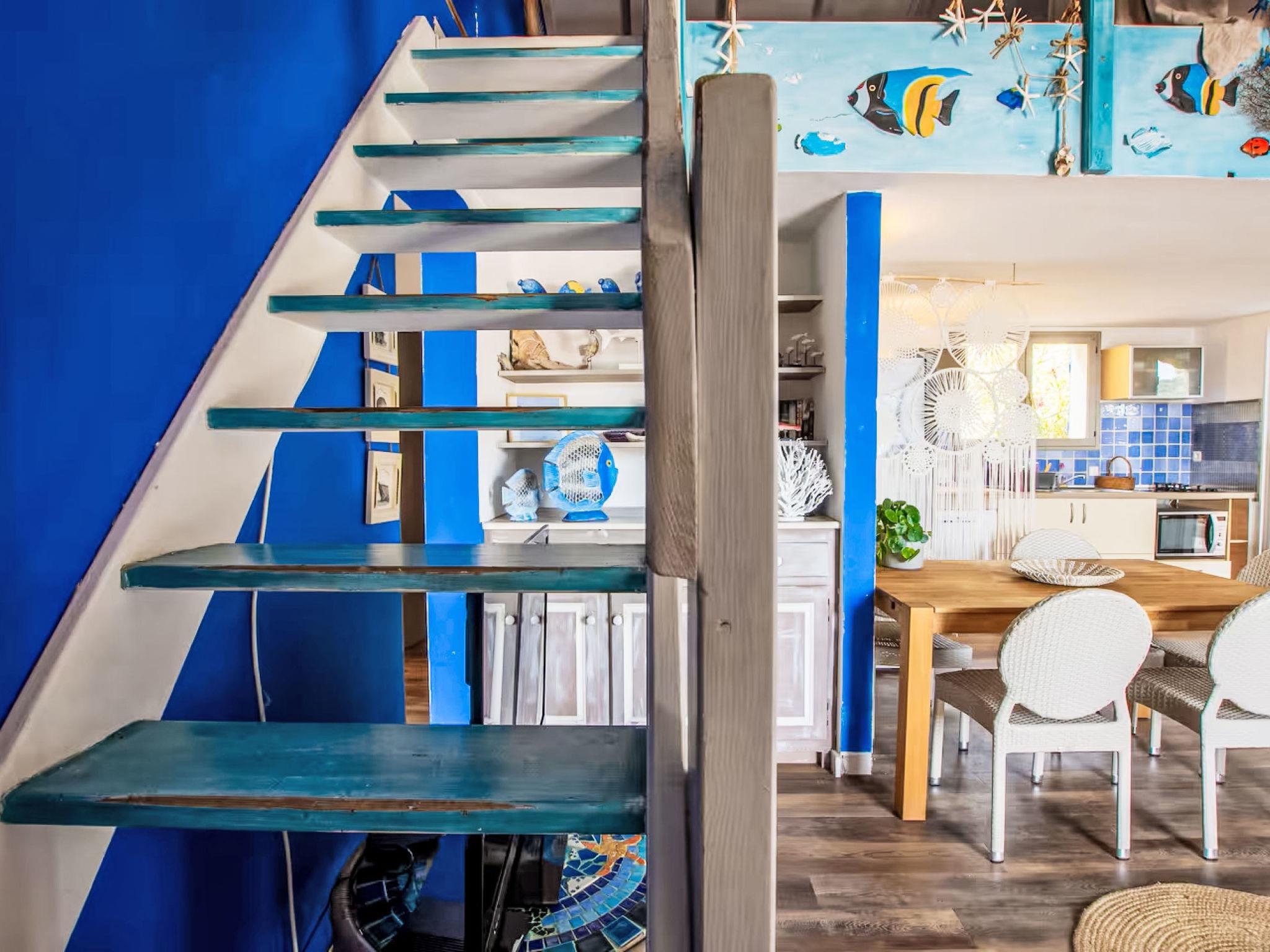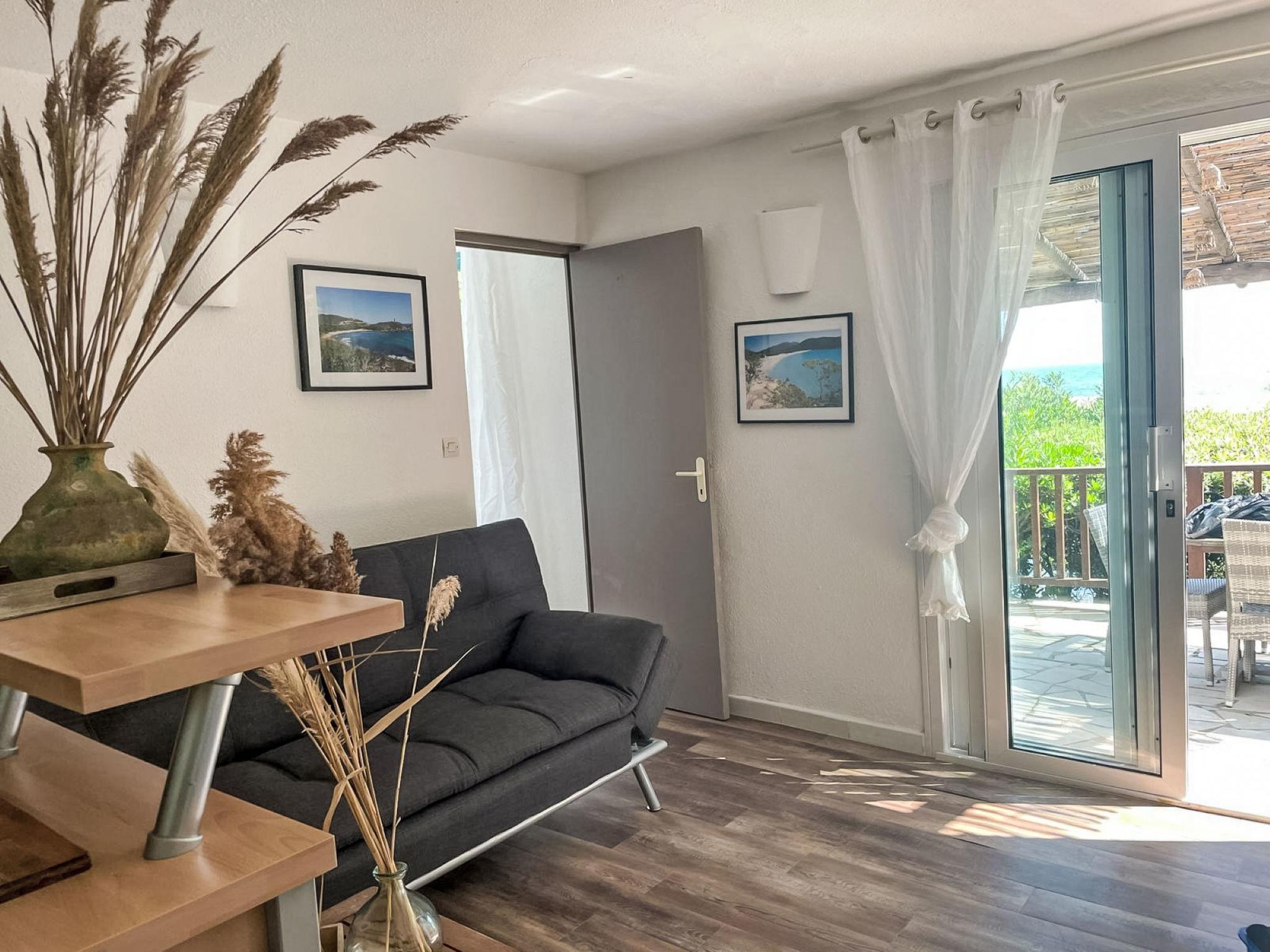 2-family house "Casa Blue". In the district of Olmucciu, 30 m from the sea, 30 m from the beach, direct access to the beach. Private: property (fenced), parking at the house. Supermarket 6 km, restaurant 50 m, bakery 6 km, bus stop 6 km, sandy beach "Plage des Americains" 30 m. Sailing school 8 km. Nearby attractions: Plage des Américains 30 m, Plage de Pinarellu 8 km, Porto-Vecchio 21 km, Bonifacio 49 km. Hiking paths: Piscine Cavu 12 km, Aiguilles de Bavella 59 km. Please note: car recommended.