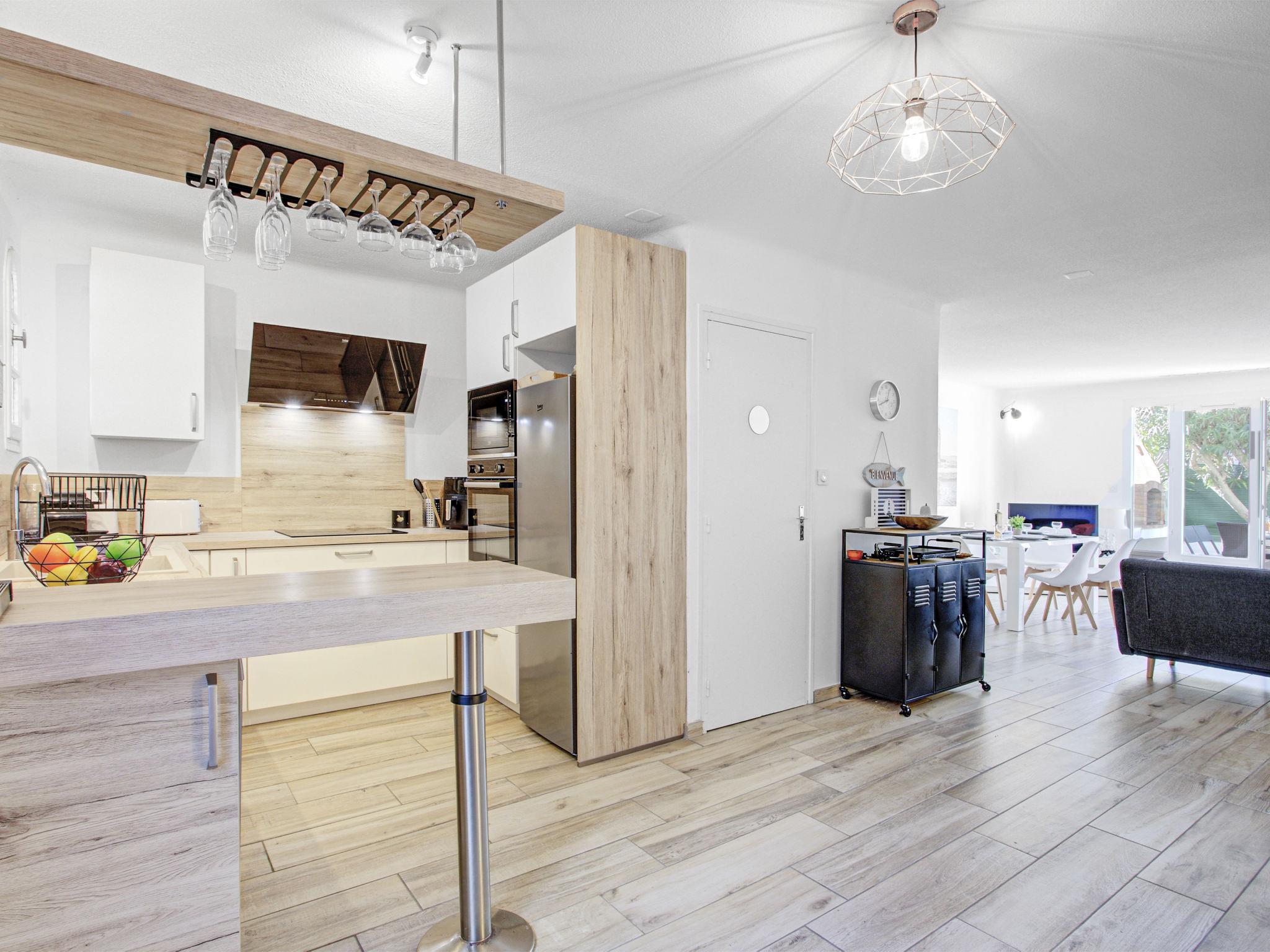 Sainte Marie la mer: Terraced house "Les Moineaux", 2 storeys. In the centre of Sainte Marie Plage, excellent location: right in the centre but still quiet, 200 m from the sea, 200 m from the beach. Private: outdoor shower, terrace (25 m2), garden furniture, barbecue, parking. Shop, grocery, supermarket 300 m, shopping centre 1 km, restaurant 200 m, bakery 300 m, bus stop "albatros" 90 m, railway station "Perpignan" 15 km, sandy beach "Plage des Epis" 200 m, diving center 20 km, outdoor swimming pool 8 km, indoor swimming pool 8 km. Sports harbour 2 km, golf course (18 hole) 15 km, riding stable 1 km. Nearby attractions: Canet Plage 8 km, Collioure 30 km, Barcelone 200 km, Perpiganan 15 km, Espagne 35 km, Andorre 180 km. Well-known lakes can easily be reached: Villeneuve de la Raho 20 km, St Jean Pla de Corts 40 km, Gorges du Gouleyrous 42 km. Hiking paths: St Martin du Canigou 70 km, Massif du Canigou 77 km, Lac des Bouillouses 105 km. The keys‘ handover takes place by the agency INTERHOME in Canet, 8 km.