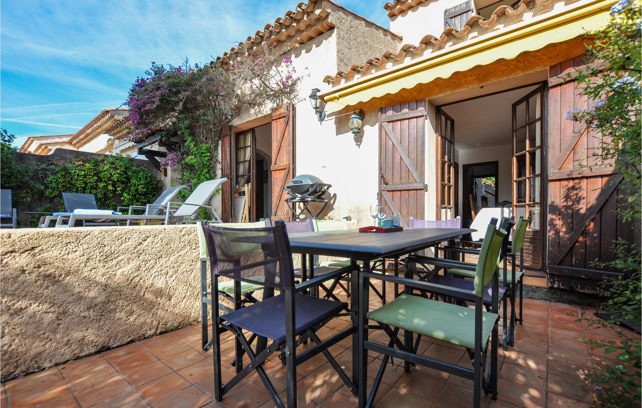 Dette meget stille dobbelthus er ideelt beliggende på en bakke med udsigt over Sainte Maxime, 15 km fra St. Tropez.