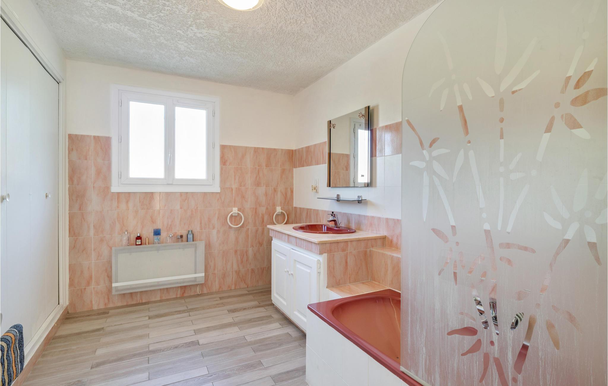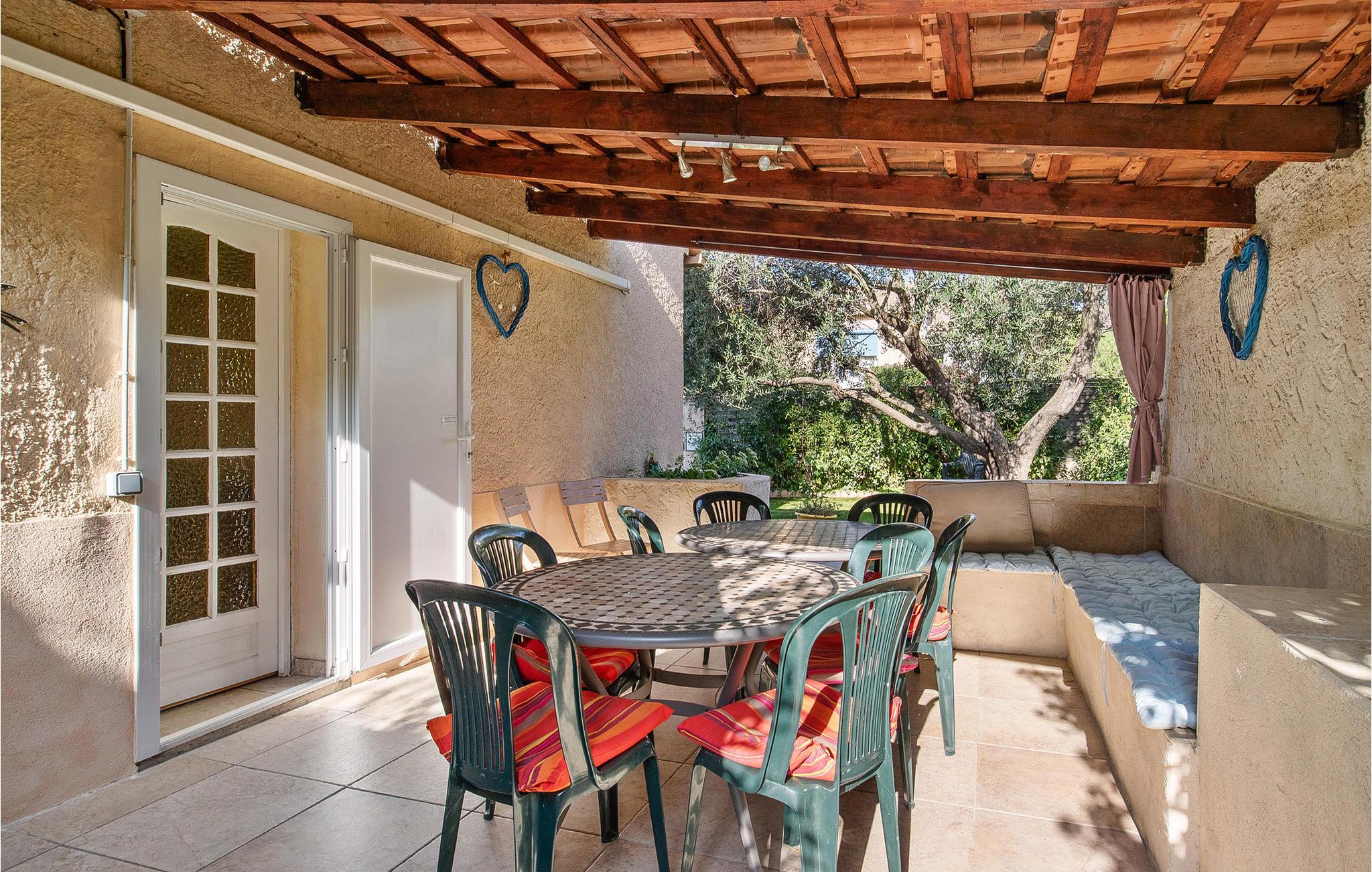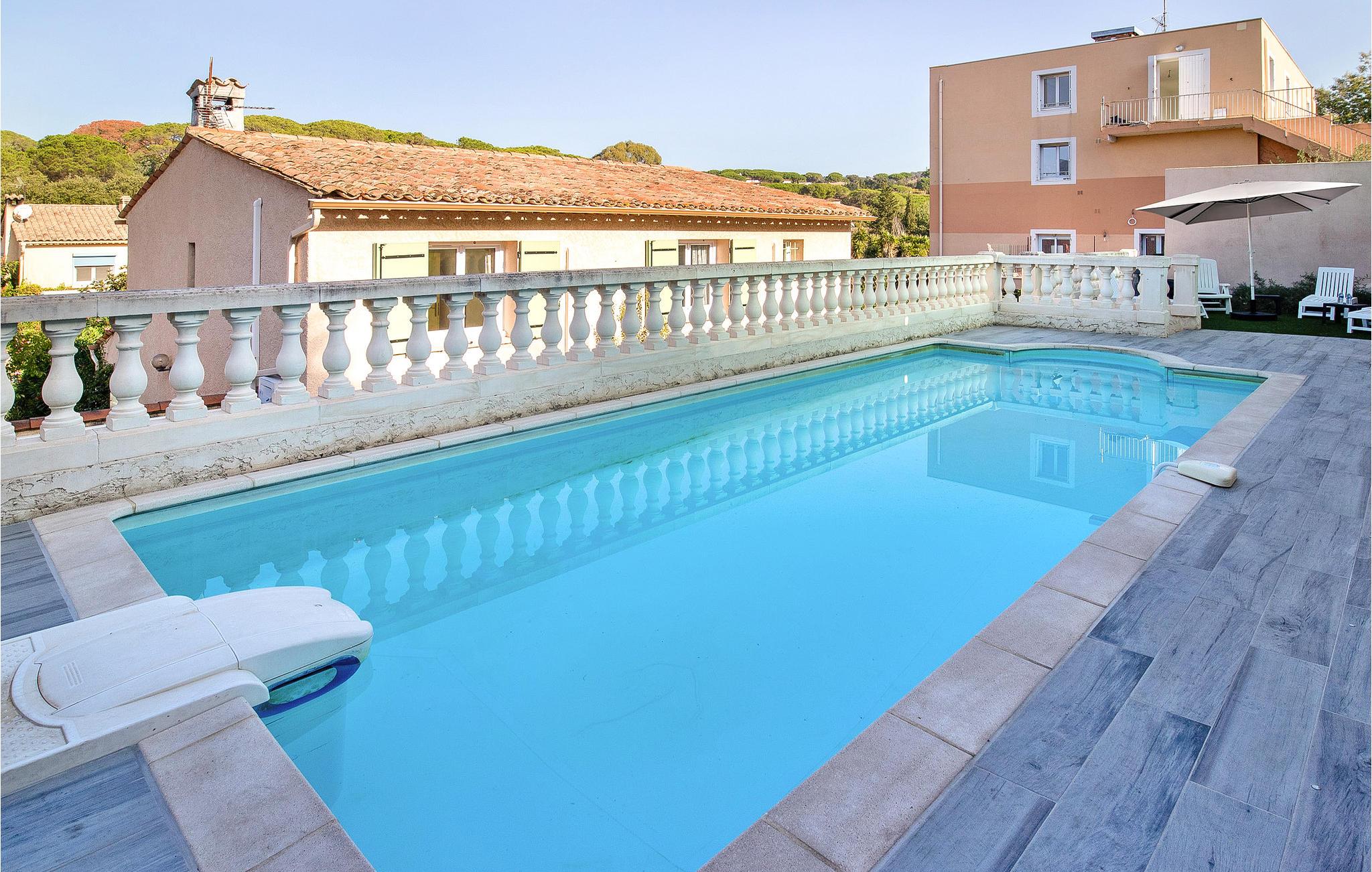 Dette skønne feriehus i Provences varme farver har egen swimmingpool og ligger i et boligområde i Sainte-Maxime, kun en km fra de nærmeste strande ved Middelhavet. Husets store rum, samt den lyse og moderne indretning er også udstyret med klimaanlæg som især er dejlig når sommerens varme for alvor lægger sig. I huset er der god plads til ti feriegæster, der kan se frem til en stor have og en 20 m² stor overdækket terrasse hvor I kan hygge jer mens maden bliver færdig på grillen. Der er 17 km til Saint-Tropez som er legeplads for jetsettere fra hele verden med en charmerende lille havn og den berømte strand Pampelonne. Besøg byens citadel med museum for søfarts- og lokalhistorie og gå en tur på Cap Camarat. Gå heller ikke glip af museet Musée de la Tour Carrée eller hjemstavnsmusset i Sainte-Maxime. Her er noget at se og opleve og aktivitetsmuligheder for alle: golf, ridning, tennis eller udflugter til fods eller på mountain-bike. Tag ungerne med en tur i badelandet Aqualand, som absolut ikke kun er for børn. Husets terrasse ligger lidt forskudt og der er adgang til poolen via nogle trin.