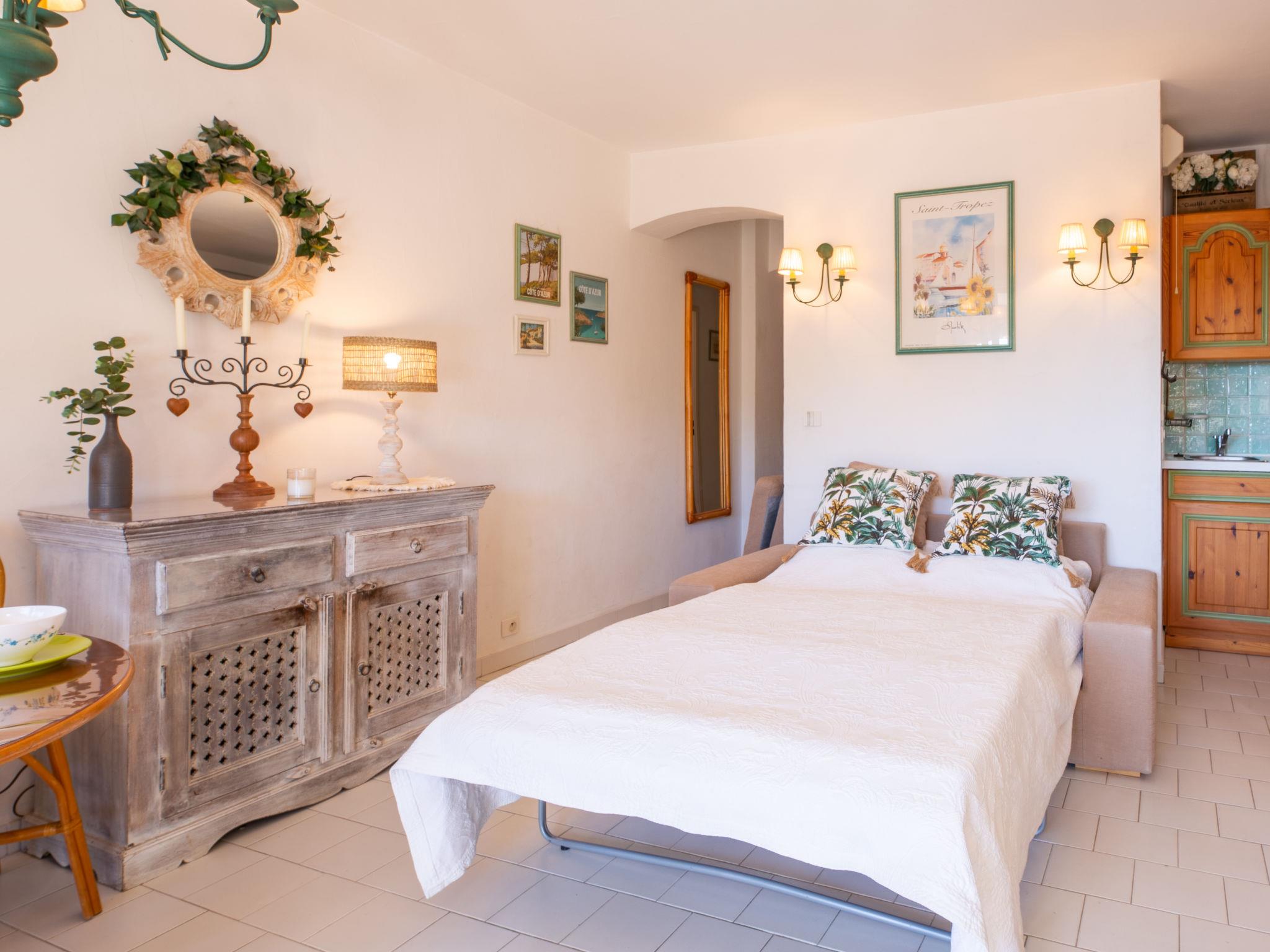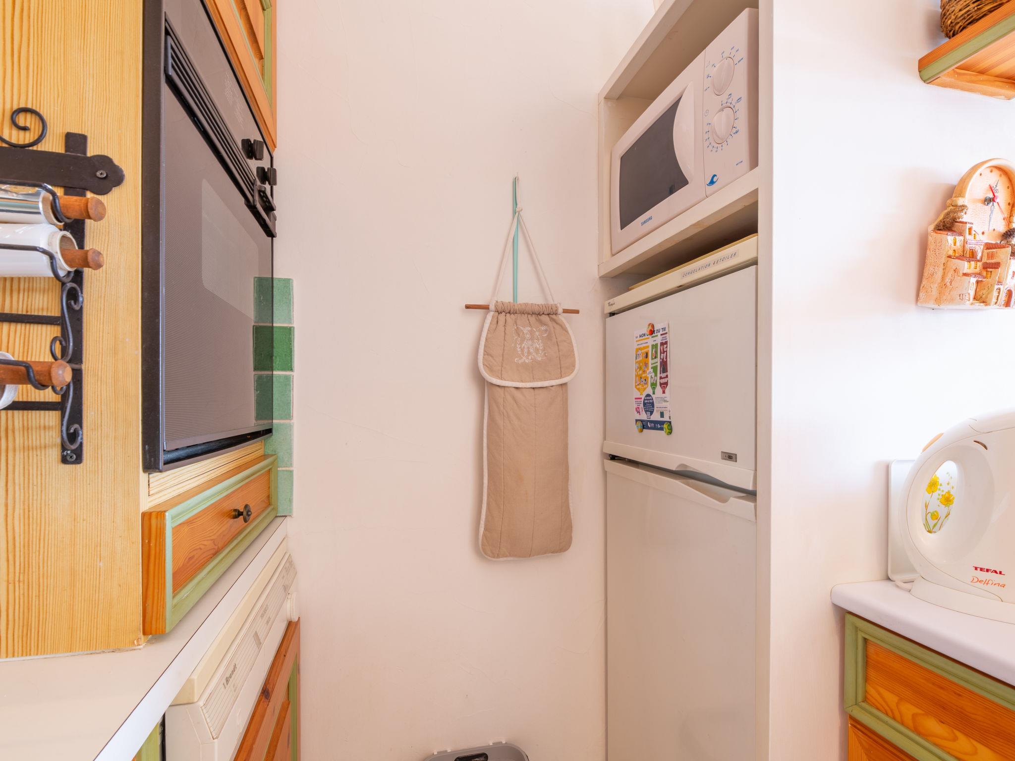 2-room apartment 35 m2 on 1st floor, south facing position. Beautiful furnishings: entrance hall with separate WC. Living/dining room with 1 double sofabed (1 x 140 cm, length 190 cm), TV (flat screen). Exit to the balcony. 1 room with 2 beds (80 cm, length 200 cm). Small, open kitchen (oven, dishwasher, 2 ceramic glass hob hotplates, toaster, kettle, microwave, freezer, electric coffee machine). Shower. Air-conditioning. Balcony 10 m2, south facing position. Balcony furniture. Distant view of the sea. Facilities: iron, hair dryer. Internet (WiFi, free). Parking. Please note: non-smokers only. Smoke alarm, no lift. The upper floor of the apartment is not accessible and closed by a hatch at the top of the stairs. Offer by a private individual according to Art. 155, IV of CGI. 83115005780HT
