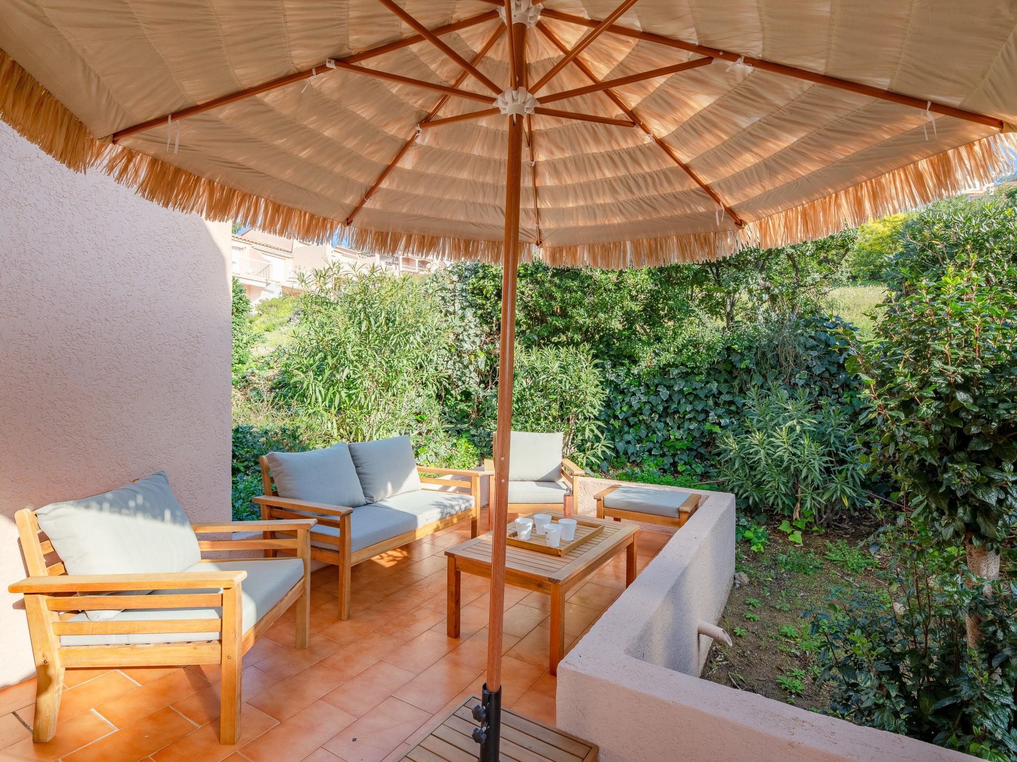 Residence "Les Coteaux de la Nartelle". Outside the resort, 5 km from the centre of Ste Maxime, in a sunny, elevated position on a slope, 400 m from the sea, 400 m from the beach. For shared use: park 10 ha with plants and trees, swimming pool (6 m diameter, depth 140 - 240 cm, seasonal availability: 01.Jun. - 30.Sep.). Table tennis, boccia. Stepped path to the house. Parking (limited number of spaces). Shop 5 km, supermarket 2.5 km, shopping centre 5 km, restaurant 400 m, bus stop 700 m, railway station "Saint-Raphael TGV" 20 km, sandy beach "Plage des Elephants" 400 m (small), thermal baths "Thalassothérapie Les Issambres" 7 km. Sports harbour 4 km, golf course (18 hole) 5 km, tennis 3 km. Nearby attractions: Aqualand waterpark 6 km, Azur Park attractions 16 km, Saint-Tropez/Ramatuelle 18 km, Port-Grimaud 13 km, Gorges du Verdon 95 km, Navette / shuttle boat St-Tropez 15min 4 km. Hiking paths: Massif des Maures 5 km, Massif de l'Esterel 25 km. Please note: car recommended, no lift. Residence with electric gates. The keys‘ handover takes place by the agency Interhome in Sainte-Maxime, 5 km. Additional accommodations can be booked.