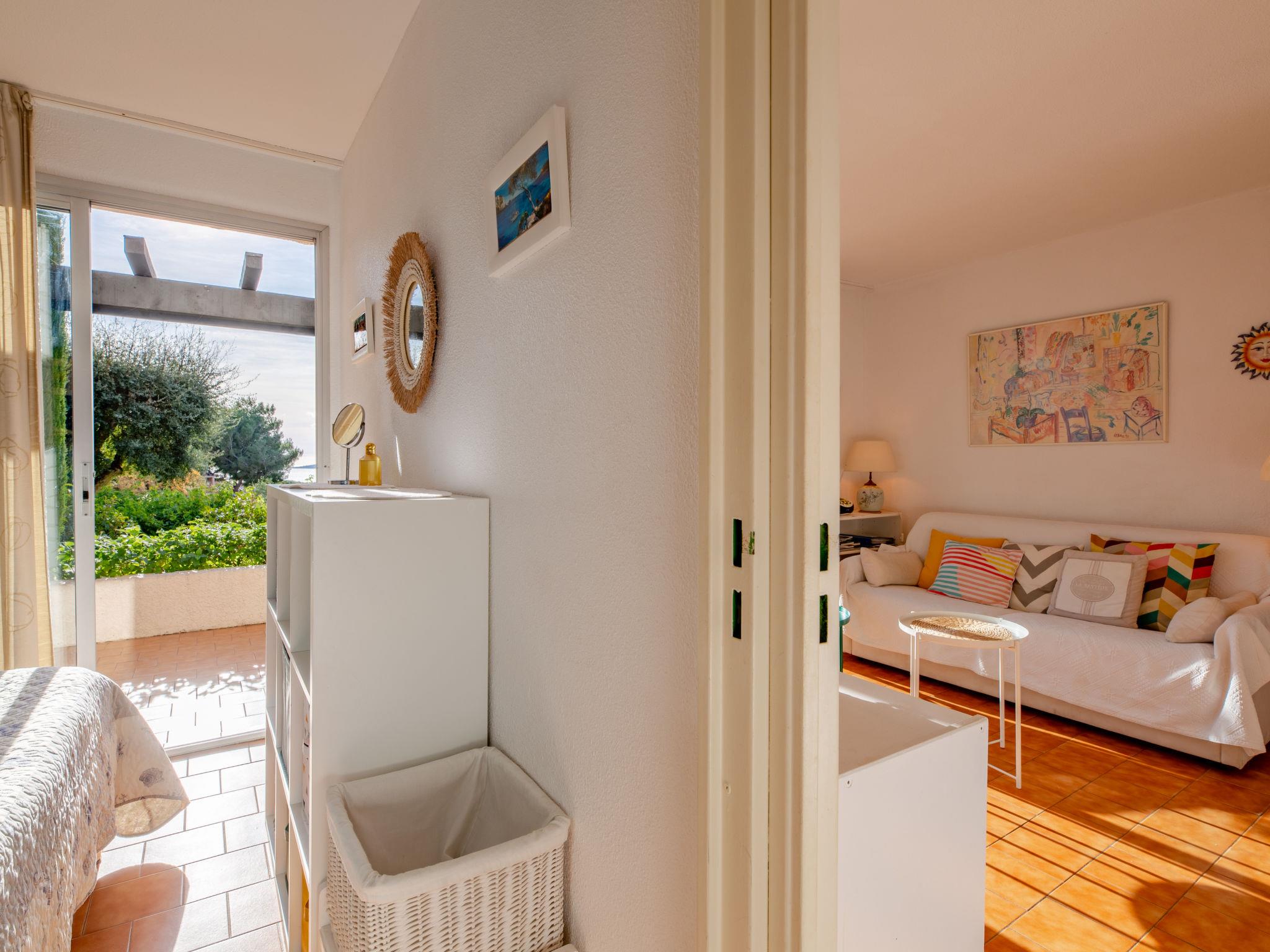 2-room apartment 30 m2, on the upper ground floor, south facing position. Bright, beautiful furnishings: living/dining room with 1 double sofabed (1 x 140 cm, length 190 cm), TV (flat screen). Exit to the terrace, to the patio. 1 room with 1 french bed (1 x 140 cm, length 190 cm). Exit to the terrace, to the patio. Open kitchen (dishwasher, 4 ceramic glass hob hotplates, toaster, kettle, freezer, electric coffee machine, combination microwave). Shower/WC. Electric heating. Terrace 16 m2, south facing position, small patio 20 m2, south facing position. Terrace furniture, deck chairs (2). View of the sea. Facilities: washing machine, iron, hair dryer. Internet (WiFi, extra). Parking. Please note: non-smokers only. Maximum 1 pet/ dog allowed. Smoke alarm. Offer by a private individual according to Art. 155, IV of CGI. 83115001076HT