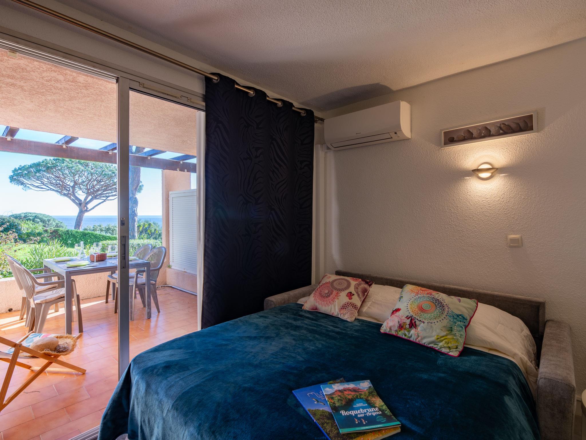 2-room apartment 26 m2 on 1st floor. Simple furnishings: living room with 1 double sofabed (140 cm, length 190 cm), TV (flat screen), air conditioning. Exit to the terrace. 1 small room with 1 french bed (140 cm, length 190 cm). Open kitchen (oven, dishwasher, 3 induction hot plates, toaster, kettle, microwave, electric coffee machine). Shower/WC. Electric heating. Terrace 10 m2, south facing position. Beautiful view of the sea. Facilities: washing machine. Internet (WiFi, free). Parking. Please note: suitable for families. Non-smokers only. Maximum 1 pet/ dog allowed. Smoke alarm. Offer by a private individual according to Art. 155, IV of CGI. 83115005195WF