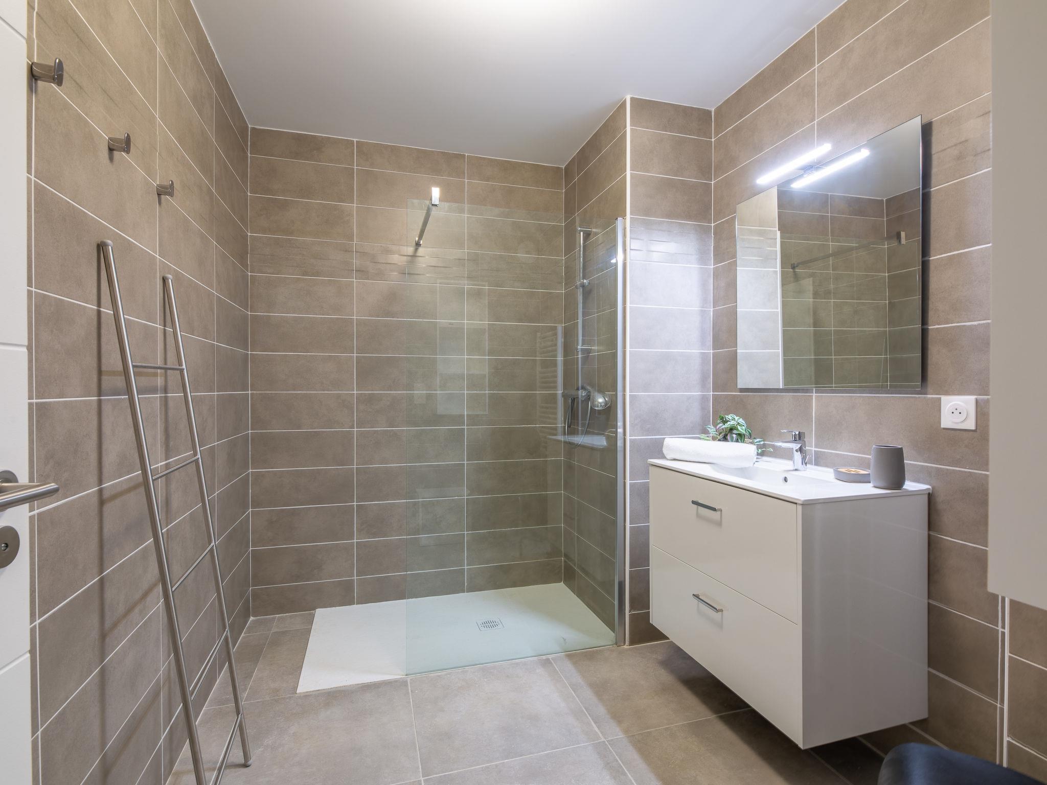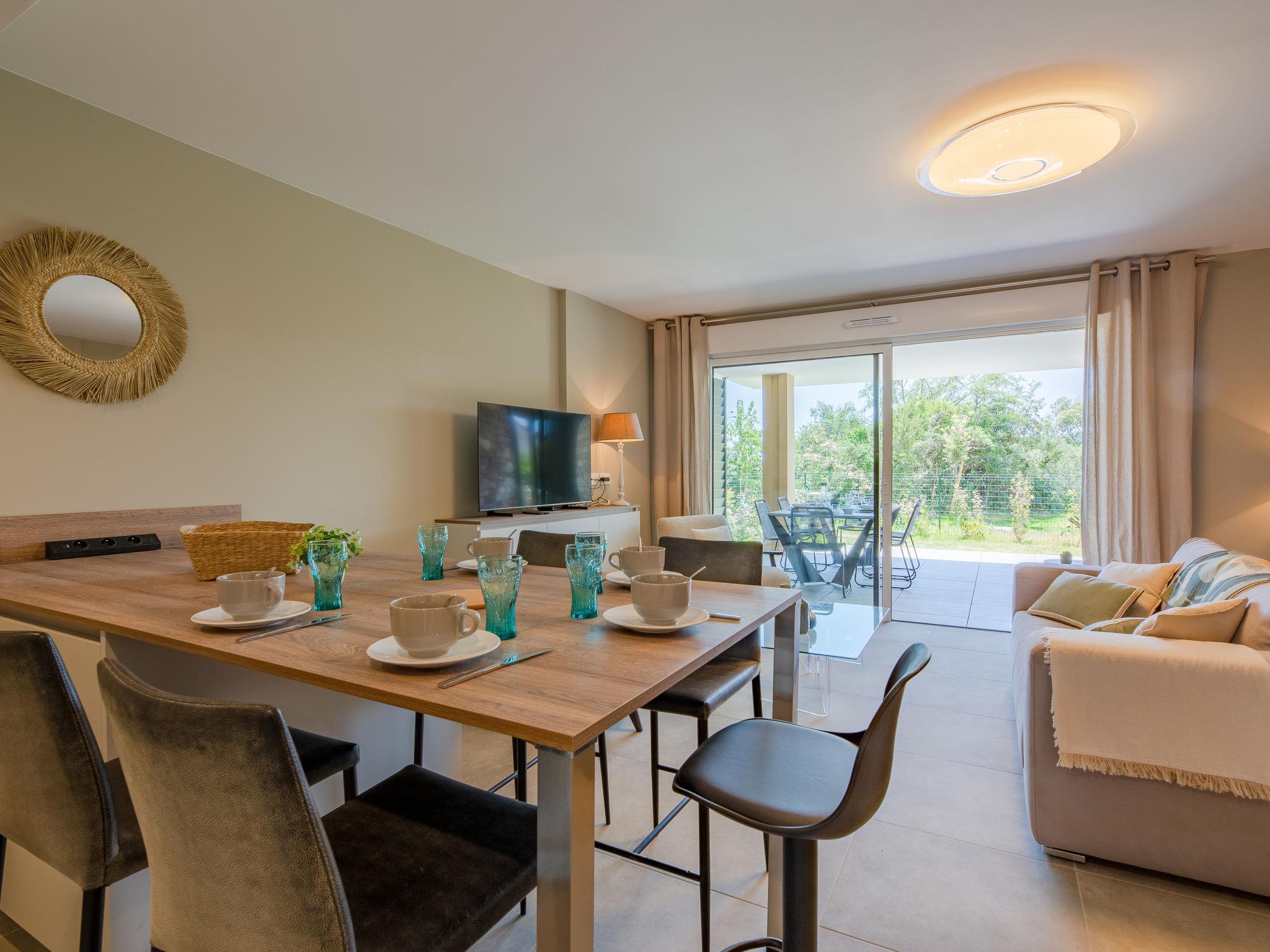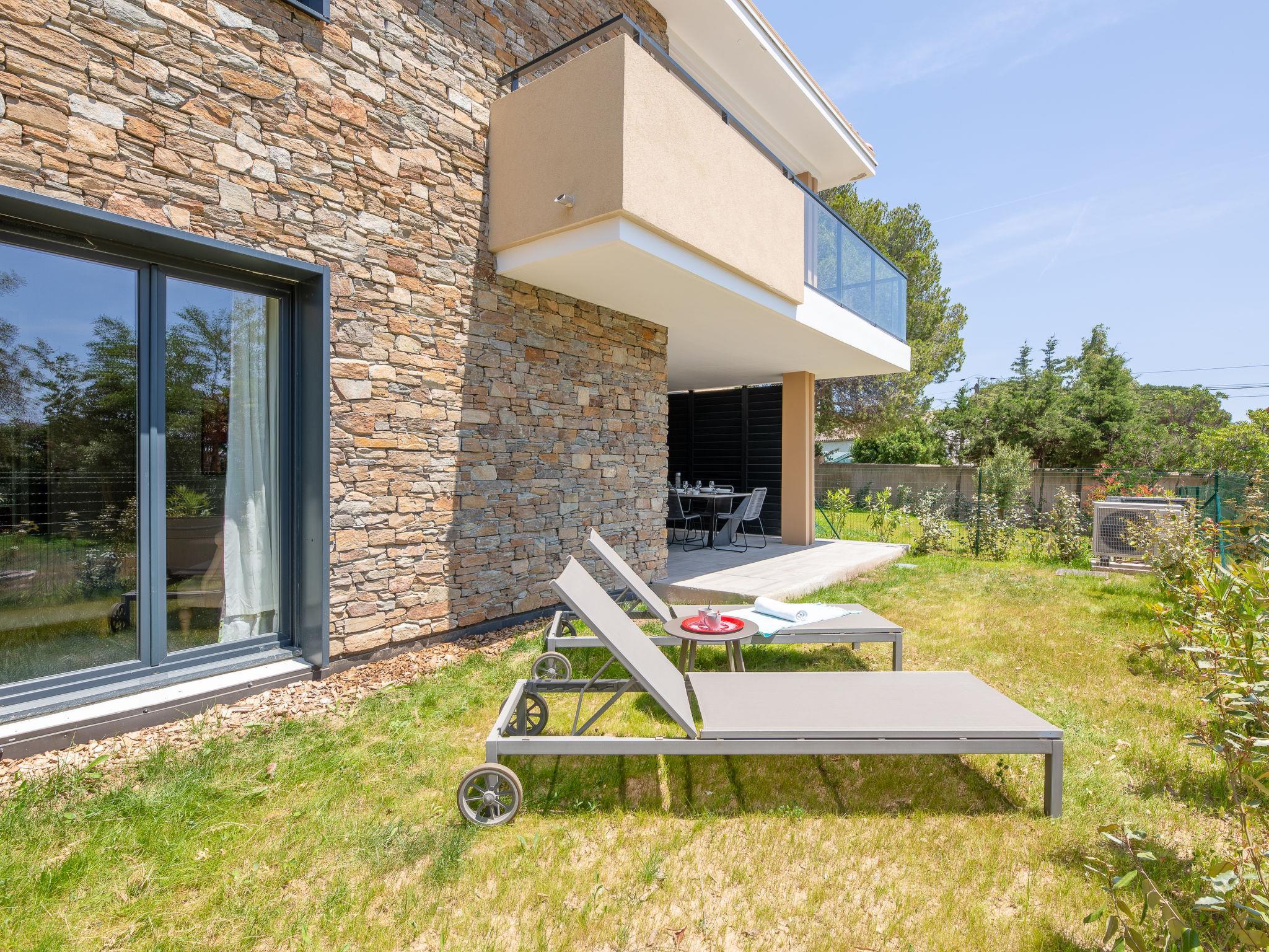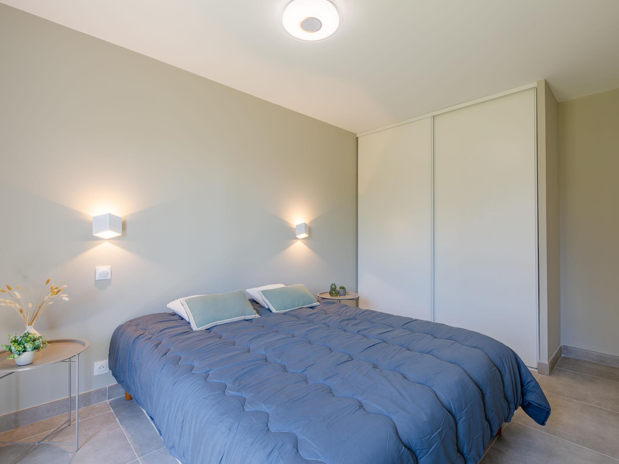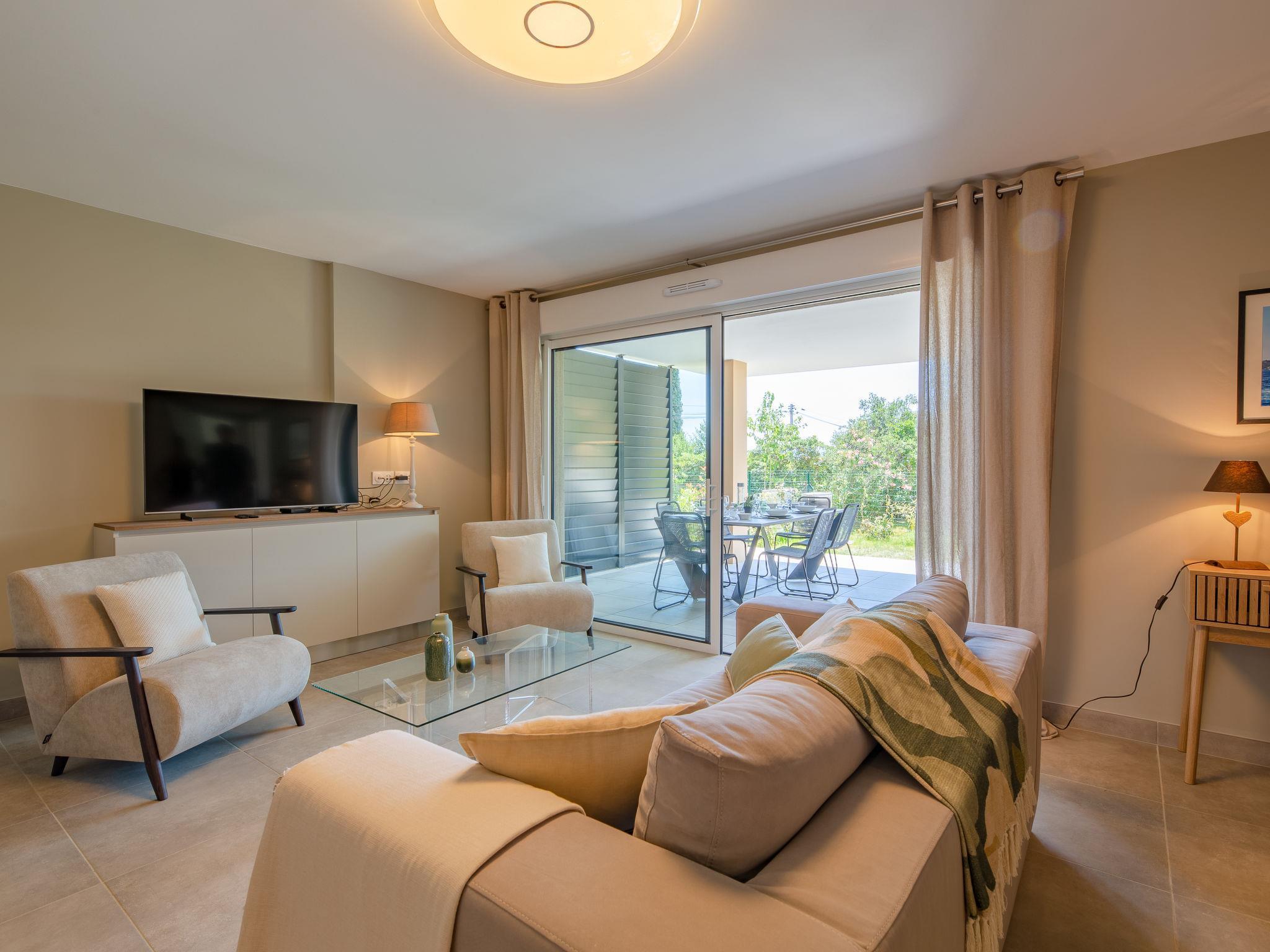 3-room apartment 75 m2, on the ground floor, south-west facing position. Spacious, beautiful and modern furnishings: entrance hall with separate WC. Large living/dining room with 1 sofabed (130 cm, length 190 cm), TV (flat screen). Exit to the terrace, to the patio. 1 room with 1 french bed (1 x 160 cm, length 200 cm). Exit to the garden. 1 room with 1 french bed (1 x 140 cm, length 190 cm). Exit to the terrace. Large, open kitchen (oven, dishwasher, 3 induction hot plates, toaster, kettle, microwave, freezer, electric coffee machine). Shower. Air-conditioning, forced-air heating. Terrace 20 m2, roofed, south-west facing position, patio 40 m2, south-west facing position. Terrace furniture. View of the swimming pool and the garden. Facilities: washing machine, iron, hair dryer. Internet (WiFi, free). Garage space n 28/29, height 190 cm, width 300 cm. Please note: non-smokers only. Maximum 1 pet/ dog allowed. Smoke alarm. Single storey accommodation, accessible by wheelchair or with reduced mobility. Offer by a private individual according to Art. 155, IV of CGI. 83115005166AV