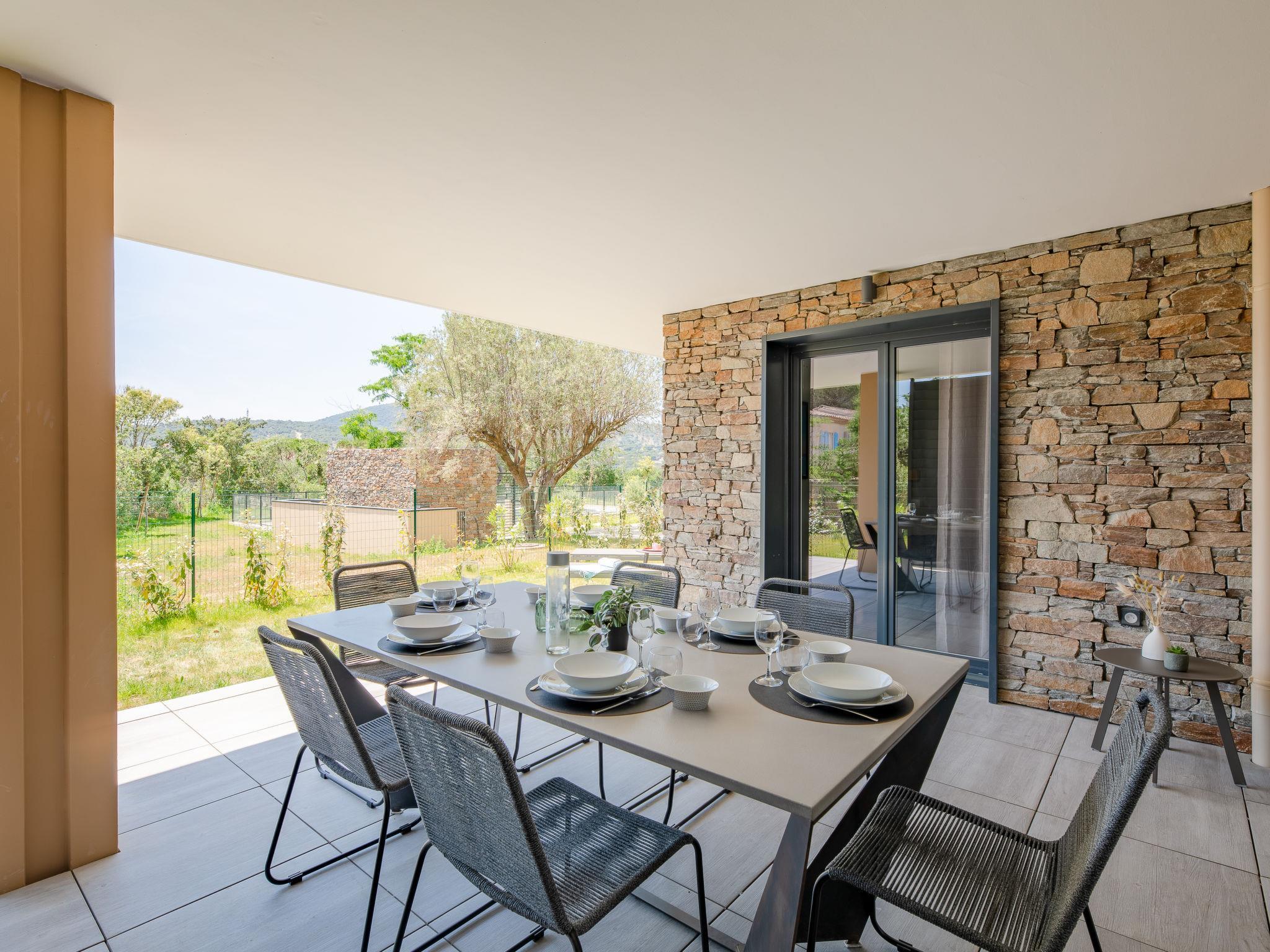 Modern apartment block "Le Clos d'Alice", 2 storeys, built in 2024. 10 apartments in the residence. In the district of Saquèdes, on the outskirts, 1.3 km from the centre, in a quiet, sunny position in the residential district, traffic calmed area, 1.5 km from the sea, 1.5 km from the beach, in the countryside. For shared use: well-kept garden, swimming pool angular fenced (10 x 5 m, depth 180 cm, seasonal availability: 01.Jun. - 30.Sep.). Parking. Grocery 400 m, supermarket 1.8 km, bakery 400 m, 15 minute walk to the centre, bus stop 450 m, sandy beach "centre Ville" 1.5 km, thermal baths "Thalasso Spa des Issambres" 7 km. Sports harbour 1.5 km, golf course (18 hole) 4 km, tennis 3 km. Nearby attractions: Aqualand Waterpark 2 km, Navette/Shuttle boat St Tropez 20min 1.5 km, St Tropez / Ramatuelle 17 km, Port-Grimaud 10 km, Gorges du Verdon 80 km. Hiking paths: Massif des Maures 5 km, Massif de l'Esterel 25 km. Please note: car recommended. Residence with electric gates. The keys‘ handover takes place by the agency Interhome in Sainte Maxime. Neighbourhood highly sensitive to noise. Quietness and good behaviour expected.