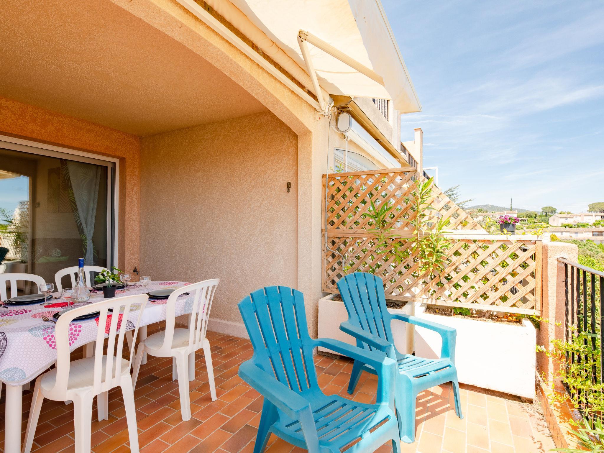 1-room apartment 28 m2, on the ground floor. Beautiful furnishings: living/sleeping room with 1 double sofabed (140 cm, length 190 cm), TV. Exit to the terrace. Kitchenette (2 hot plates, mini-oven, toaster, kettle, electric coffee machine). Shower/WC. Electric heating. Terrace 15 m2, south facing position. Terrace furniture. View of the sea. Facilities: Internet (WiFi, extra). Parking. Please note: maximum 1 pet/ dog allowed. TV only FR. Smoke alarm. 83115003023WR