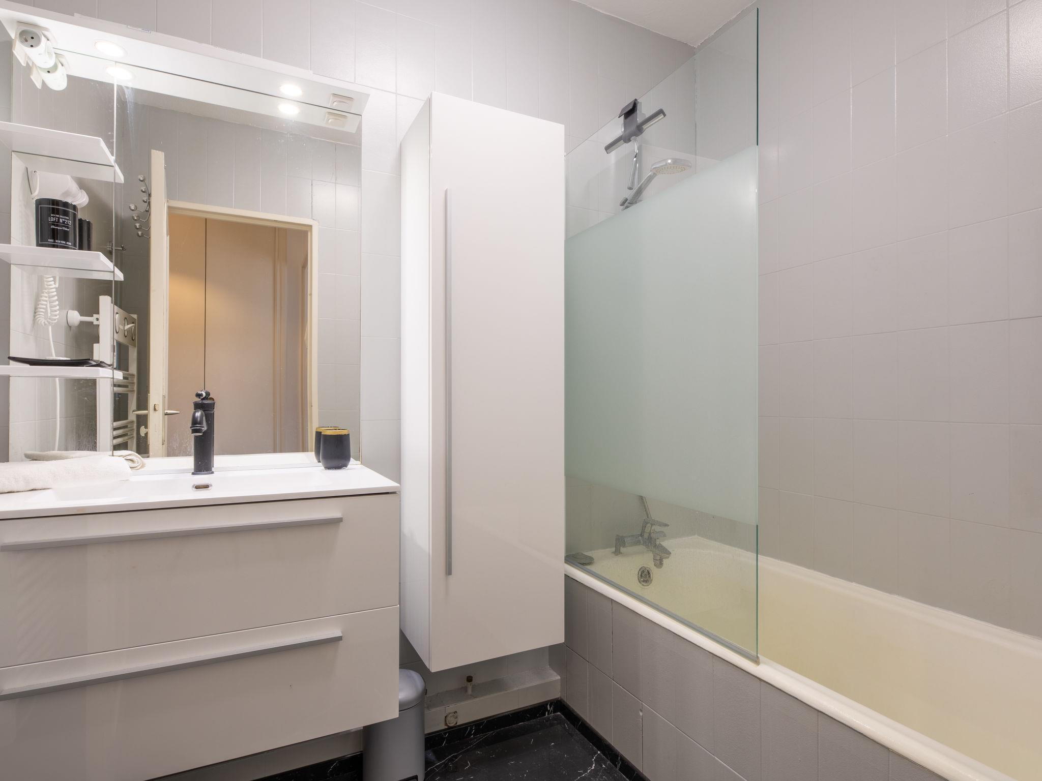 1-room studio 34 m2 on 3rd floor, west facing position. Spacious, comfortable and beautiful furnishings: entrance hall with separate WC. Living/sleeping room with 1 double sofabed (160 cm, length 200 cm), TV (flat screen). Exit to the balcony. Sleeping alcove with 1 french bed (140 cm, length 190 cm). Open kitchen (dishwasher, 3 induction hot plates, toaster, kettle, freezer, electric coffee machine, combination microwave). Bathroom. Air-conditioning, forced-air heating. Large balcony 12 m2, west facing position. Balcony furniture. View of the swimming pool and the river. Facilities: washing machine. Garage space n 136, height 205 cm, width 215 cm. Please note: non-smokers only. Smoke alarm. Offer by a private individual according to Art. 155, IV of CGI. 83115003806HT