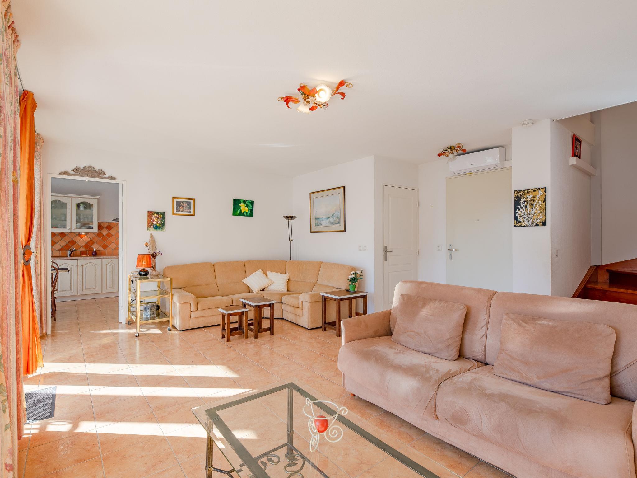 3-room terraced house 76 m2 on 2 levels, west facing position. Spacious, beautiful furnishings: living/dining room with 1 double sofabed (1 x 140 cm, length 190 cm), TV (flat screen). Exit to the terrace, to the patio. Kitchen (oven, dishwasher, 2 induction hot plates, toaster, kettle, microwave, freezer, electric coffee machine). Exit to the terrace. Sep. WC. Electric heating, air-conditioning. Upper floor: 1 room with 1 french bed (1 x 140 cm, length 190 cm). Exit to the balcony. 1 room with 1 french bed (1 x 140 cm, length 190 cm). Exit to the balcony. Shower, sep. WC. Air-conditioning. Large balcony 15 m2, west facing position, large terrace 20 m2, roofed, west facing position, small patio 15 m2. Terrace furniture, deck chairs (2). View of the countryside. Facilities: washing machine. Internet (WiFi, extra). Parking space n 3002 (1 car). Please note: non-smoking house. Smoke alarm. Accommodation not suitable for PRMs, people with reduced mobility. Offer by a private individual according to Art. 155, IV of CGI. 83115005097NH