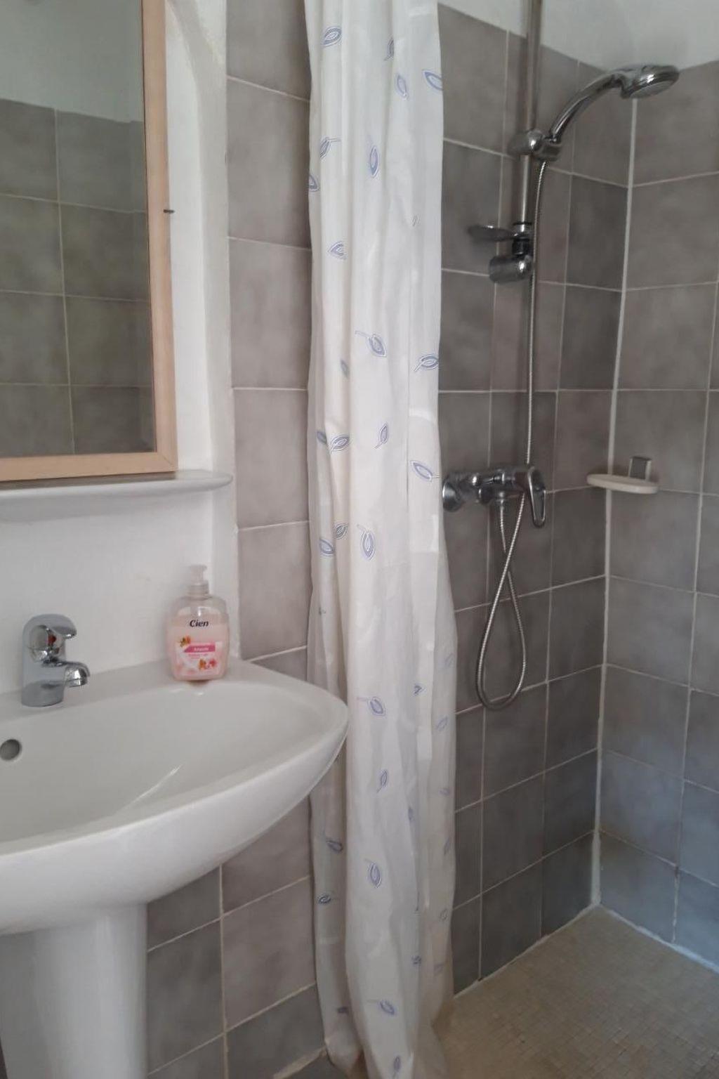 The 3-room house offers space for up to four people. It has a master bedroom with a double bed (1.6 x 2 m) with direct access to the garden and seating area. The children's bedroom is on the upper floor and can be reached via an open staircase and has two single beds (0.90 x 1.90 m). Two more people can sleep on the pull-out couch (1.40 x 1.90) in the living room. The open-plan living/dining room has satellite TV and a music player, as well as a cosy dining area. The adjoining, open-plan kitchen is well equipped. The cottage has a bathroom with WC and shower.