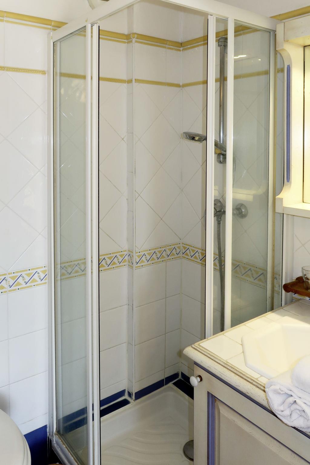 Resort "Port Marine", 4 storeys. 3 houses in the resort. 100 apartments in the residence. 300 m from the centre of Sainte Maxime, 150 m from the sea. For shared use: property, well-kept garden with lawn, swimming pool (16 x 7 m, depth 90 - 160 cm, seasonal availability: 15.May. - 15.Sep.). In the complex: reception, sauna (extra). Fitness room, billiard table, lift, washing machine, tumble dryer (for shared use, extra). Bread roll service. Roofed, parking (limited number of spaces, extra). Dimension: height 190 cm. Bus stop "Sainte-Maxime" 1 km, sandy beach 400 m. Please note: the photograph shows a typical example. The holiday properties may differ in living space, floorplan, equipment and furnishing.
