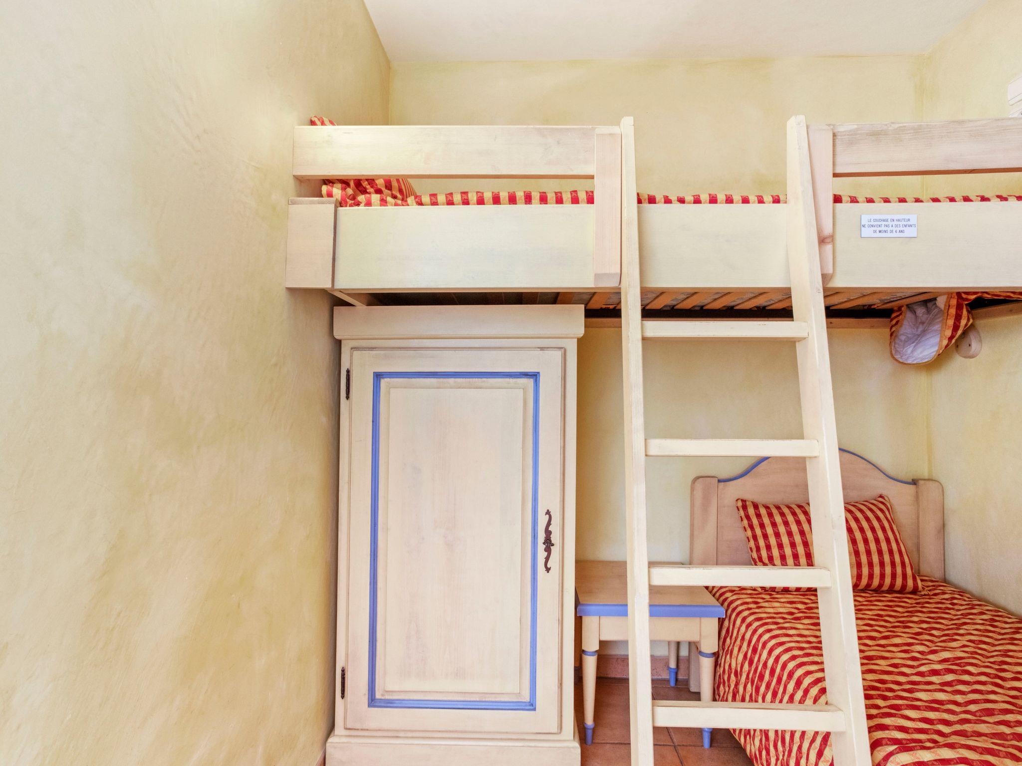 Decorated in Provençal style, the 35 m² flat has three fully furnished and equipped rooms for up to 4 people. It has a kitchenette (ceramic hob, oven, dishwasher, microwave, toaster), a living/dining room, a television, free Wi-Fi via fibre optic, a cabin with two bunk beds for children, a bedroom with a 1.60 m-wide bed, a bathroom (bath, washbasin), separate WC, and a large terrace with garden furniture, extending the living space. A number of features have recently been upgraded.