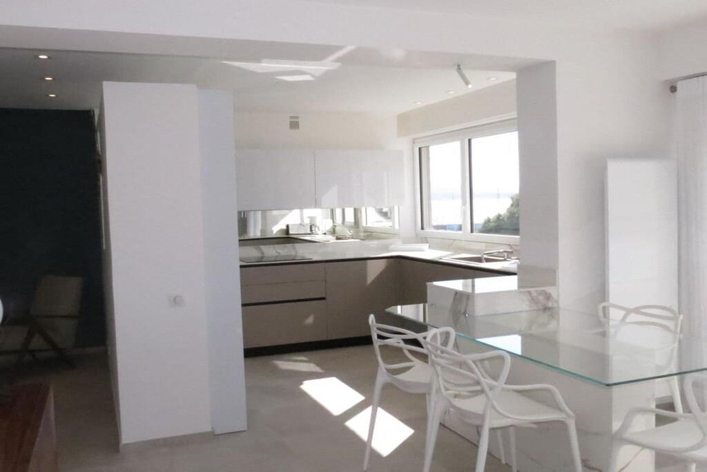 Ejendommen er 75 m² stor og har elevator. Der er en terrasse med havemøbler, hvor du kan nyde havet og den smukke natur med en kop kaffe. Der er en stue med spisebord, tv og sofa samt adgang til terrassen. Det åbne køkken er fuldt udstyret med induktionskomfur, ovn og køleskab samt opvaskemaskine og vaskemaskine. To dobbeltværelser er også en del af ejendommen samt et badeværelse med bruser.
