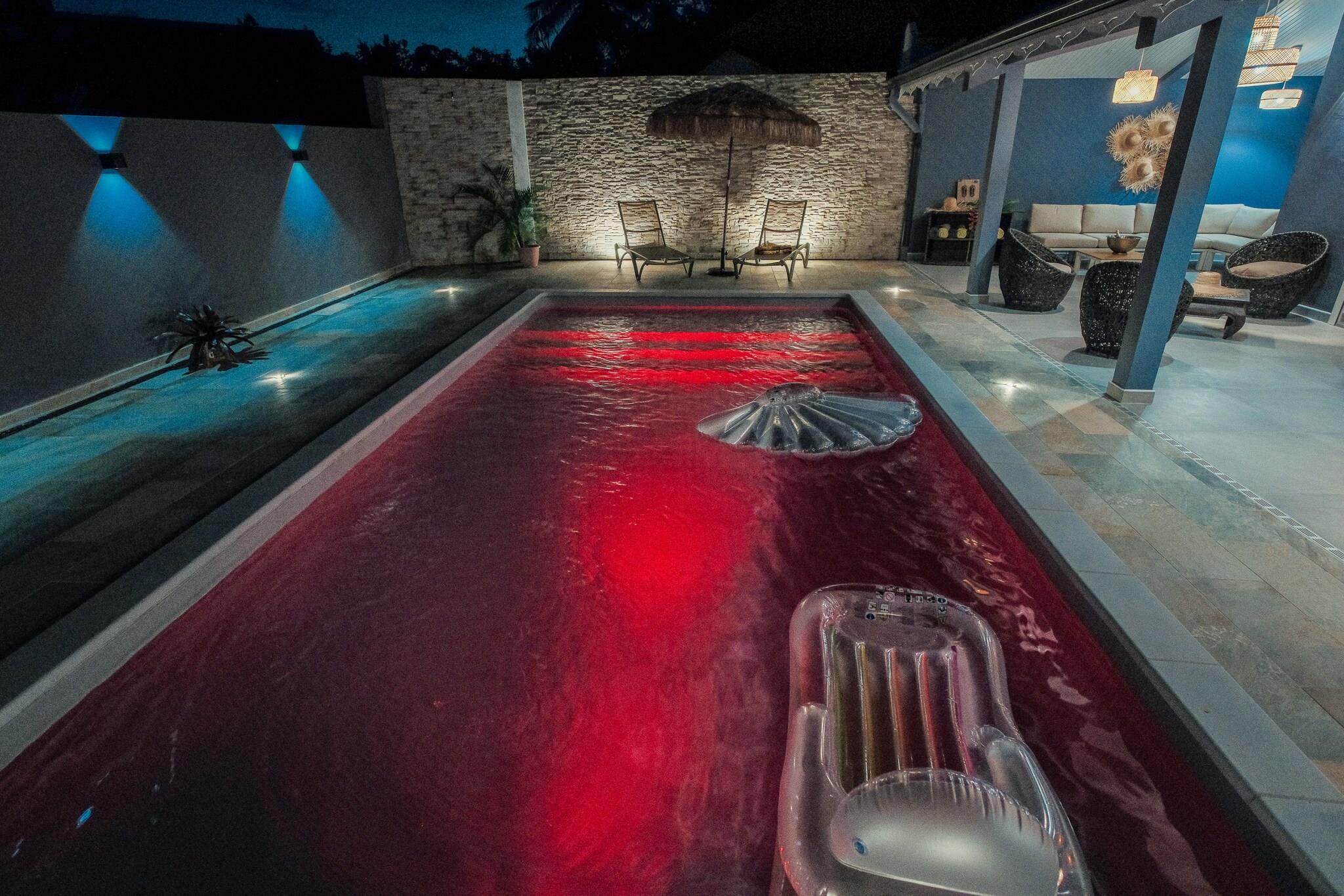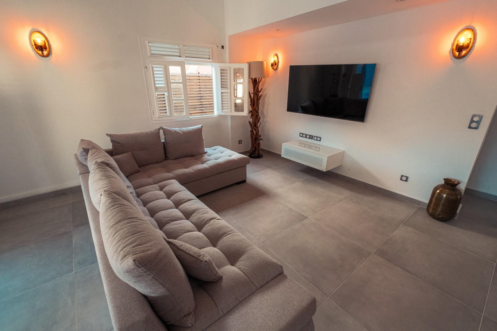 Gemt væk i solrige Sainte-Anne, kun få skridt fra Pointe Marins gyldne sandstrand og den ikoniske Club Med Les Boucaniers, tilbyder denne luksuriøse villa et uforglemmeligt ophold for familier og venner. Med fire soveværelser med aircondition, to moderne badeværelser og fire toiletter er ejendommen designet til at kombinere elegance med komfort i hver eneste detalje. Det fuldt udstyrede åbne køkken har alt, hvad du behøver - fra køleskab og fryser til ovn, mikrobølgeovn, opvaskemaskine og endda en vinkælder - hvilket gør det nemt at lave tropiske festmåltider eller underholde gæster med stil. En vaskemaskine og tørretumbler i vaskerummet gør det nemmere at ophold længere, mens fem satellit-tv'er, en minibar og gratis Wi-Fi holder alle forbundet og underholdt. Udenfor åbner en rummelig terrasse på 40 m² ud til en privat swimmingpool, perfekt til dovne eftermiddage i solen. Den indhegnede have er komplet med havemøbler og et grillområde, ideelt til afslappede aftensammenkomster. Uanset om du nipper til cocktails på terrassen, nyder en stranddag i nærheden eller blot slapper af ved poolen, sætter denne elegante villa tonen for en uforglemmelig caribisk ferie.