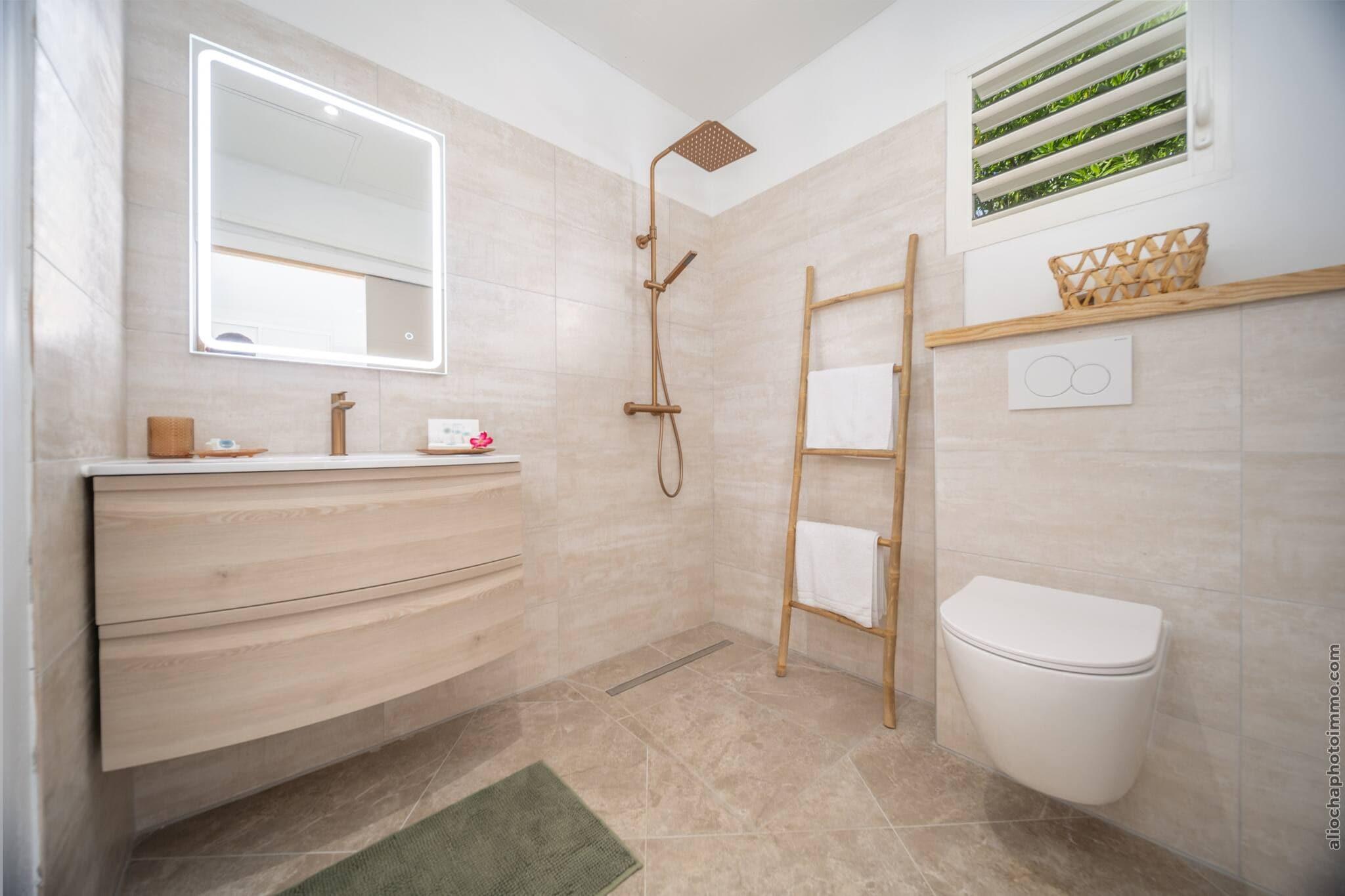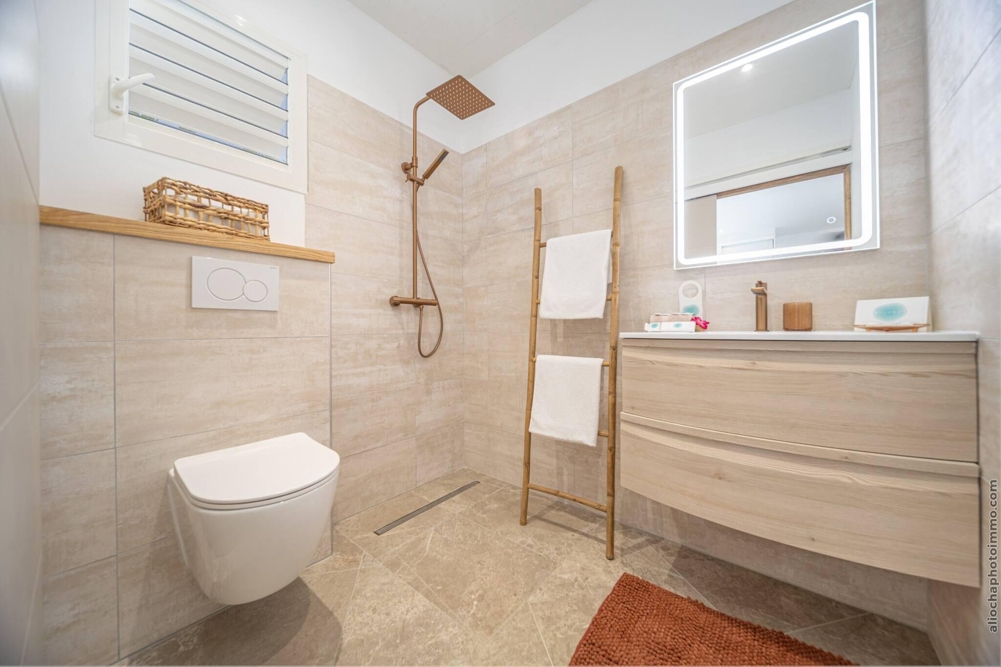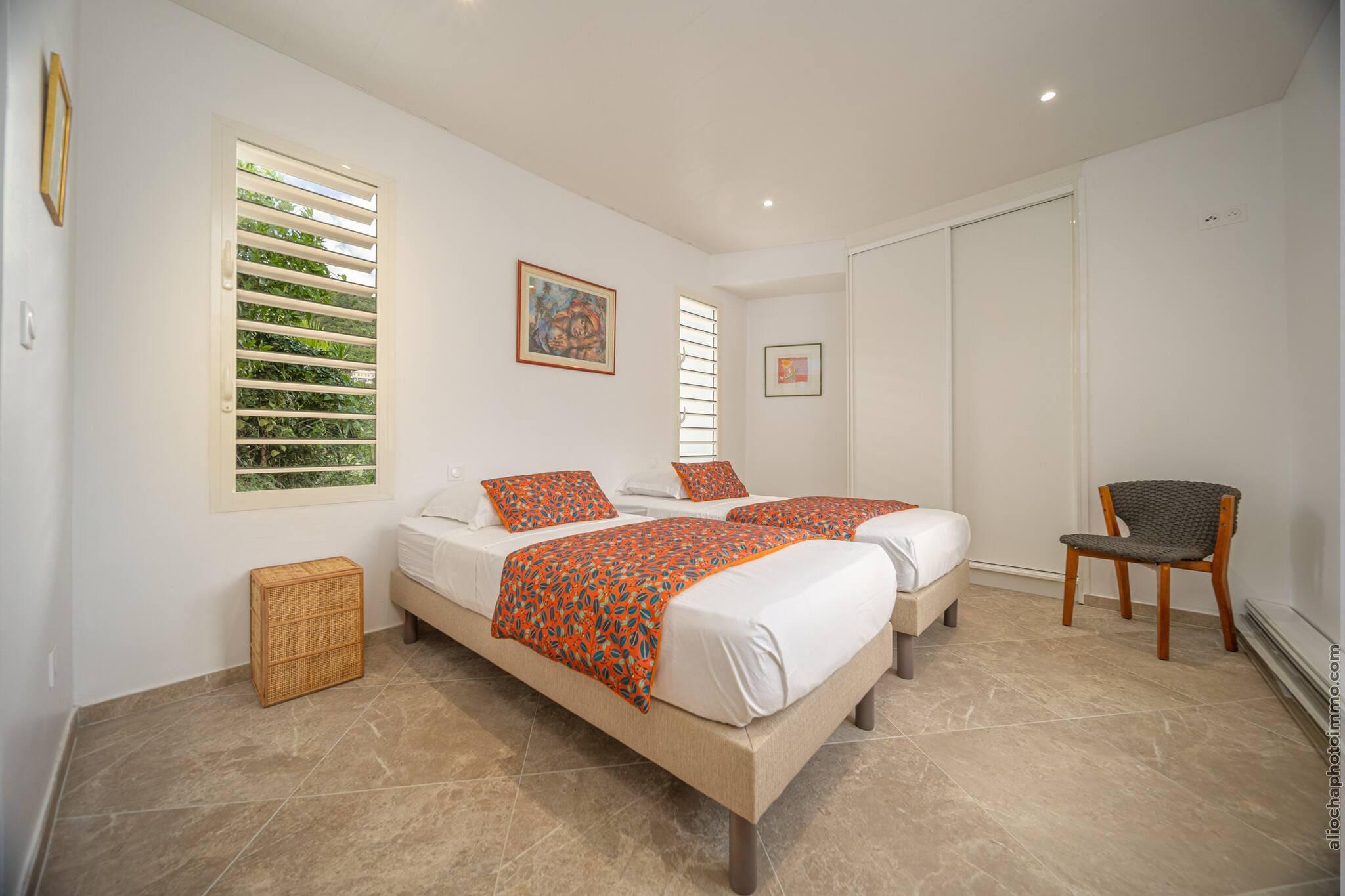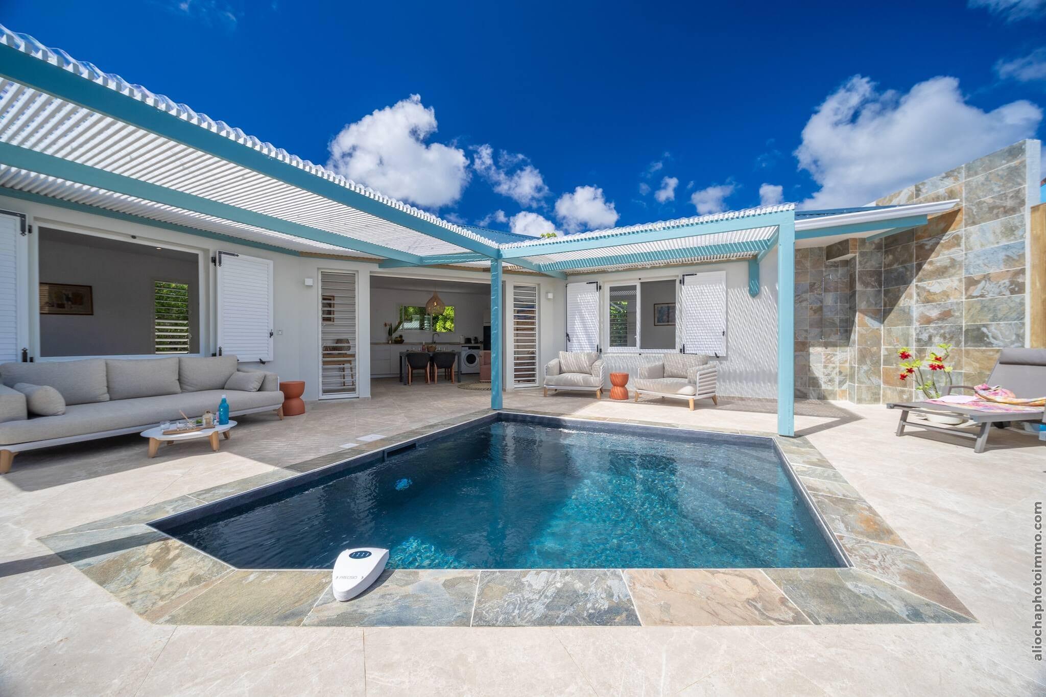 Flygt til denne fredfyldte villa, kun 5 minutter fra stranden, hvor komfort møder tropisk elegance. Med en privat pool, der glitrer i solen, en frodig have og flere udendørs loungeområder, er dette ophold skabt til afslapning. Indenfor har villaen en rummelig opholdsstue med satellit-tv, en hyggelig spiseplads og to soveværelser med aircondition, der komfortabelt rummer op til fire gæster. Det fuldt udstyrede åbne køkken inkluderer alt fra juicepresse og kaffemaskine til opvaskemaskine og køleskab med fryser - ideelt til længere ophold eller afslappede måltider derhjemme. To moderne badeværelser tilbyder bruseniche, hårtørrer og friske, veloplyste overflader. Uanset om du nipper til kaffe på balkonen eller nyder en grillfest i solnedgangen på terrassen, tilbyder denne villa den perfekte blanding af komfort og udendørs charme. Nyd højhastighedsinternet, privat parkering, en vaskemaskine og essentielle faciliteter for et problemfrit ophold. Beliggende i et roligt område, men tæt på havet, er det den perfekte base for at udforske de nærliggende strande, lokale markeder og spisesteder. Uanset om du ønsker at slappe af ved poolen eller dykke ned i kysteventyr, tilbyder denne villa en malerisk ø-oplevelse fra start til slut.