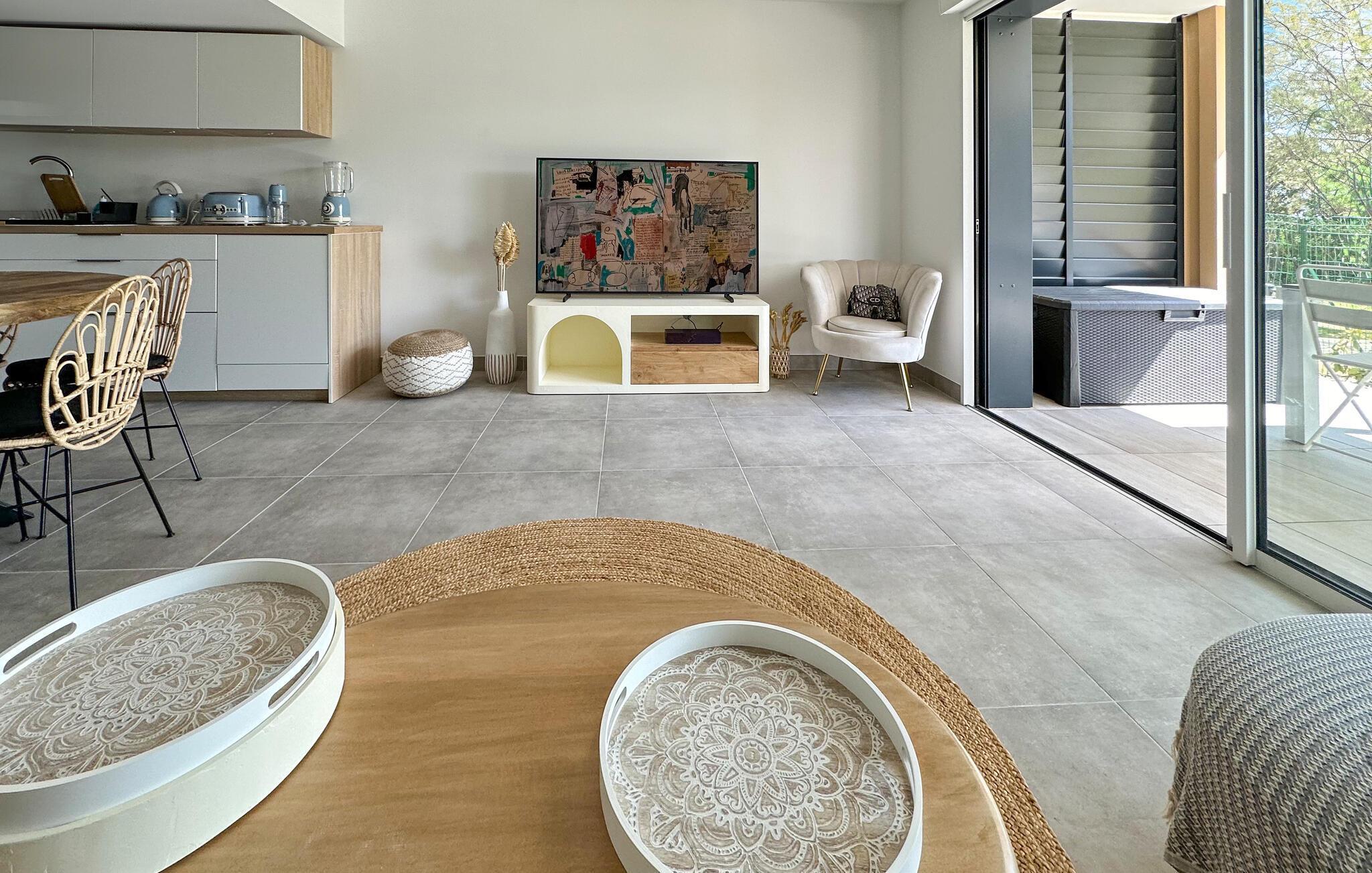 Jeres hyggelige og stilfuldt indrettede ferielejlighed, som ligger ikke langt fra den nærmeste sandstrand, befinder sig i en forstad til Sainte-Maxime. Omgivet af grøn naturidyl tilbyder huset moderne komfort, hvor I straks vil føle jer hjemme. Tilbring afslappende stunder med familie eller venner på den skønne terrasse, slap af på sofaen og havemøblerne, eller tag en forfriskende dukkert i den indbydende fælles pool. Her venter jer en bekymringsfri og behagelig feriestemning.