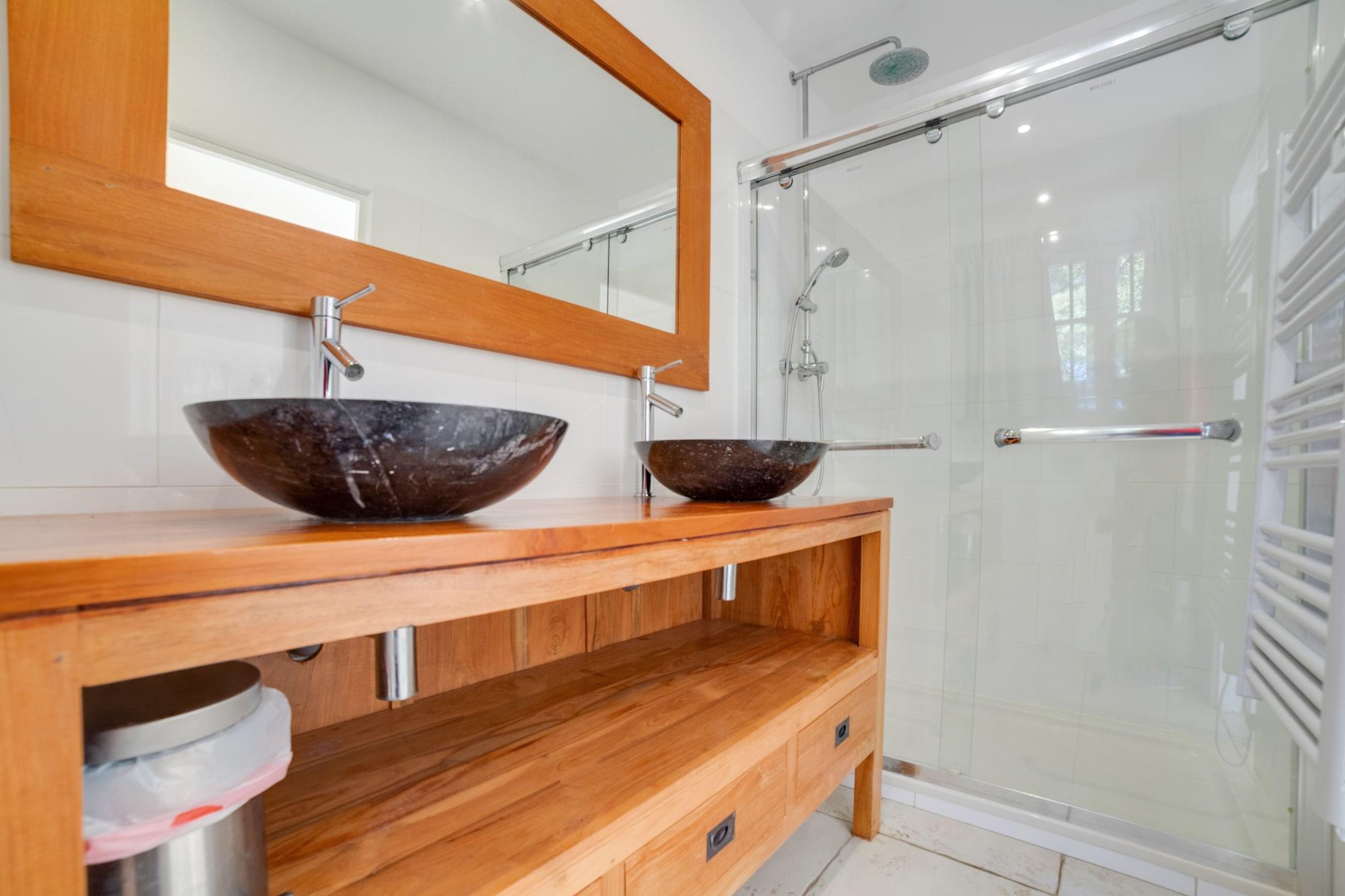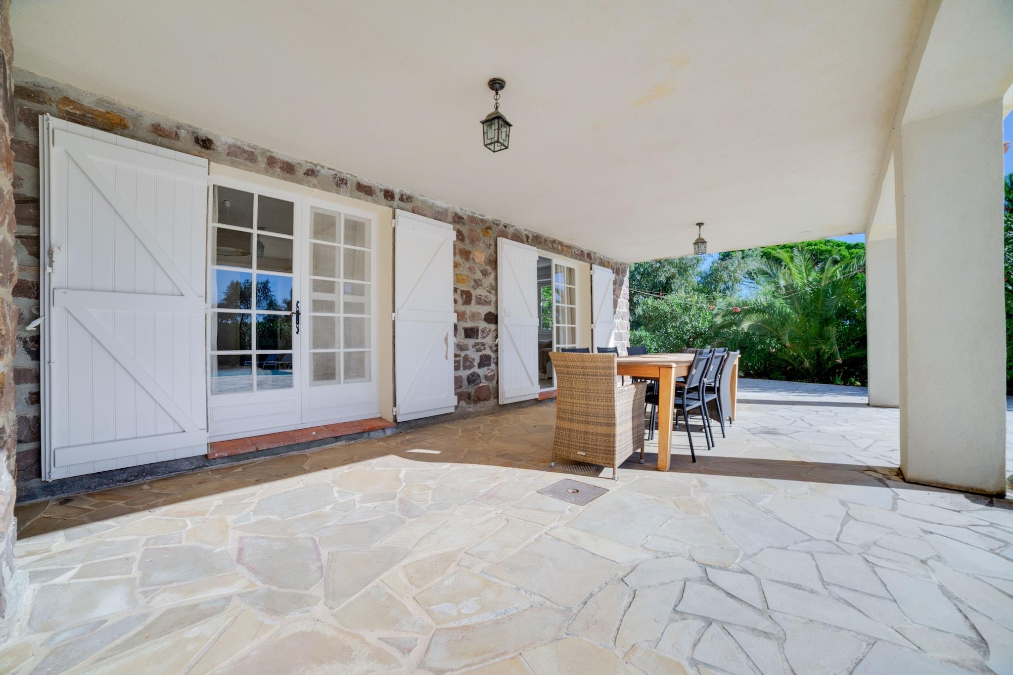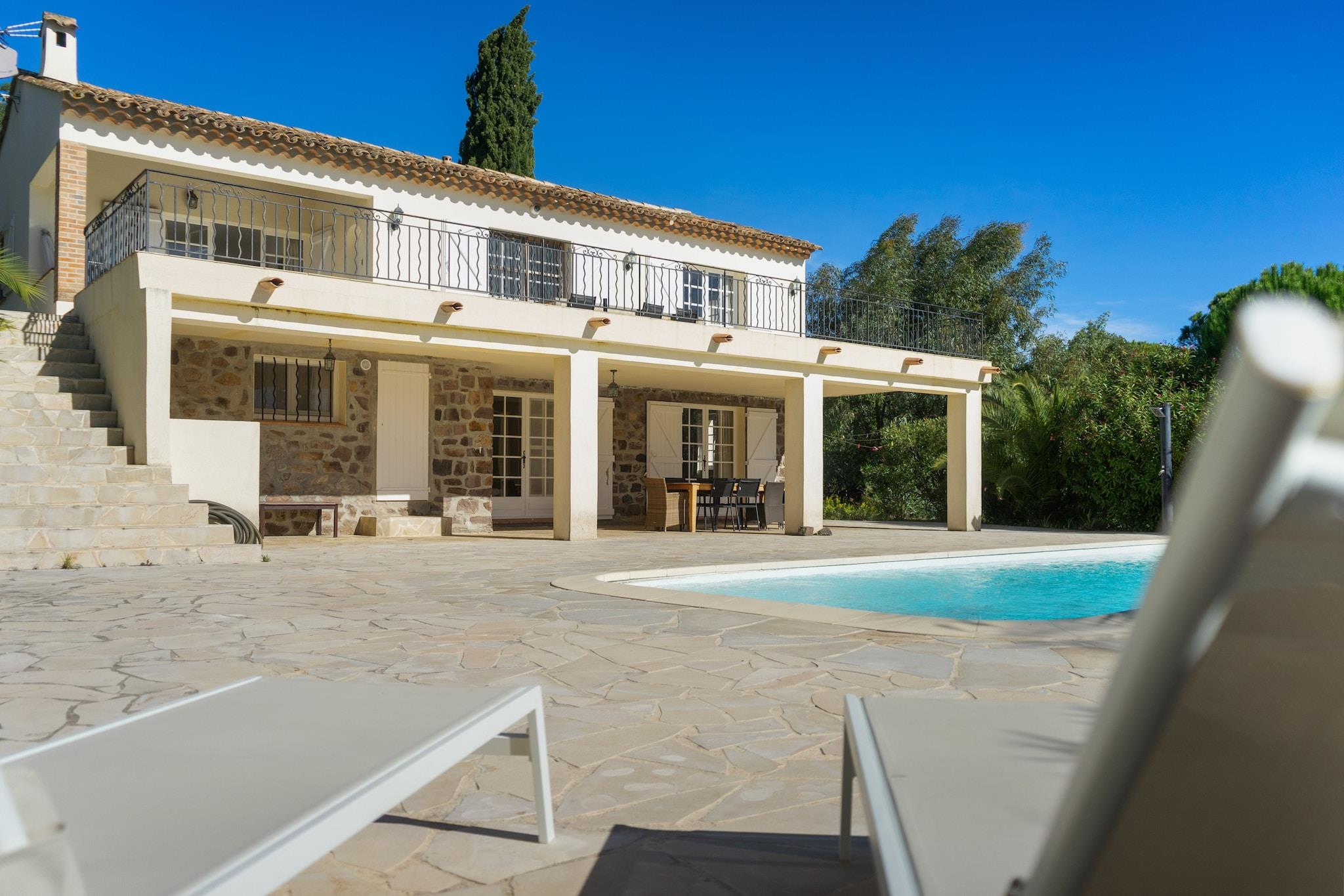 En dejlig ferie villa på en eksklusiv domaine med flere villaer. Heren er helt indhegnet og her har du fuldstændig privatliv. Ferie ved kanten af din pool, tilbered mad i det smukke udendørs køkken og tilbringe timer liggende på liggestole eller de smukke pladser De overdækkede / delvis overdækkede terrasser. Du er omgivet af grønne områder og har havudsigt. Du er kun 5 minutter fra badebyen Sainte-Maxime og sandstrande. Den provencalske villa er blevet fuldstændig renoveret og indrettet med moderne komfort. antal soveværelser og endda et soveværelse med pejs (til de køligere aftener uden for sæsonen). Sainte-Maxime er en livlig badeby hvor det er hyggeligt hele året rundt. Der er flere gode restauranter, hyggelige butikker, en smuk boulevard og en hvid sandstrand. Strendene i Les Issambres kan nås på ca. 10 minutter (for det meste uden trafikbelastning). 15 km (tip: Tag færgen til Saint-Tropez for at undgå den travle kystrute), fashionable Cannes på 55 km og Nice med sin lufthavn på ca. 90 km. Du er her på en af de smukkeste dele af Côte d'Azur. Glem ikke at planlægge en dag på den berømte strand Pampelonne nær Ramatuelle med den berømte strandklub "club 55"!