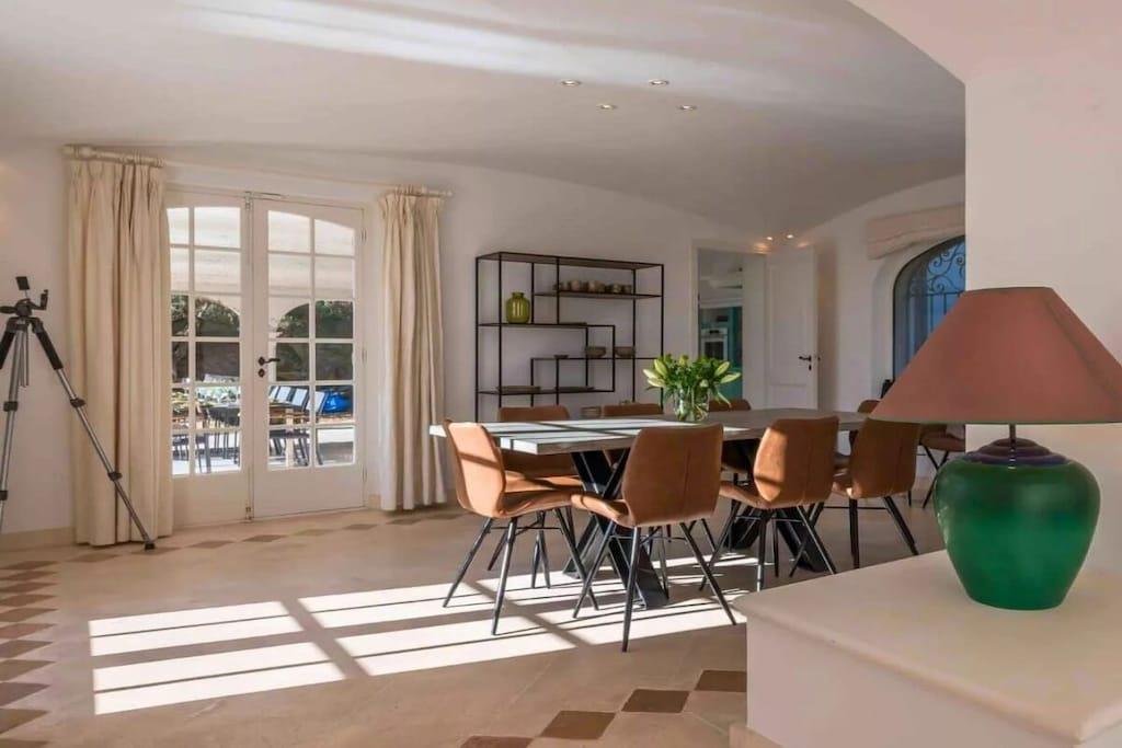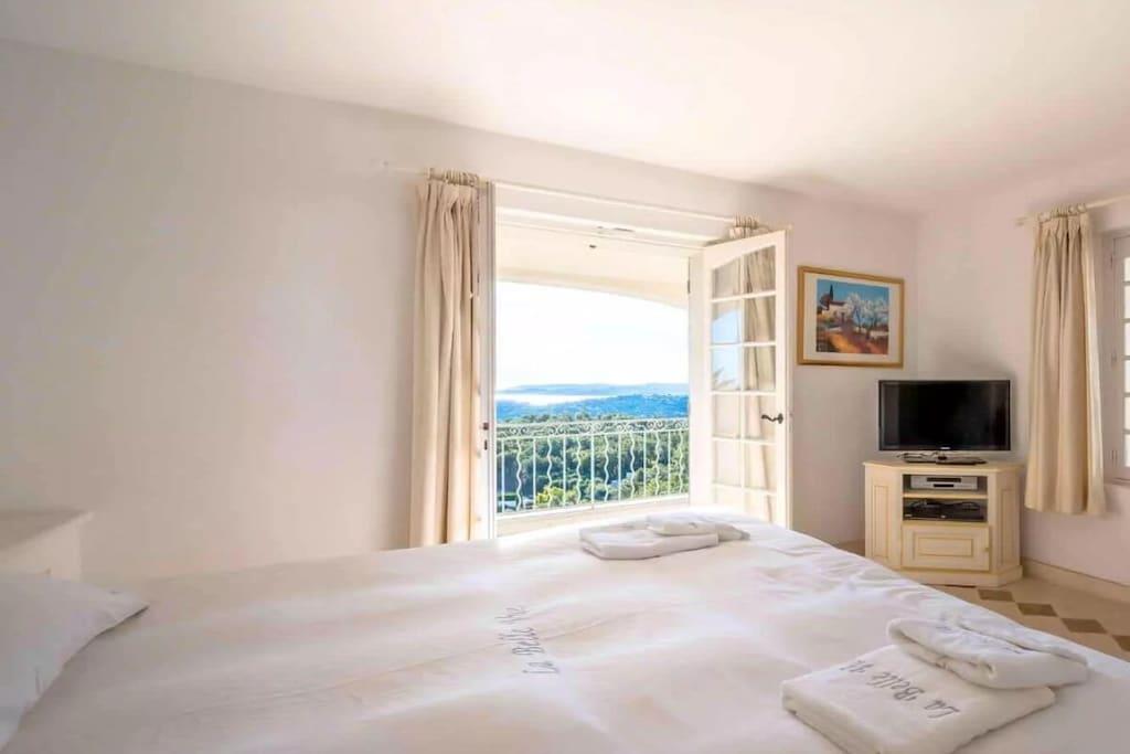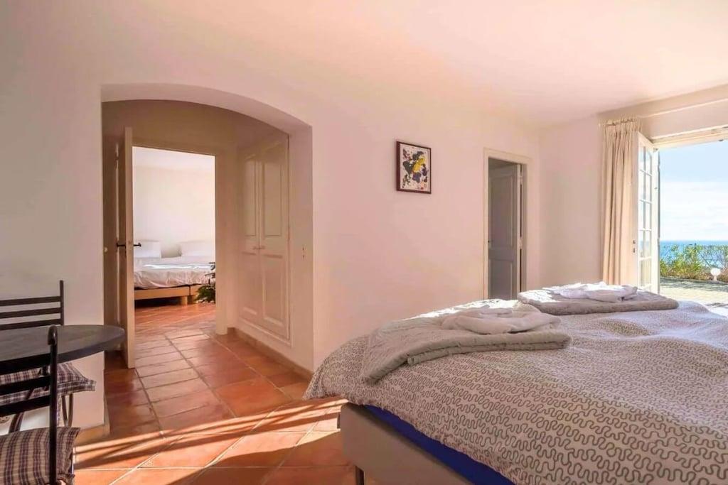 Ovenpå tilbyder stuen en fantastisk havudsigt. Ved siden af den ligger det fuldt udstyrede køkken i provencalsk stil. Tre soveværelser, hver med eget badeværelse, er placeret på denne etage og har alle en dobbeltseng. De to andre soveværelser, hver med eget badeværelse, er placeret i stueetagen i haven. Slutrengøring er obligatorisk. Ved lejemål på mere end to uger er en mellemrengøring mulig og obligatorisk.