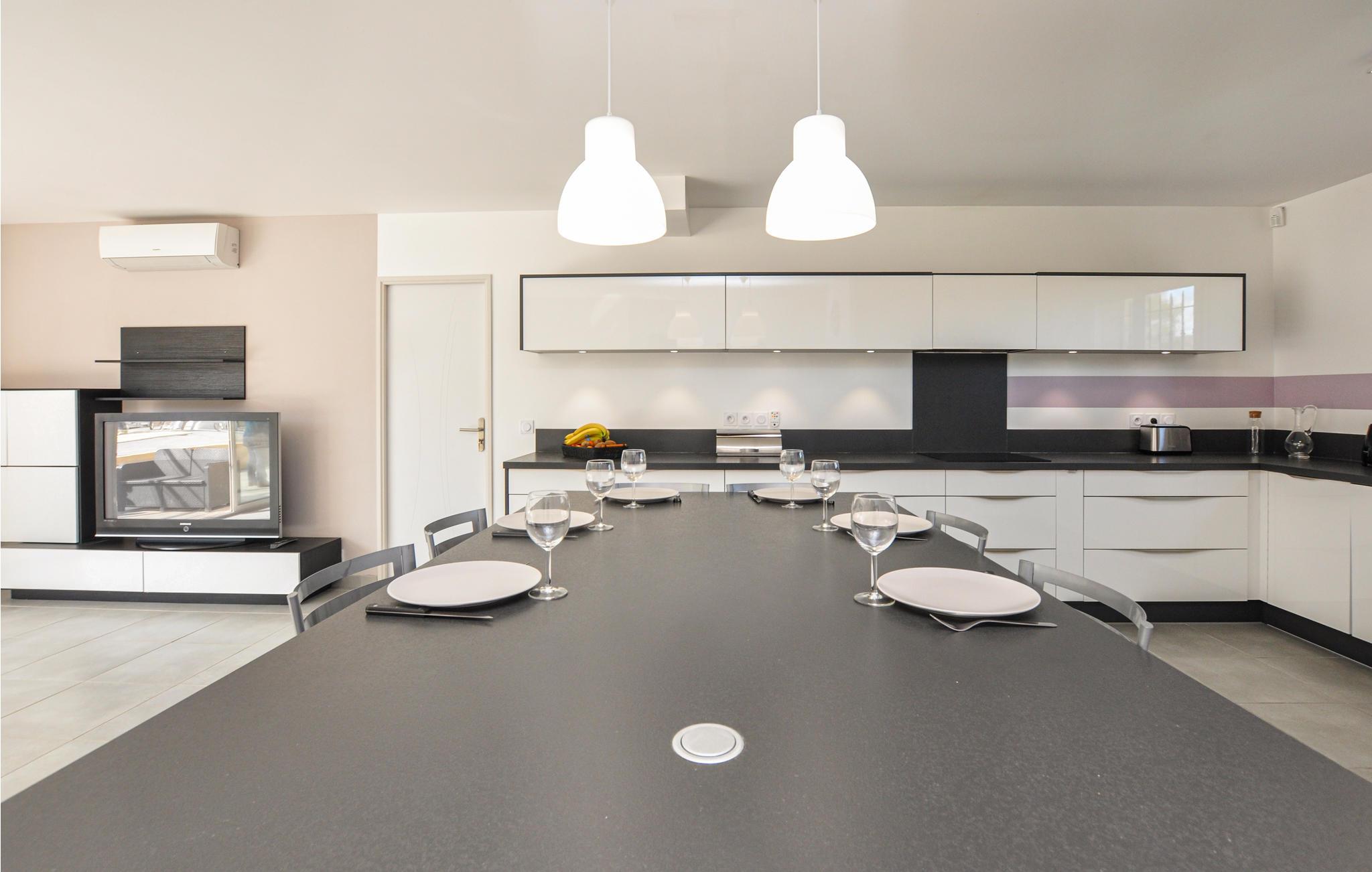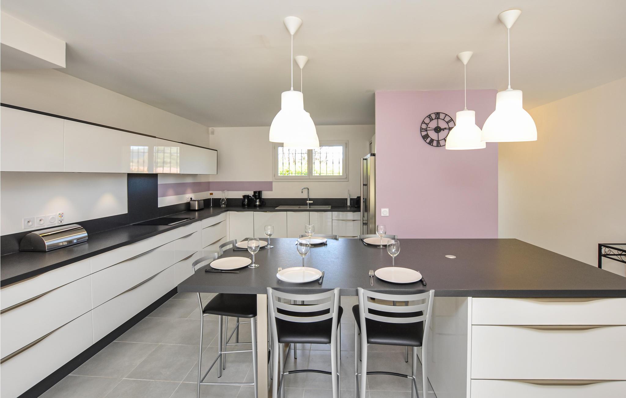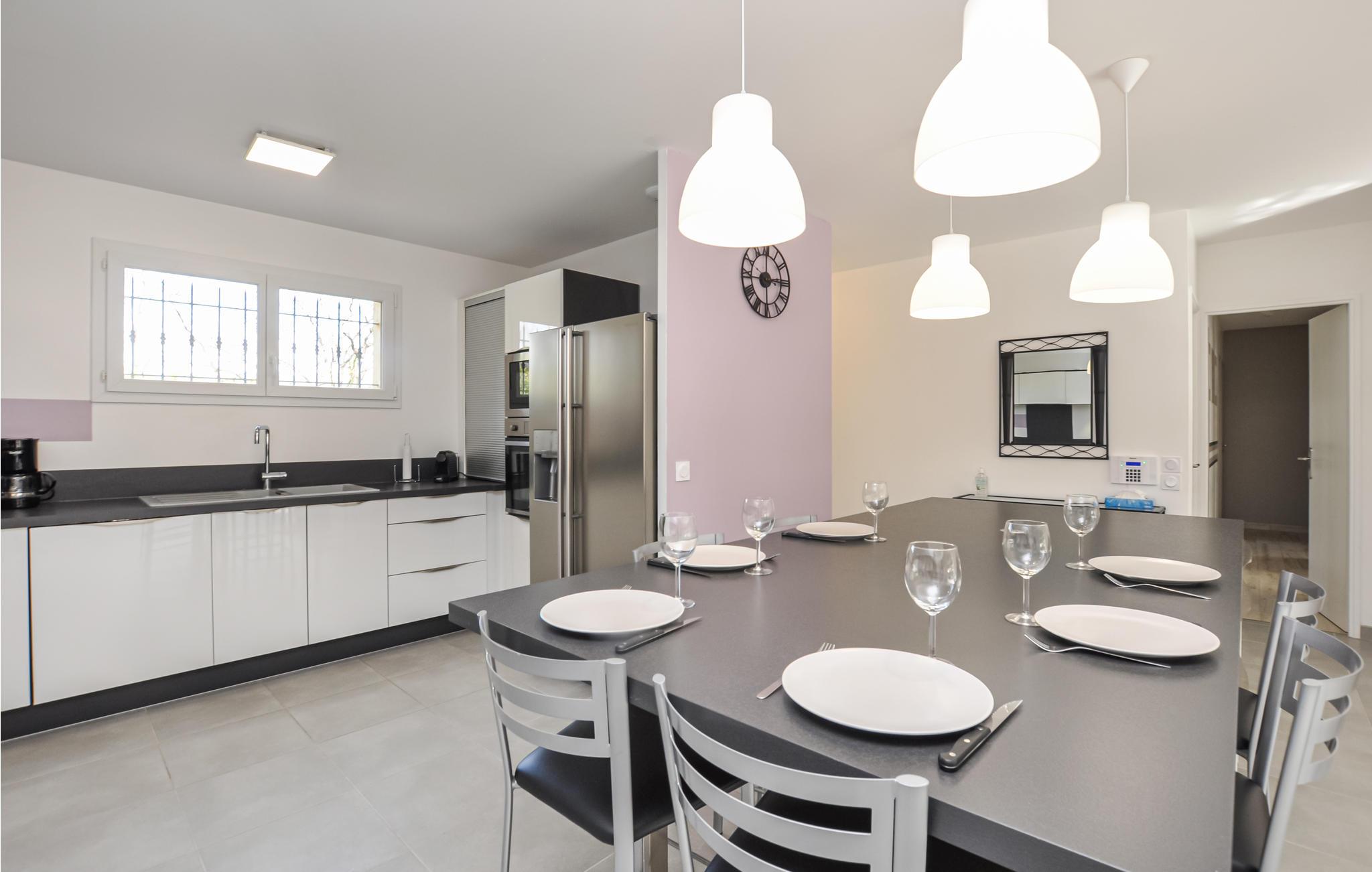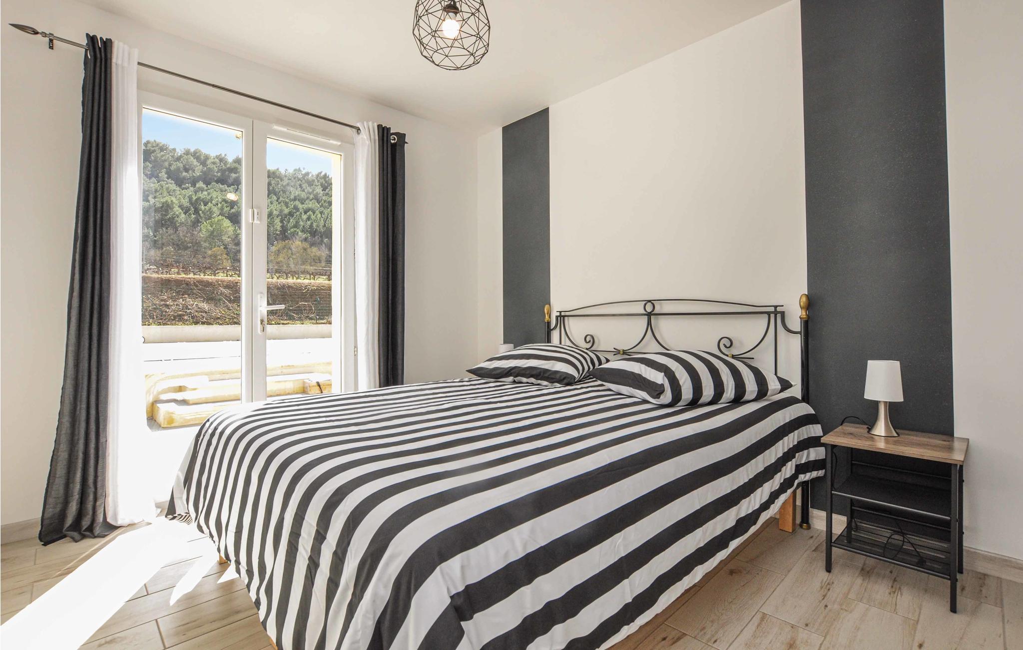 Dette feriehus har en enestående beliggenhed i udkanten af en by og ud til et smukt landområde med vinmarker. Huset er lyst og indbydende og består af fire soveværelser, to badeværelser, stue, køkken-alrum og separat toilet. Fra den sydvendte stue har I udsigt til terrassen og haven med pool.